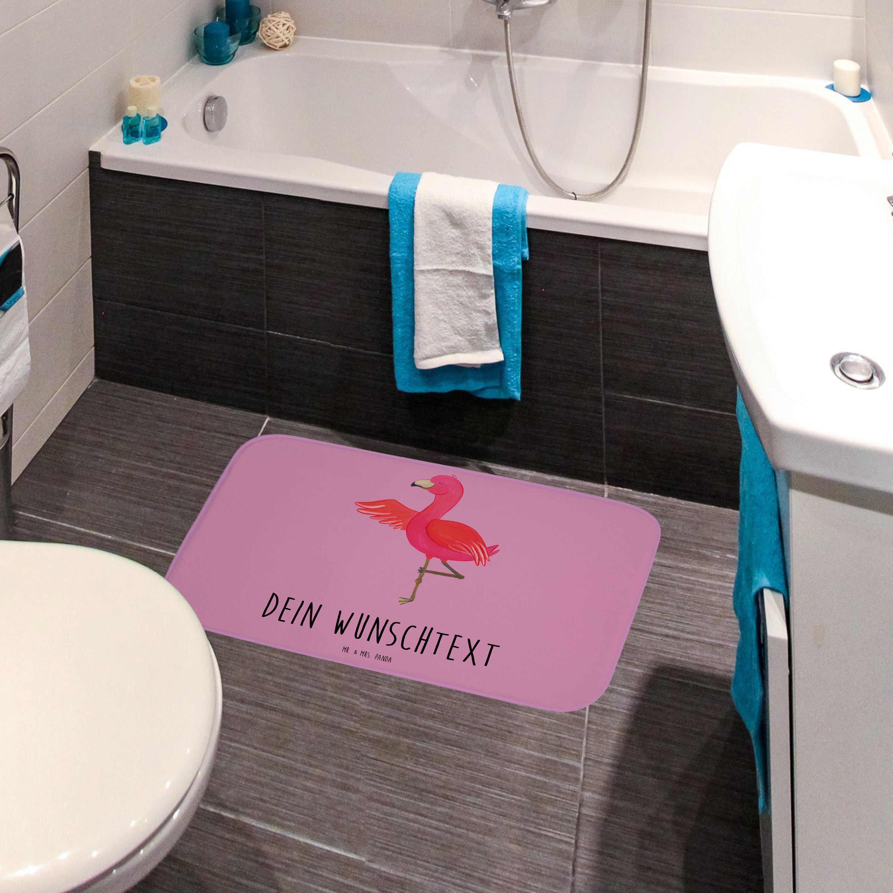 Personalisierter Badvorleger Flamingo Yoga