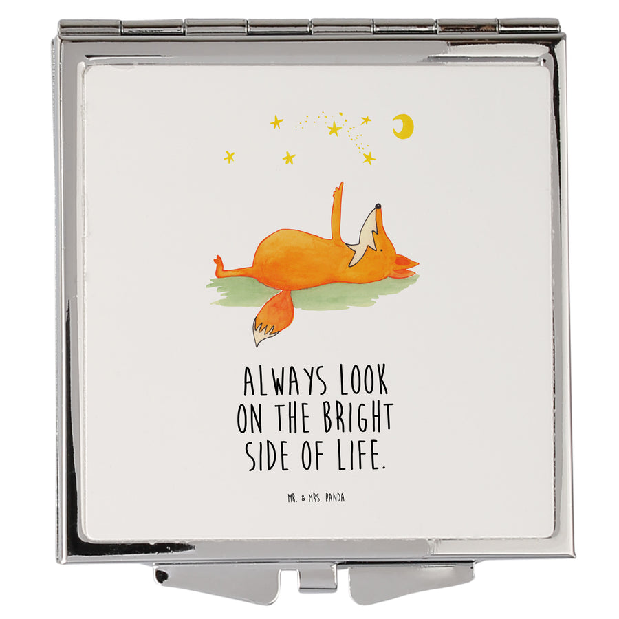 Handtaschenspiegel quadratisch Fuchs Sterne - mit Spruch - Weiß