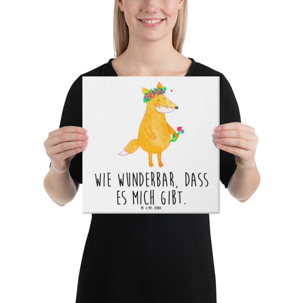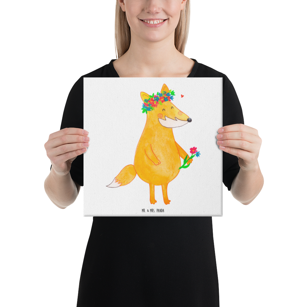 Leinwand Bild Fuchs Blumenliebe - 40 x 40 cm - mit Spruch