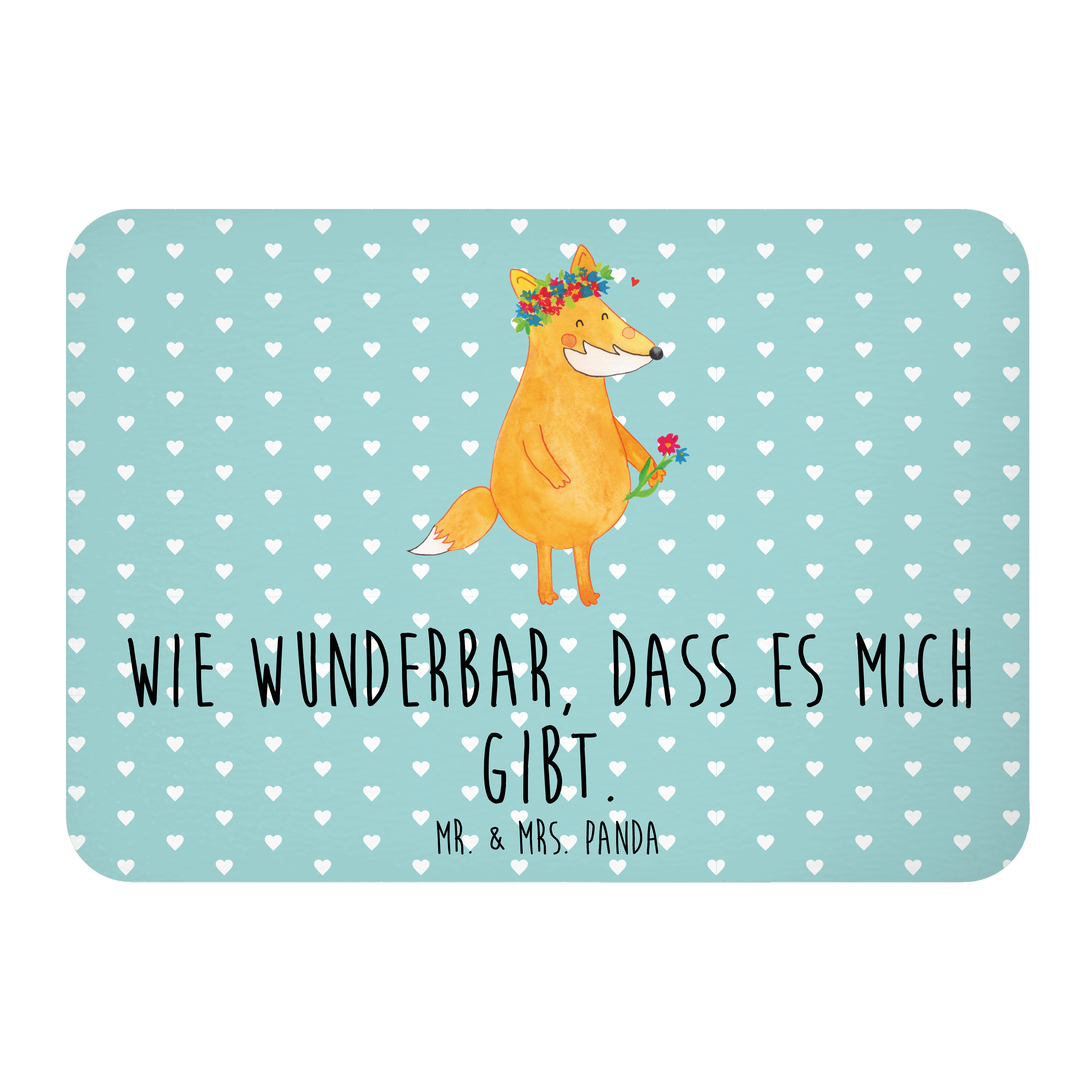 Lass dich von Mr. & Mrs. Panda auf zauberhafte Weise verzaubern mit dem Fuchs Blumenliebe. Der niedliche Fuchs ist ein wahrer Blumenliebhaber und schmückt sich mit prächtigen Blüten auf dem Kopf und in der Hand. Das Motiv verkörpert das Gefühl von Liebe zur Natur und Tieren. Mit diesem einzigartigen Motiv wirst du zum Blickfang und zeigst dein Herz für Flora und Fauna.