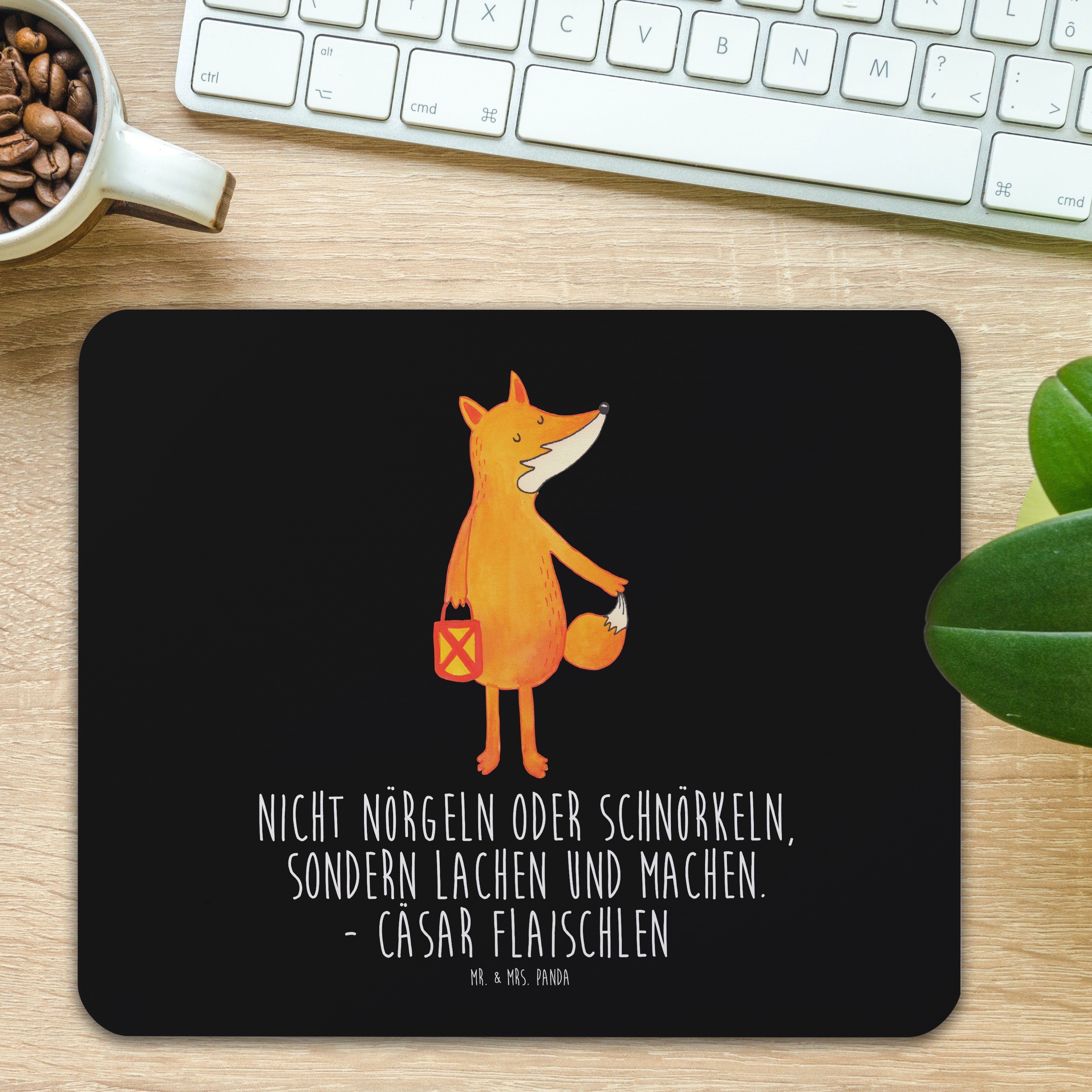 Mauspad Fuchs Laterne - ohne Spruch - Schwarz