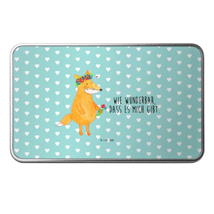 Metalldose rechteckig Fuchs Blumenliebe Blechdose, Metalldose, Blechbox, Container, Keksdose, Vorratsdose, Vorratsbox, Döschen, Versperbox, Vesperdose, Aufbewahrungsdose, Aufbewahrungsbox, Aluminiumdose, Dose, Fuchs, Füchse, Fox, Liebe, Freundin, Fuchsmädchen, Blumenmädchen, Freundinnen, Liebesbeweis, Blume, Blumen, Motivation, Freude, ich, mich, Selbstliebe