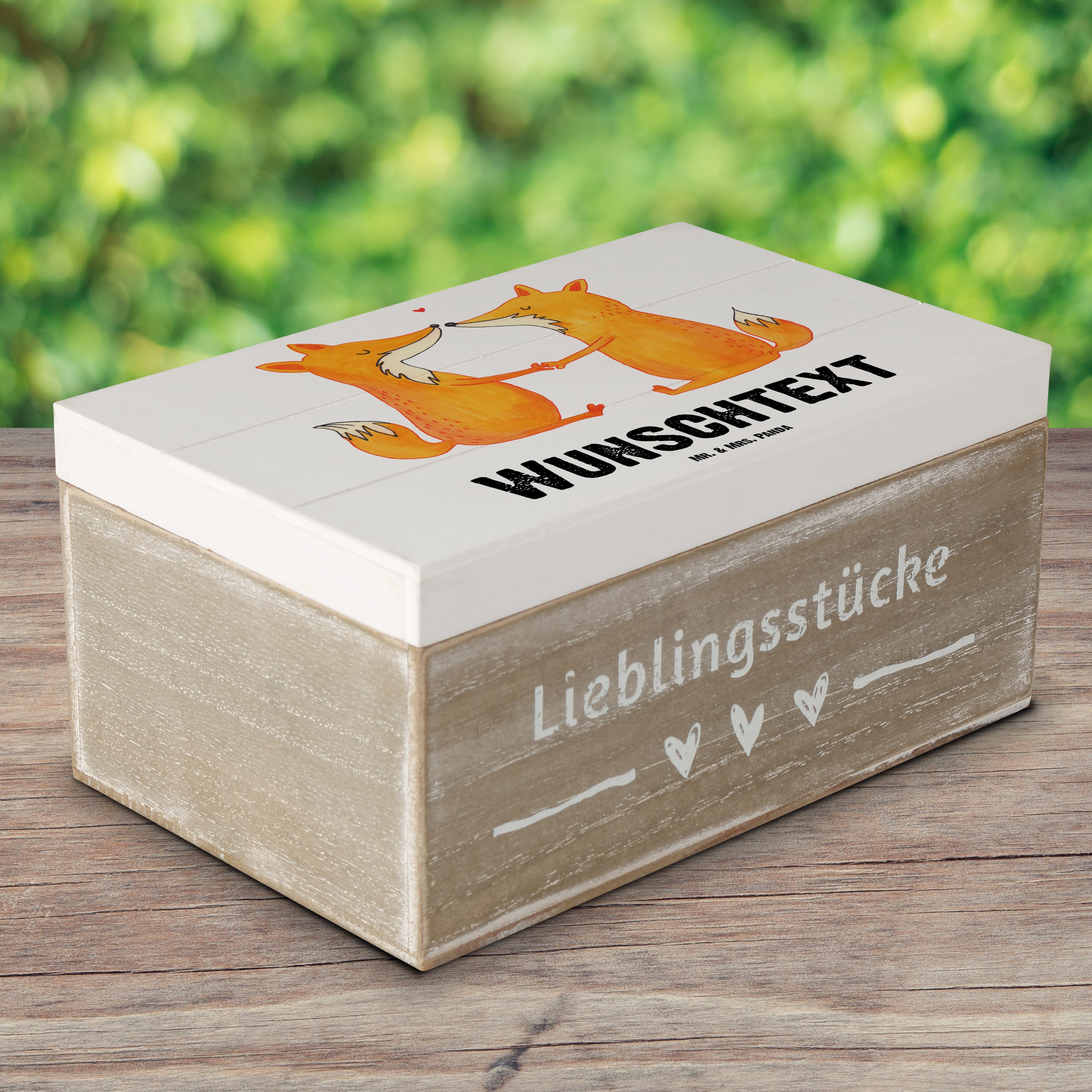 Personalisierte Holzkiste Füchse Liebe - Weiß - 19 x 12 cm