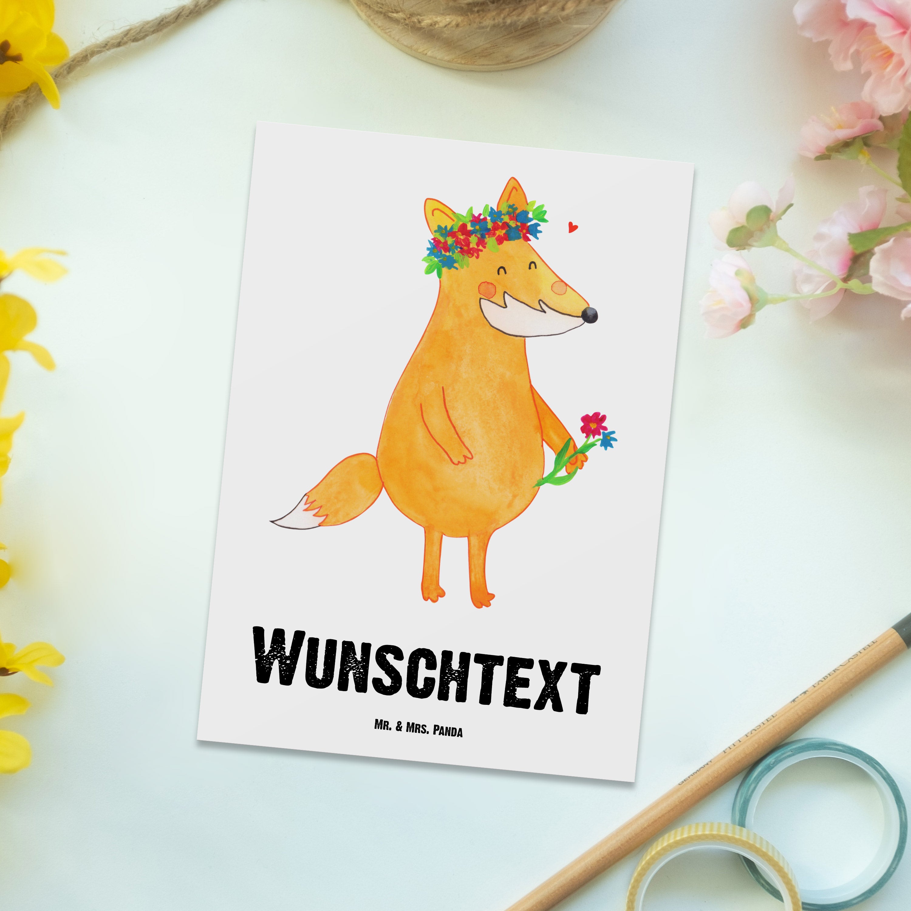 Personalisierte Postkarte Fuchs Blumenliebe