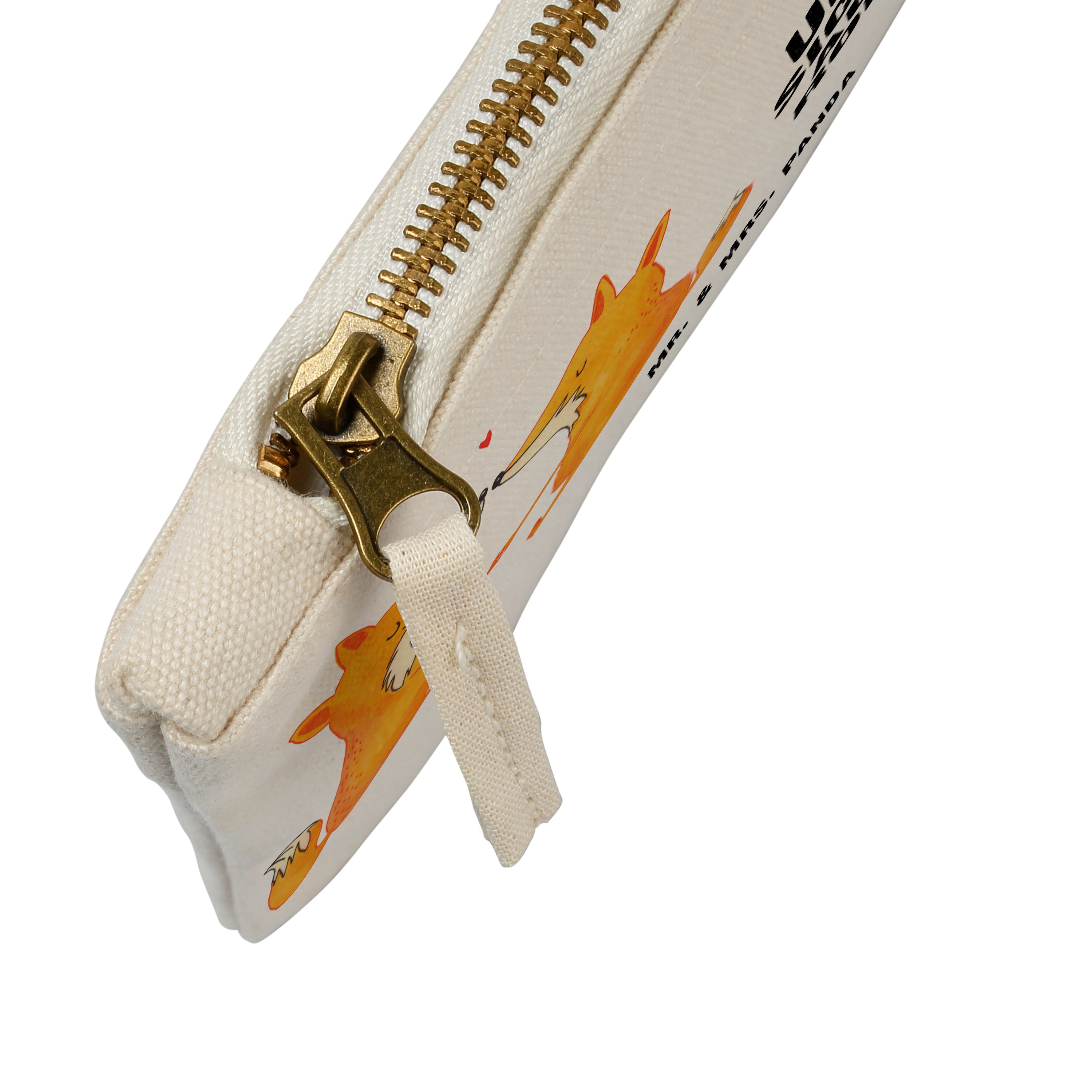 Eine wunderschöne Schminktasche von Mr. & Mrs. Panda mit Reißverschlussfach. Diese Kosmetiktasche oder Kosmetikbeutel ist aus 100% Baumwolle und bedruckt mit unseren wunderschönen handgezeichneten Motiven. Hol dir dieses einzigartige Etui direkt nach Hause - du kannst die Tasche auch perfekt als Stiftemäppchen, Federmappe, Schlamper oder Etui verwenden.