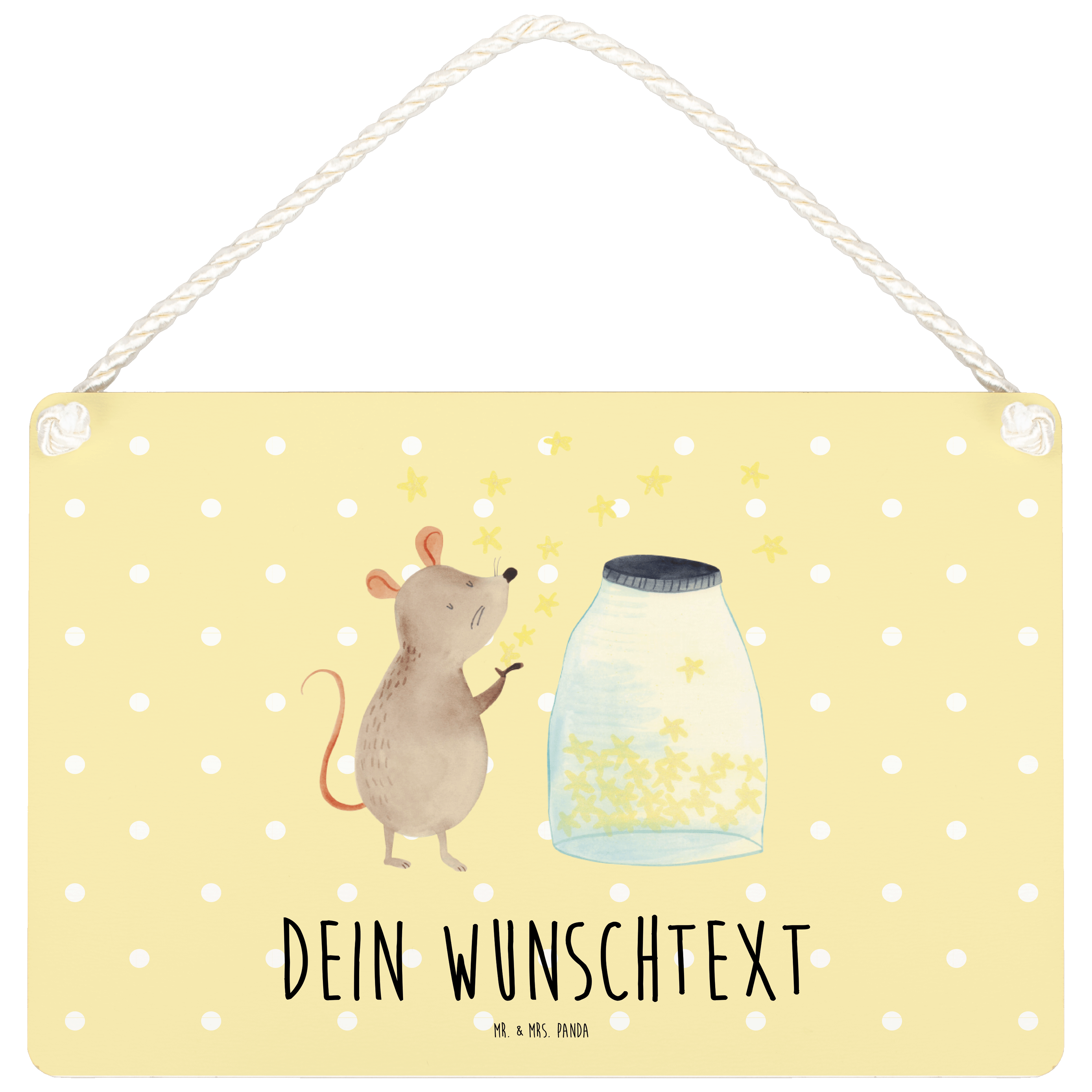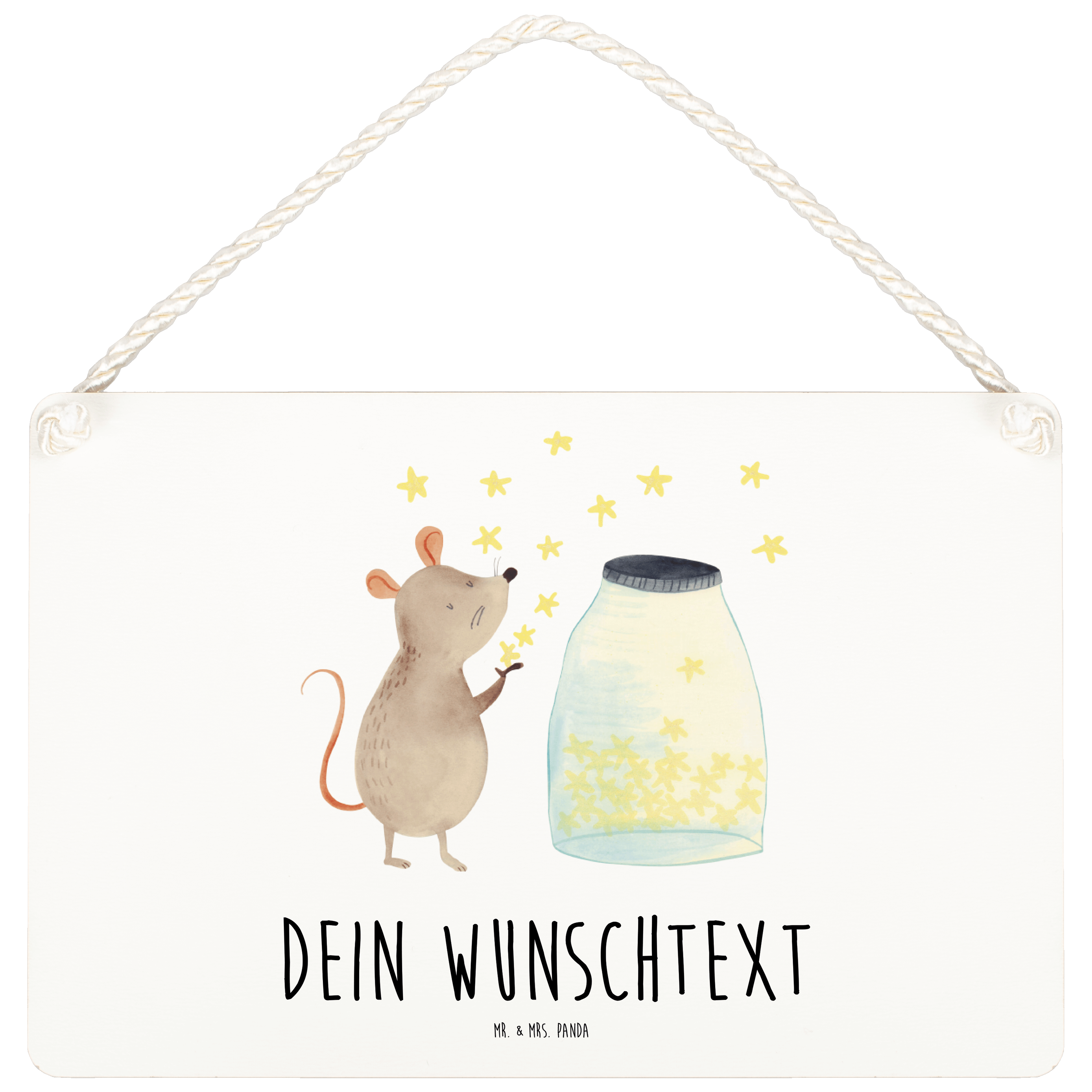 Personalisiertes Deko Schild Maus Sterne - DIN A6 - Weiß
