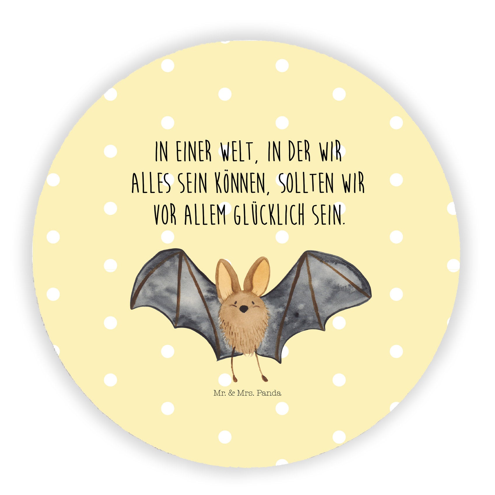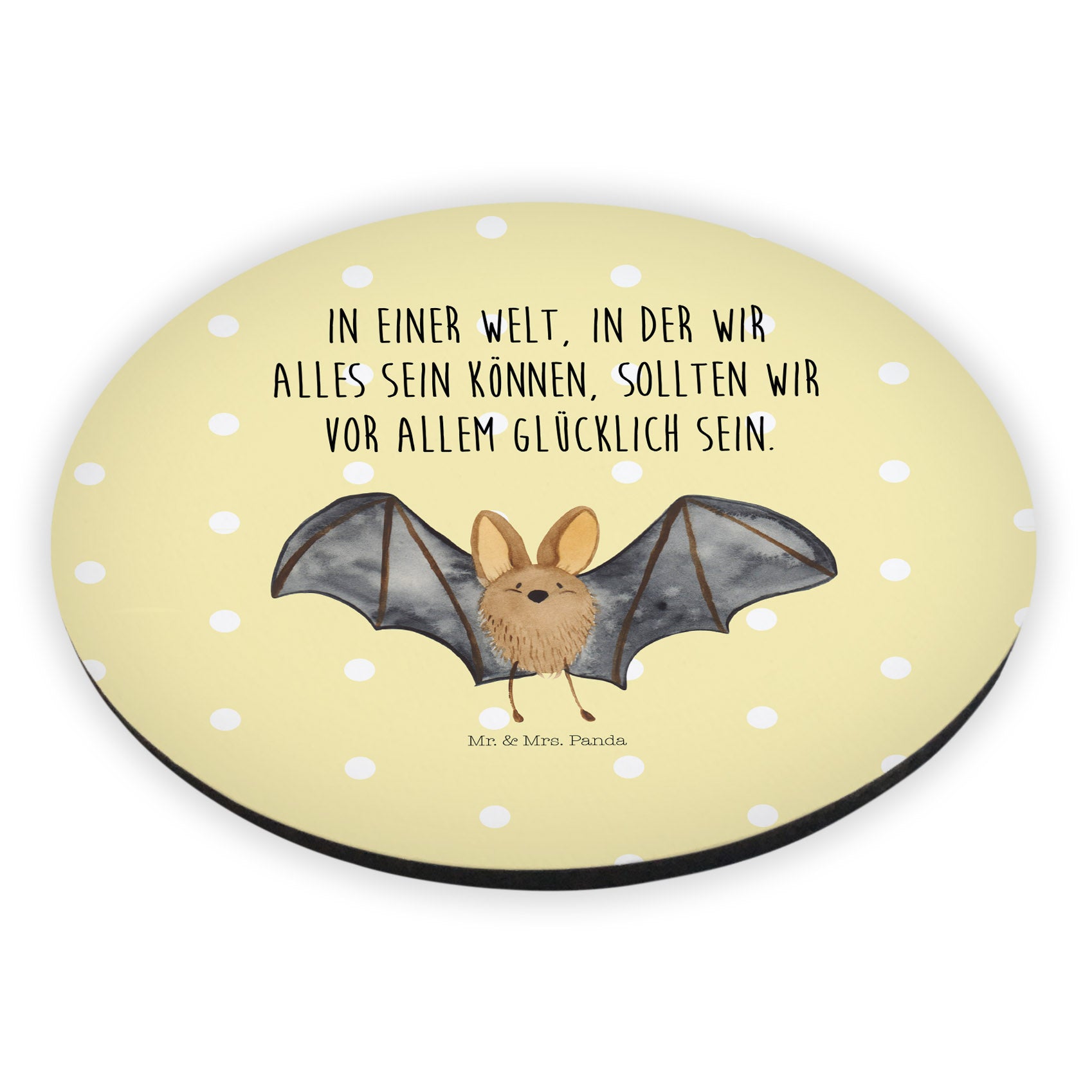 Rund Magnet Fledermaus Flügel - mit Spruch - Gelb Pastell