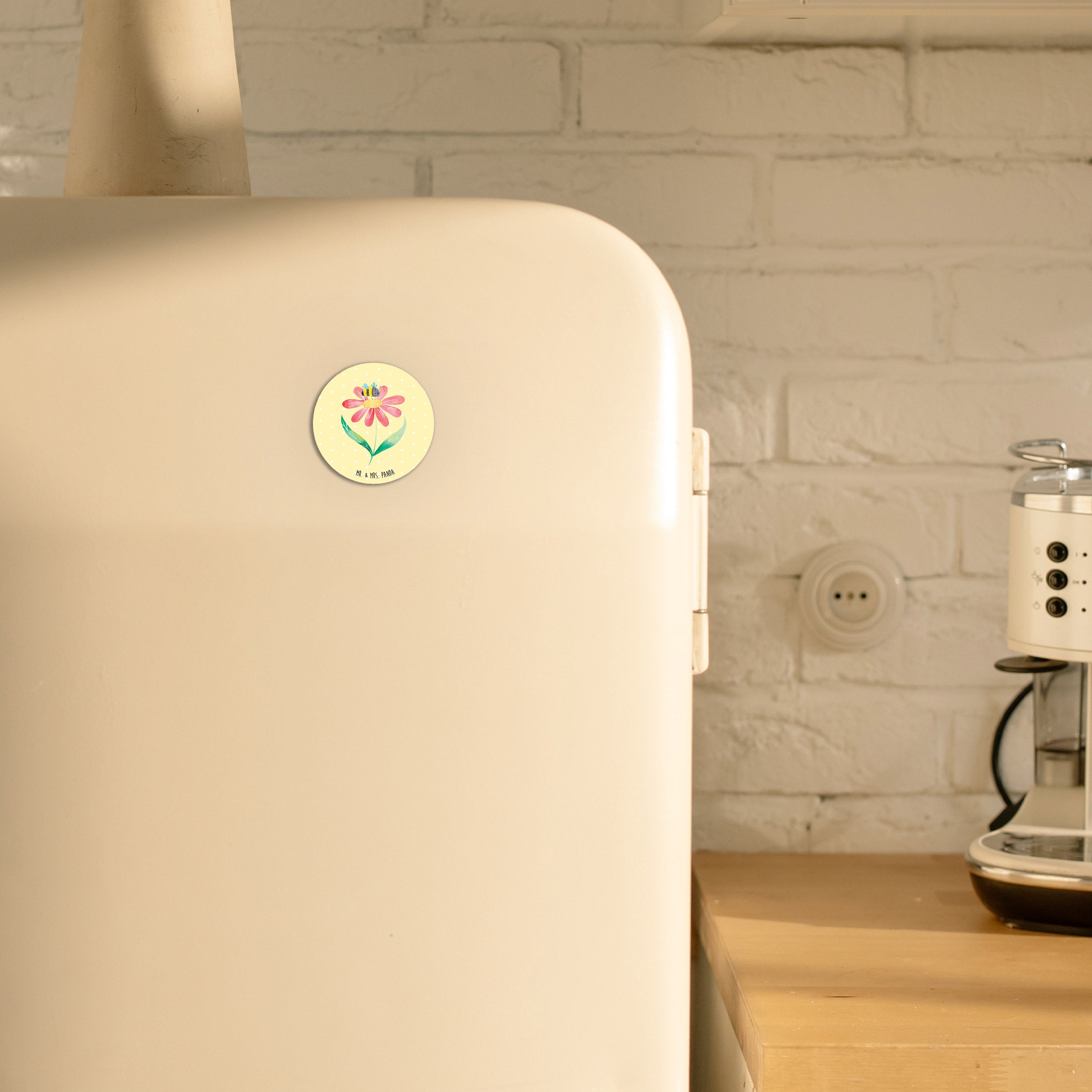 Rund Magnet Hummel Blume - mit Spruch - Gelb Pastell