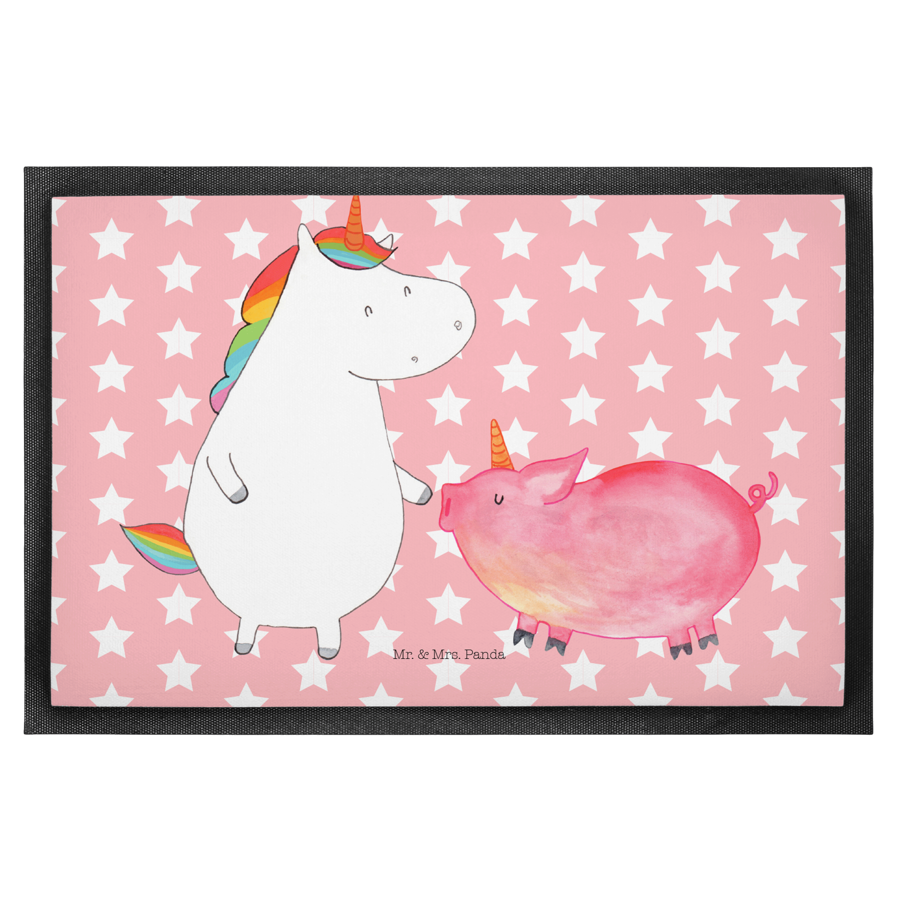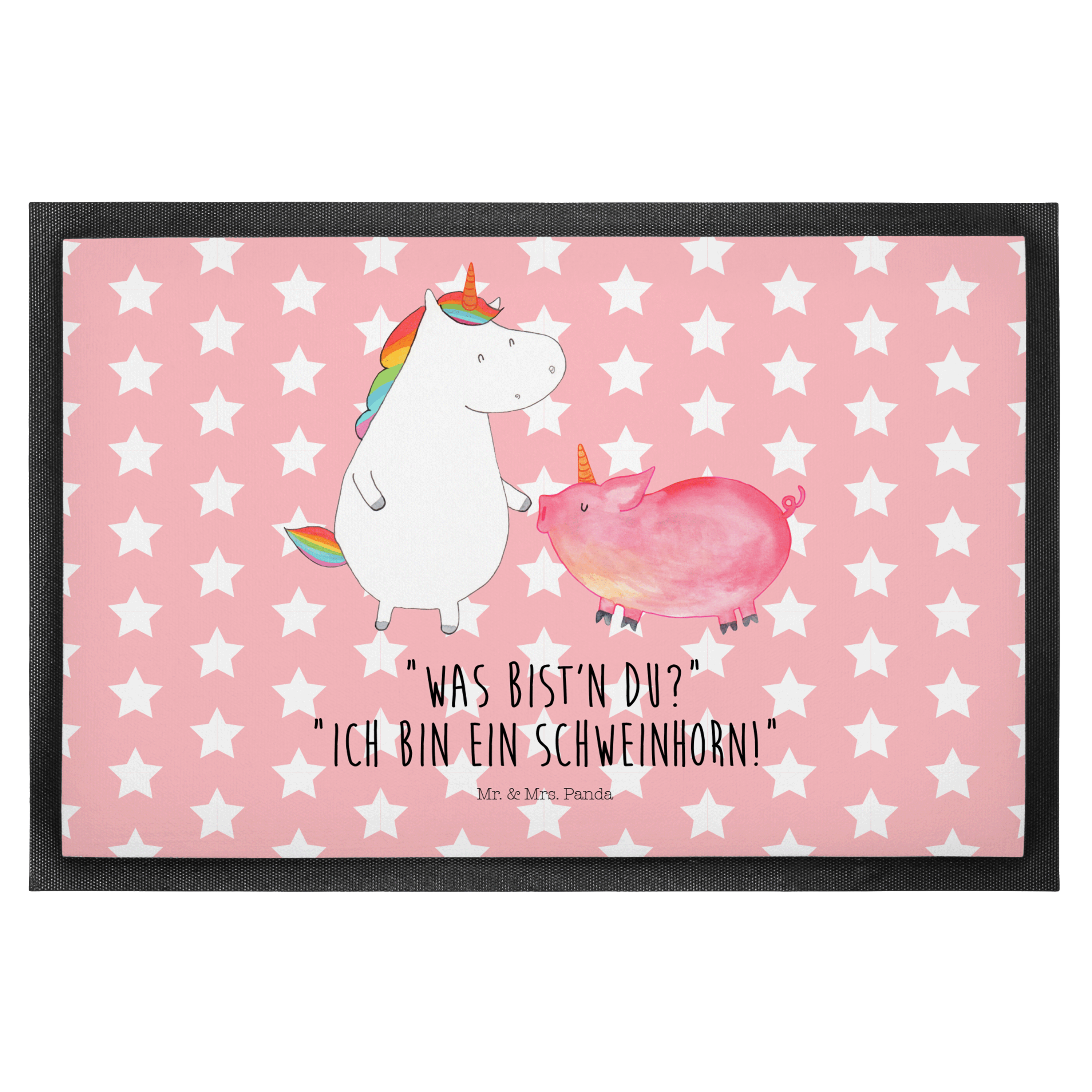 Fußmatte Einhorn + Schweinhorn - 50 x 75 cm - mit Spruch - Rot Pastell