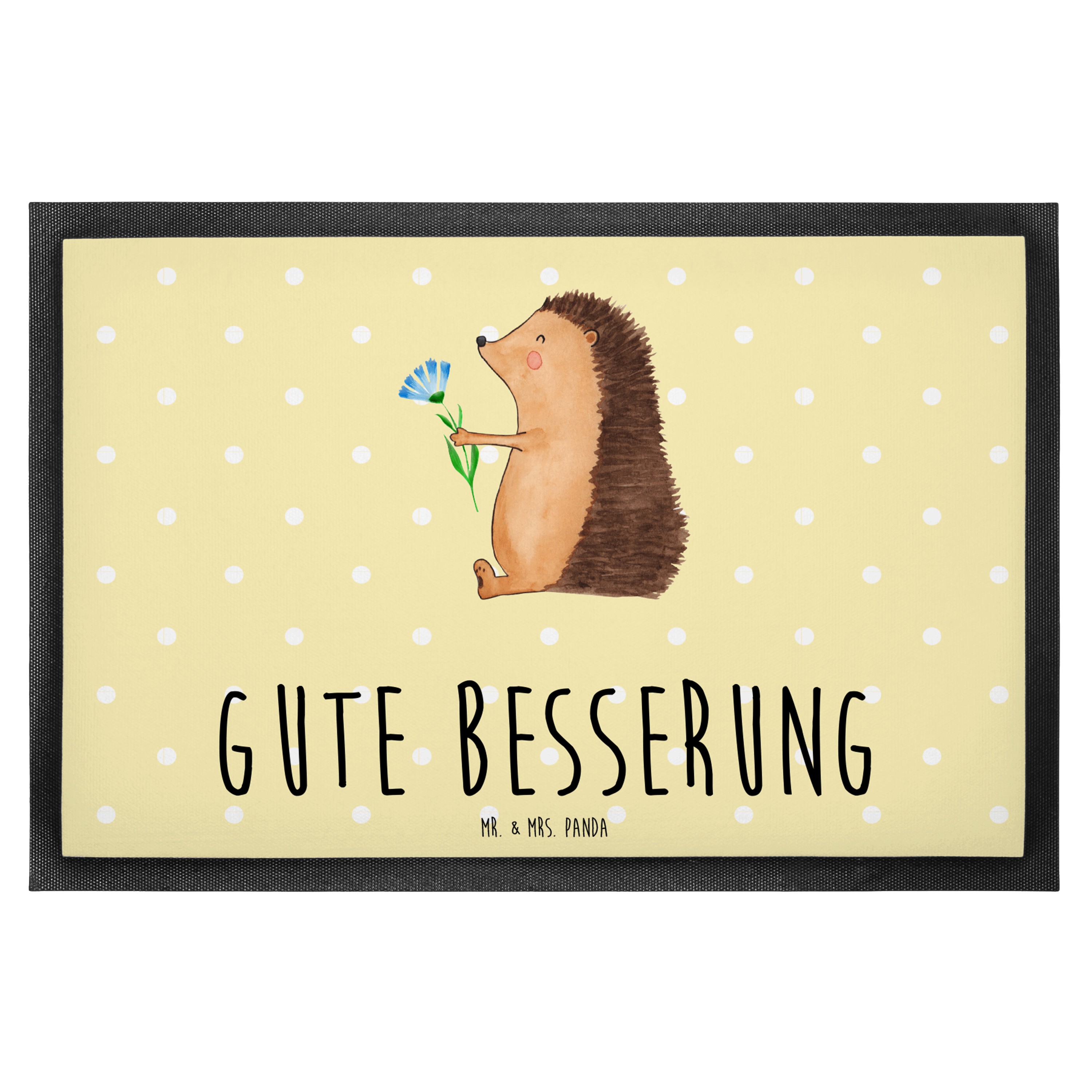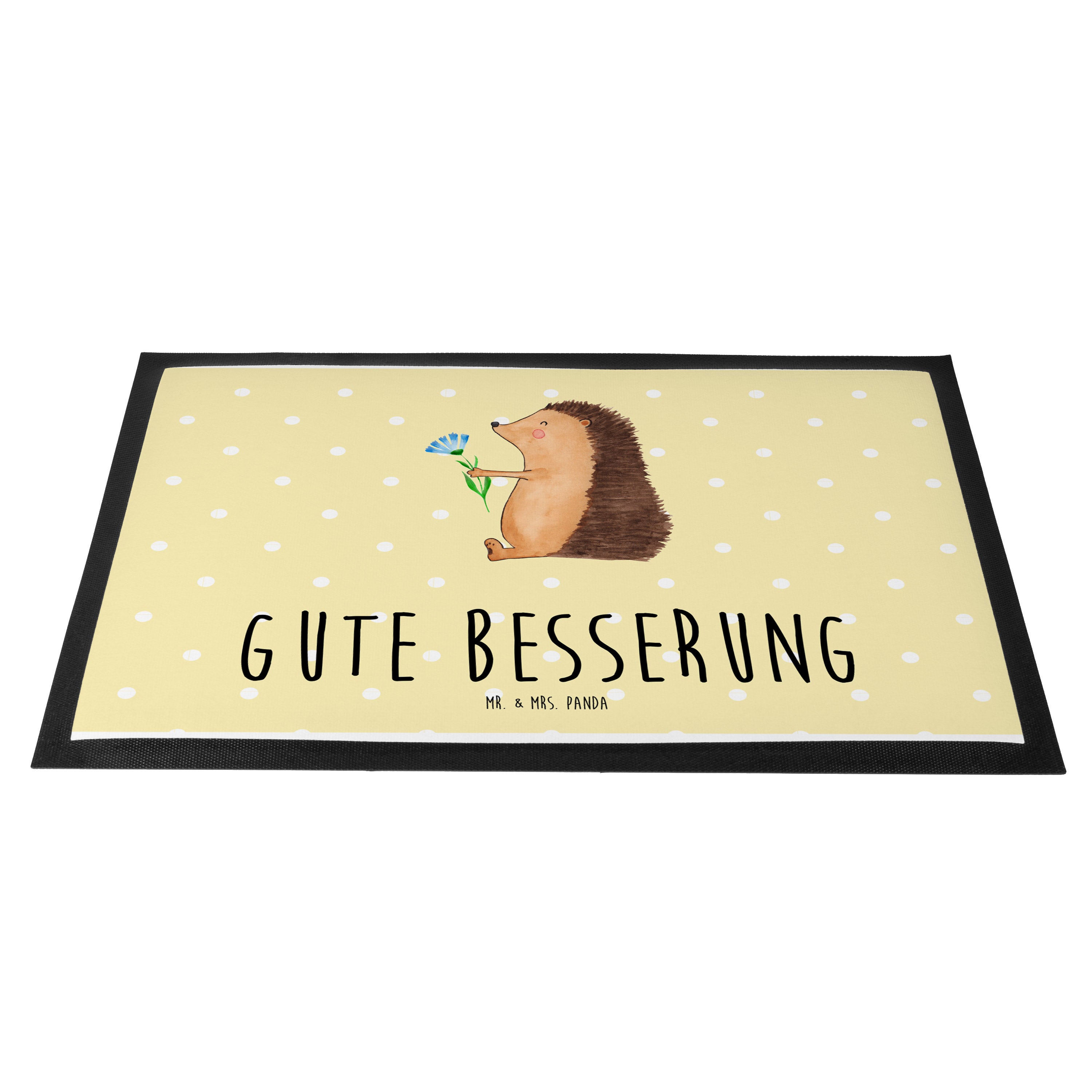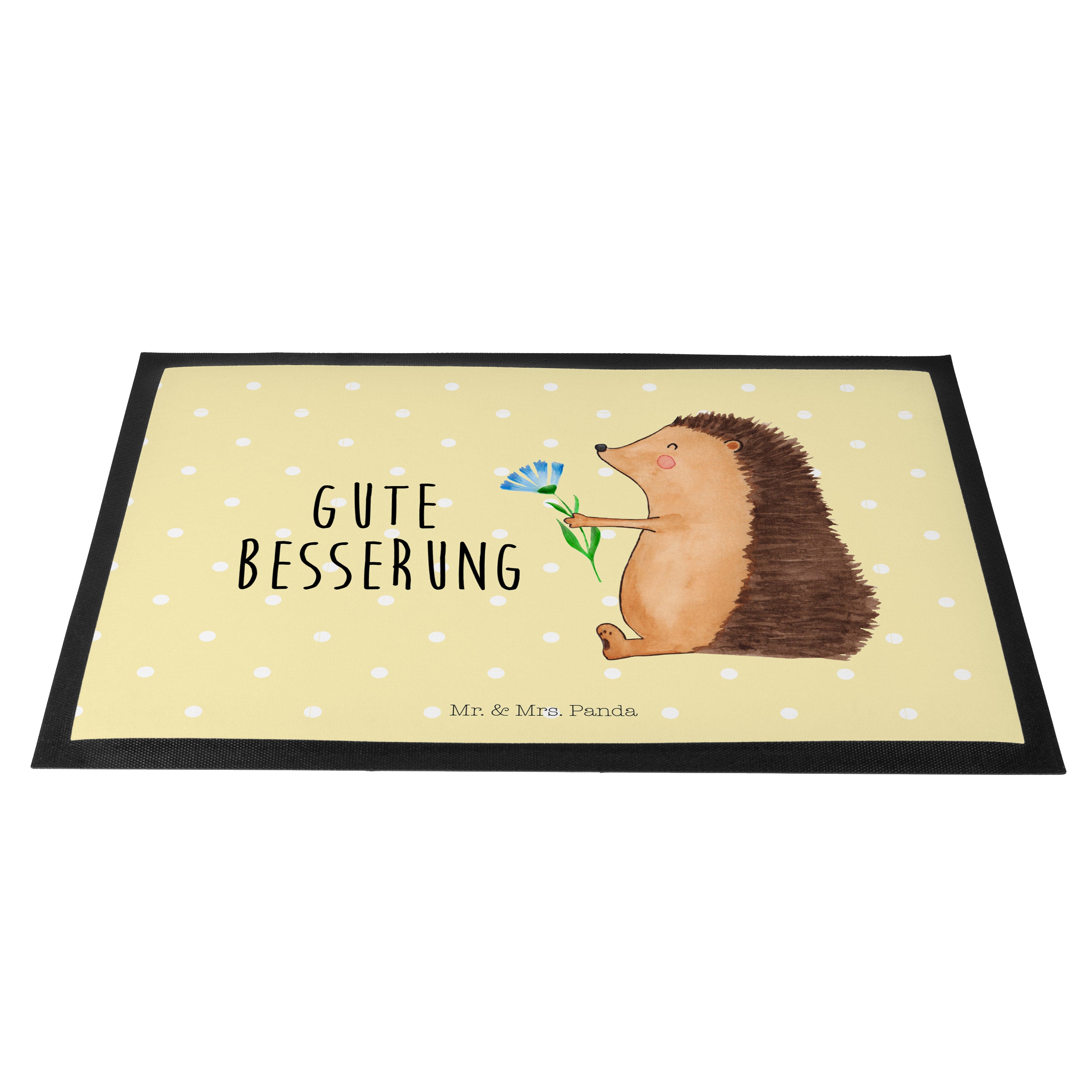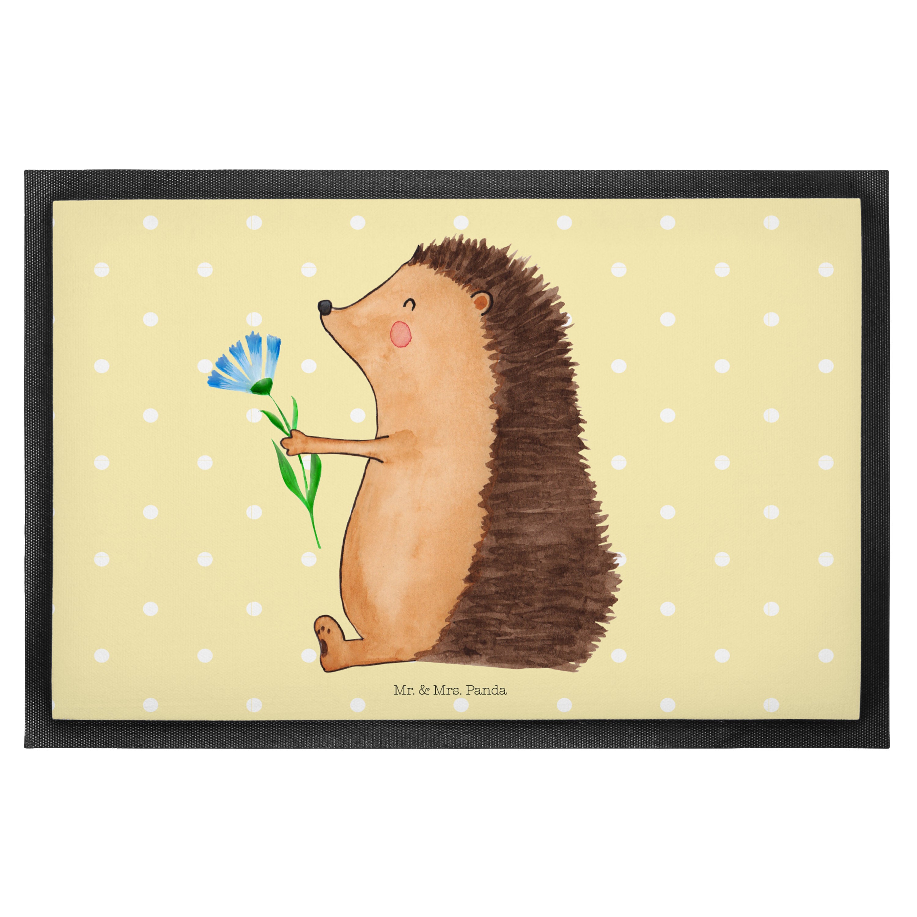 Fußmatte Igel mit Blume - 60 x 90 cm - mit Spruch - Gelb Pastell