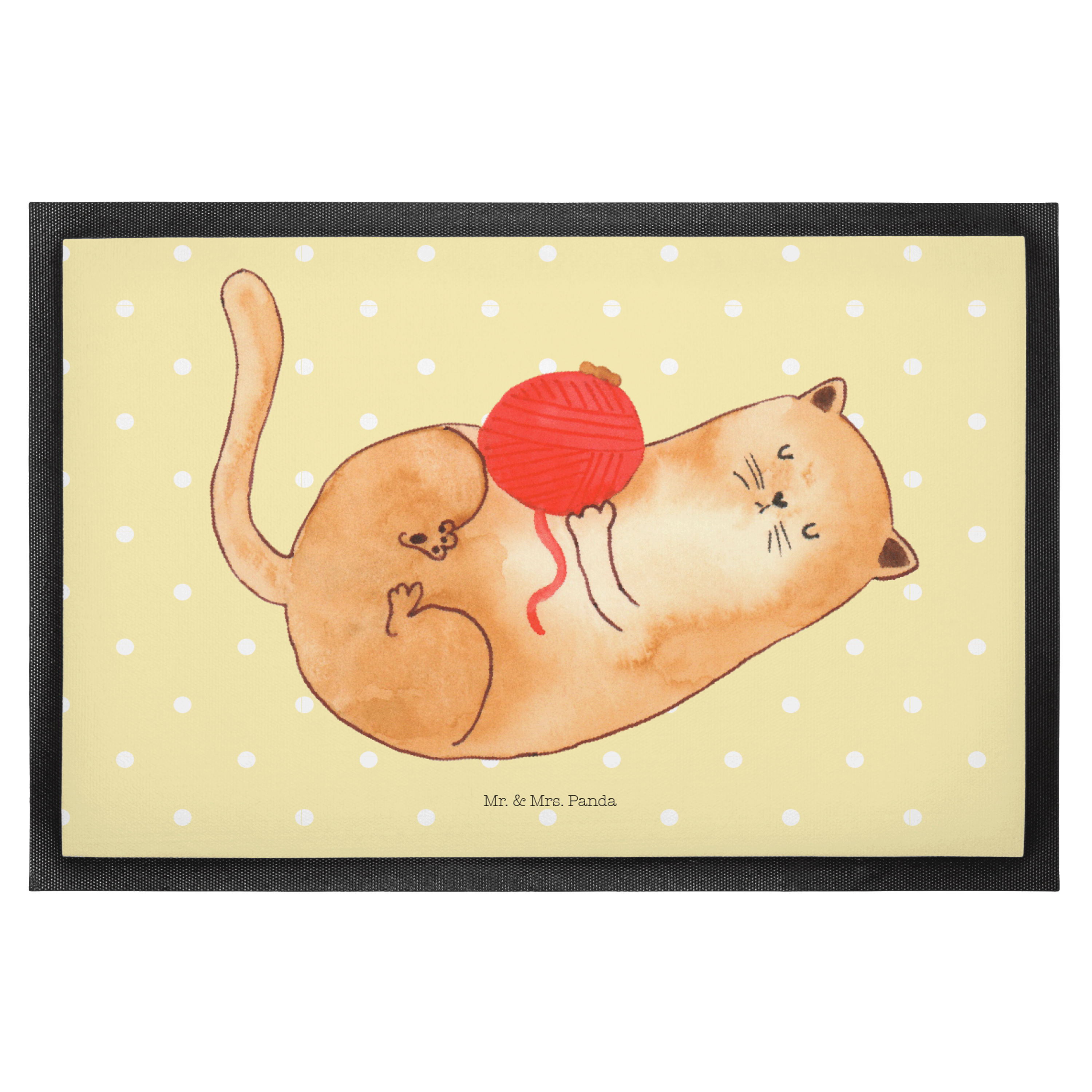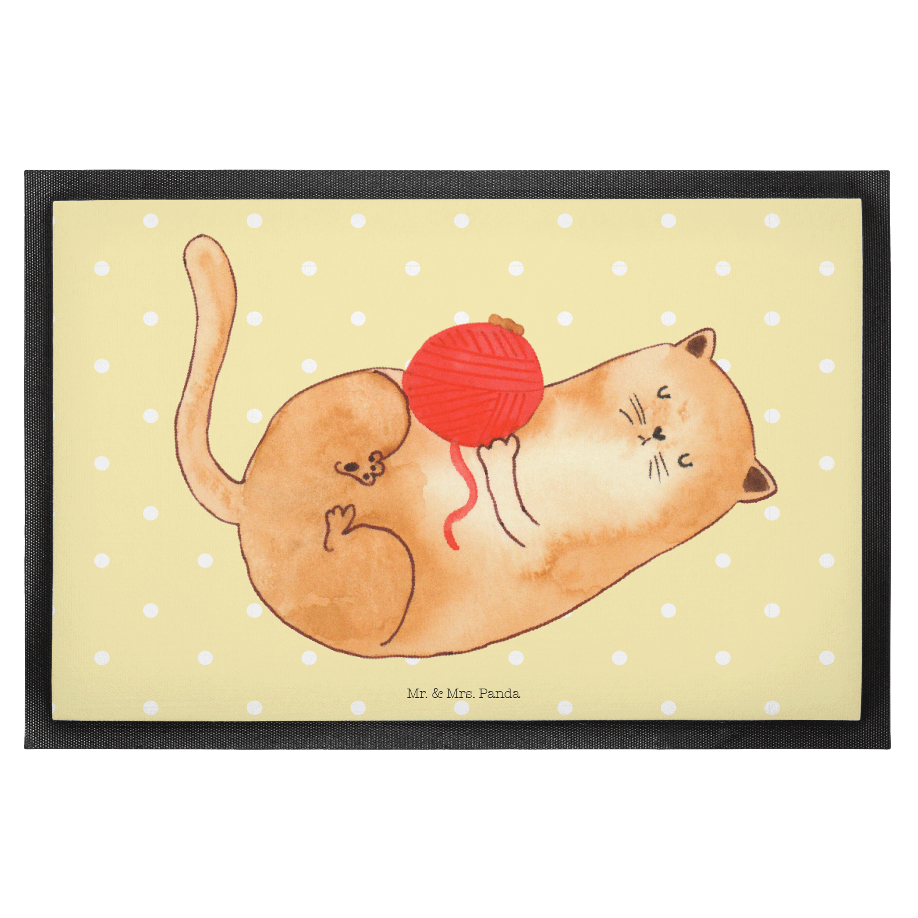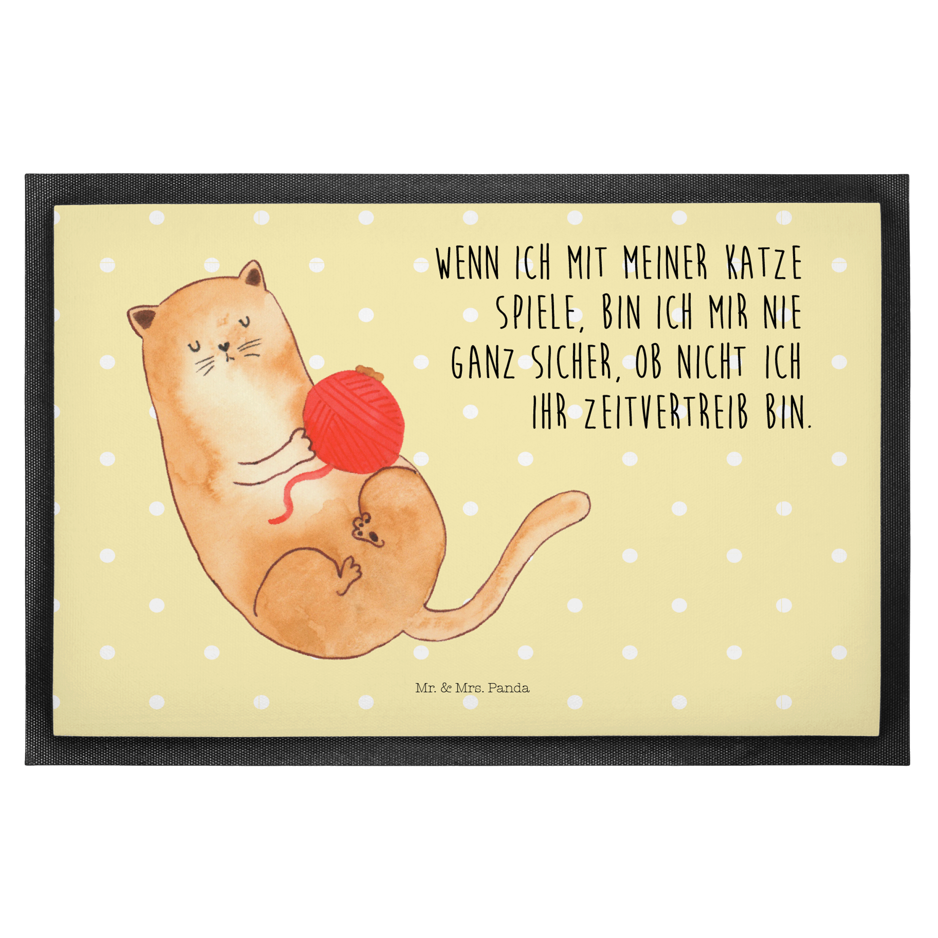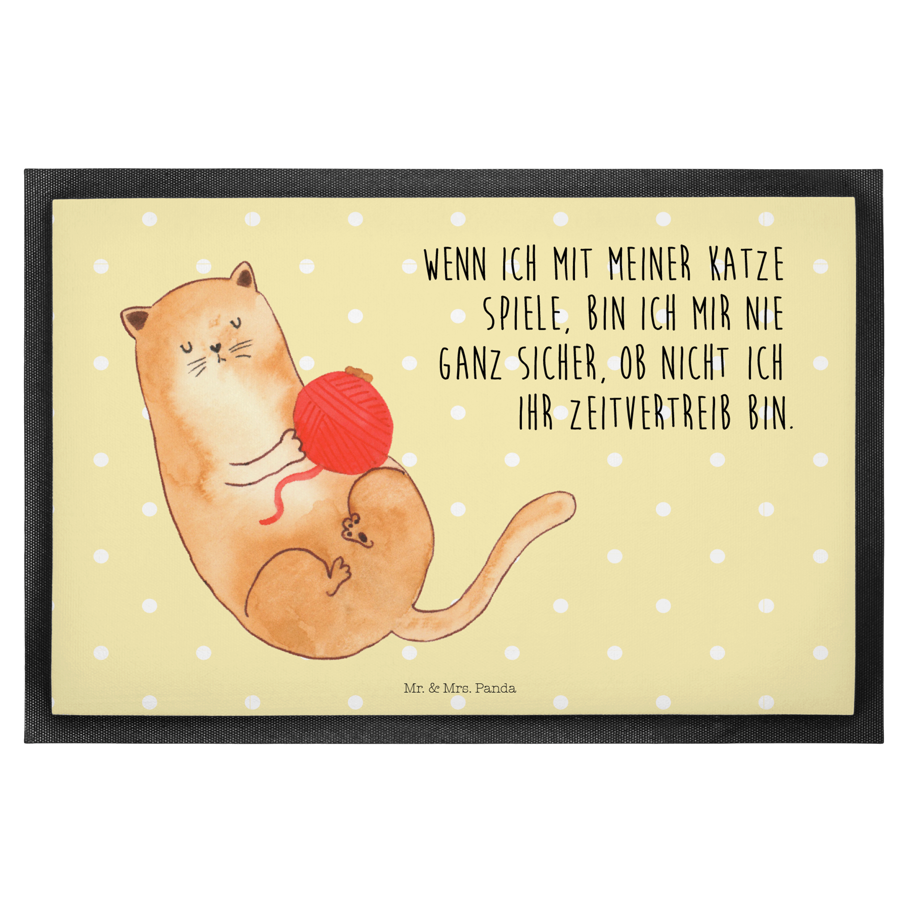 Fußmatte Katzen Wollknäul - 50 x 75 cm - mit Spruch - Gelb Pastell