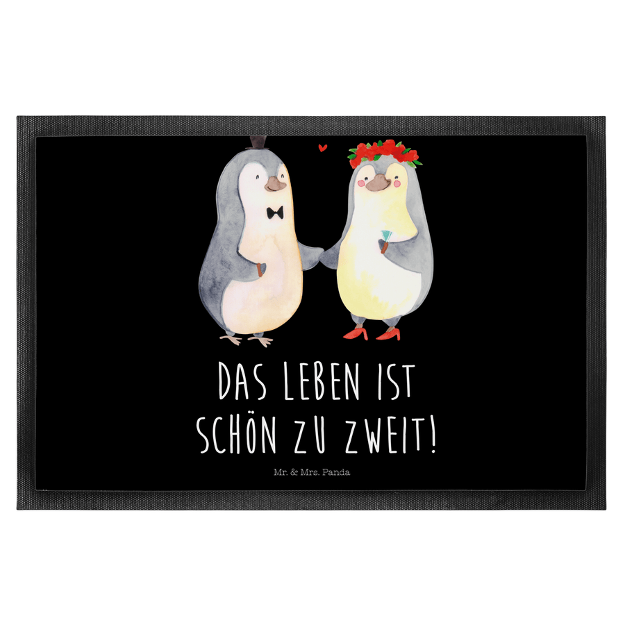 Fußmatte Pinguin Heirat - 50 x 75 cm - mit Spruch - Schwarz