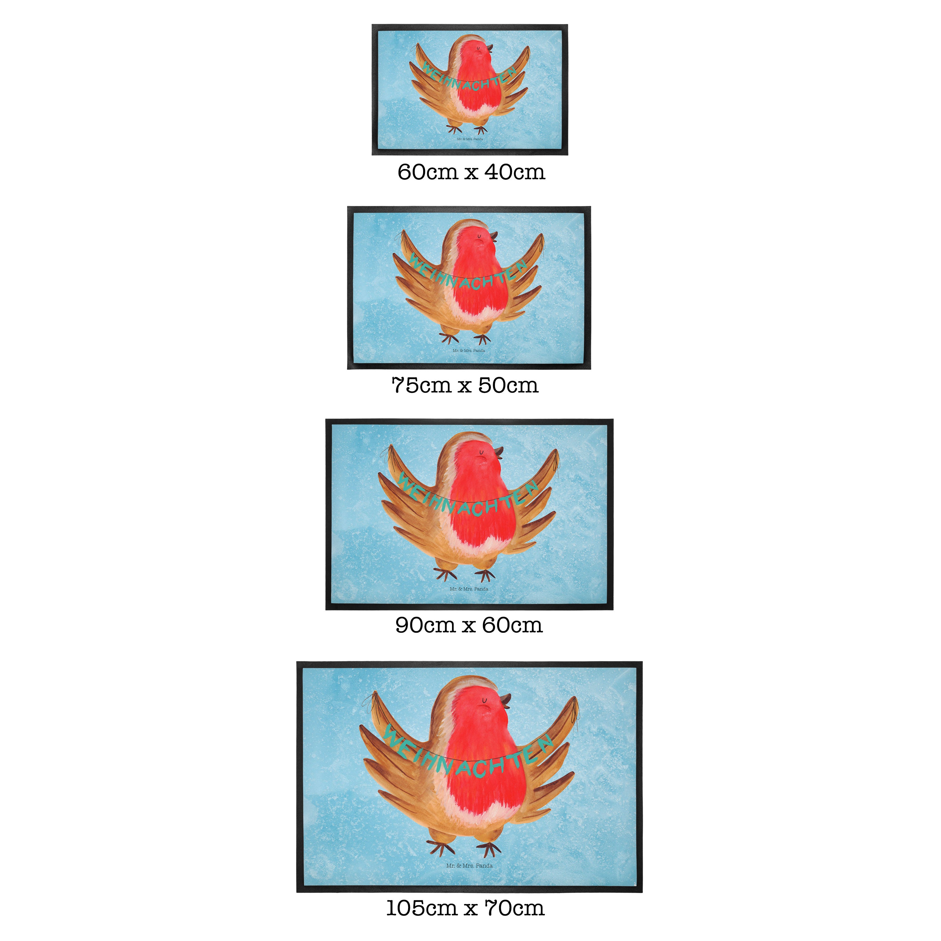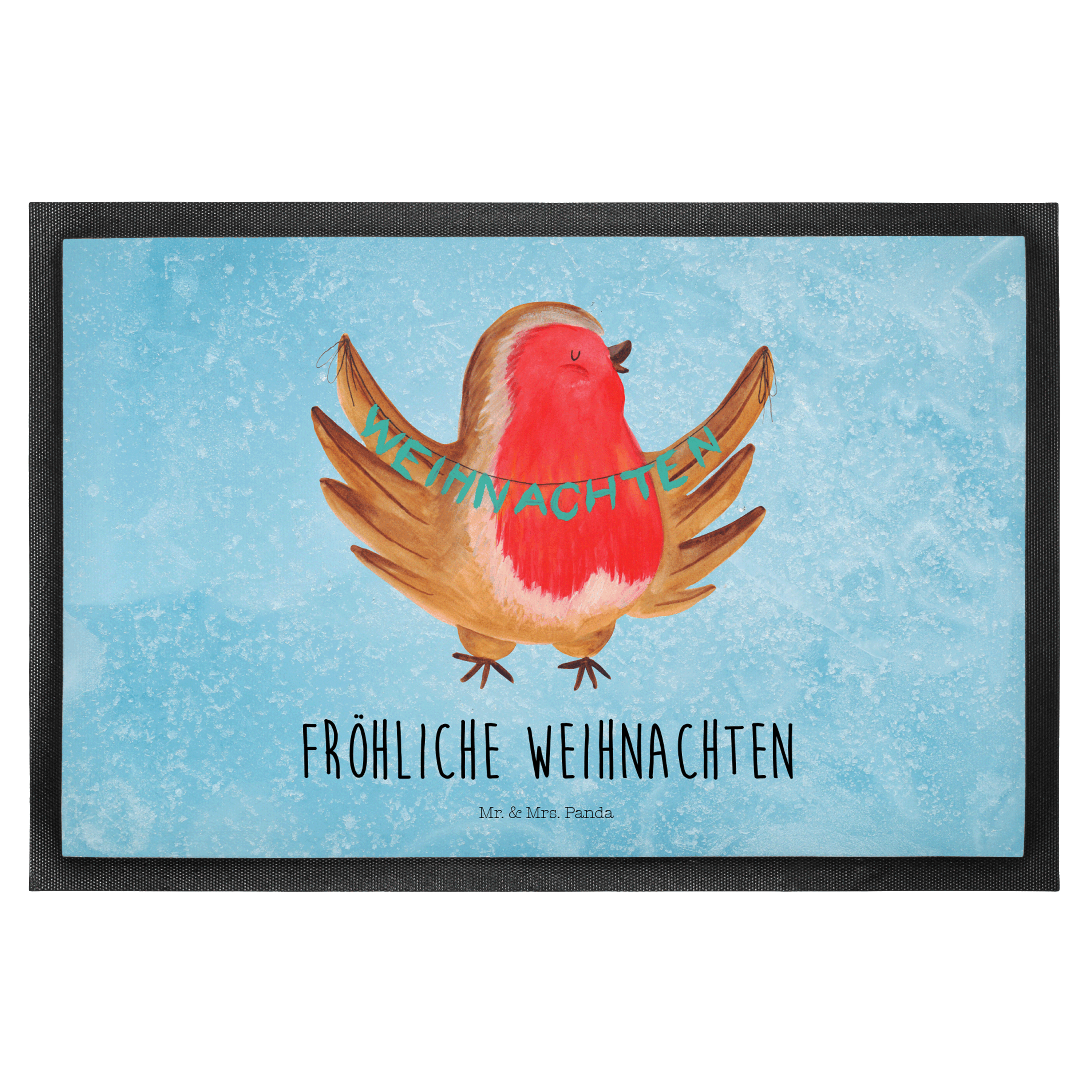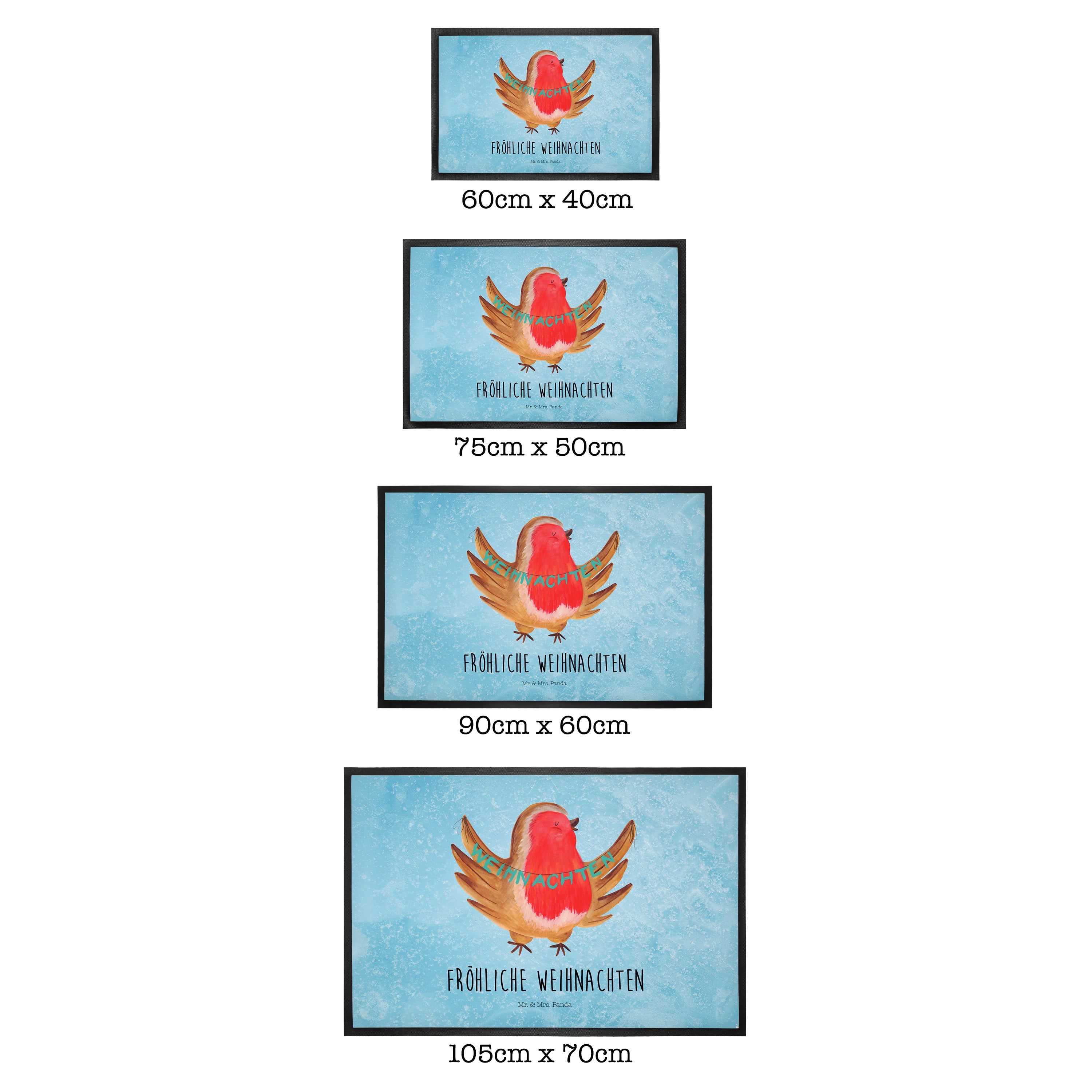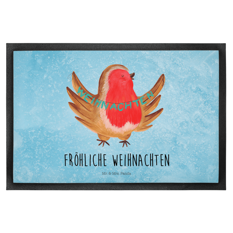 Fußmatte Rotkehlchen Weihnachten - 40 x 60 cm - mit Spruch - Eisblau