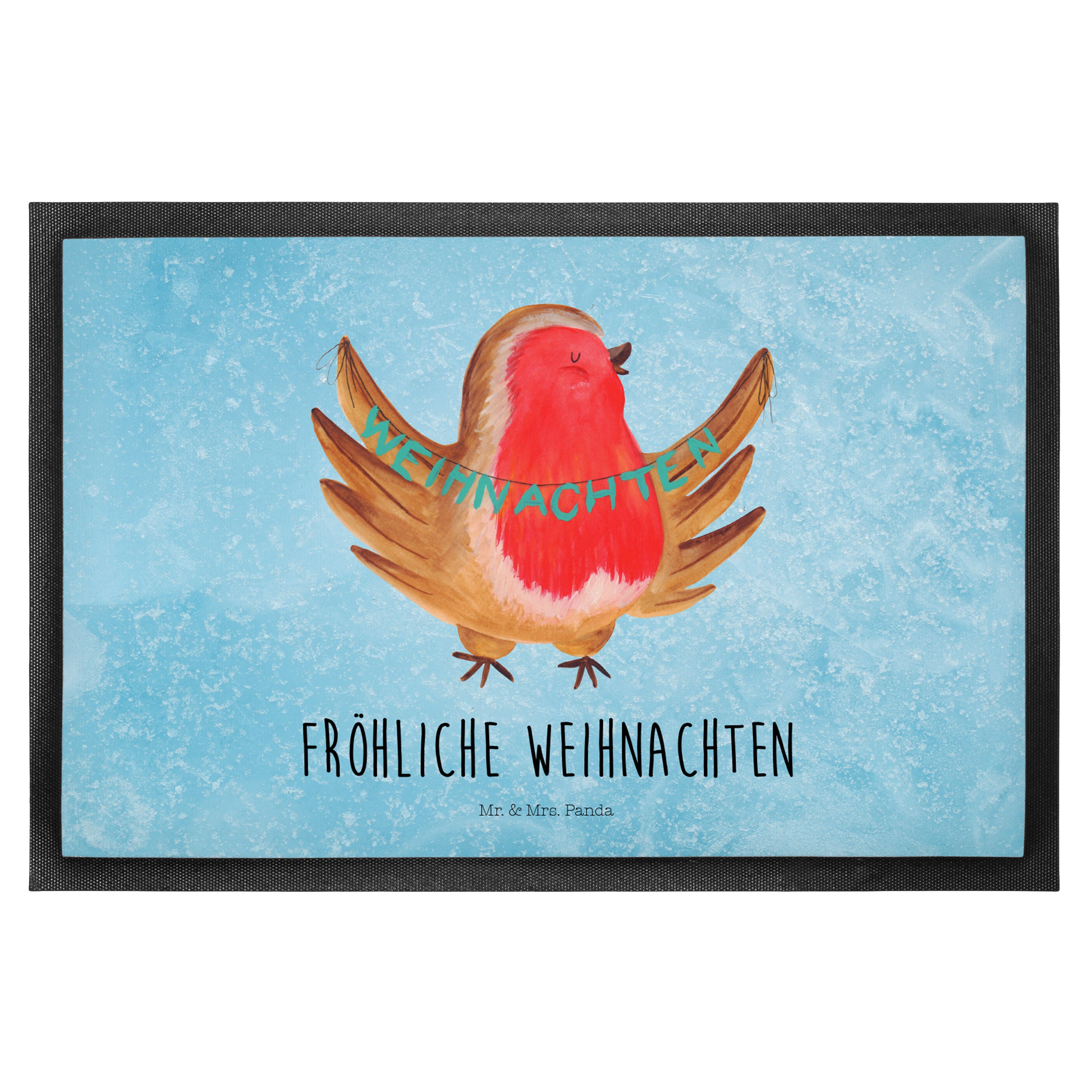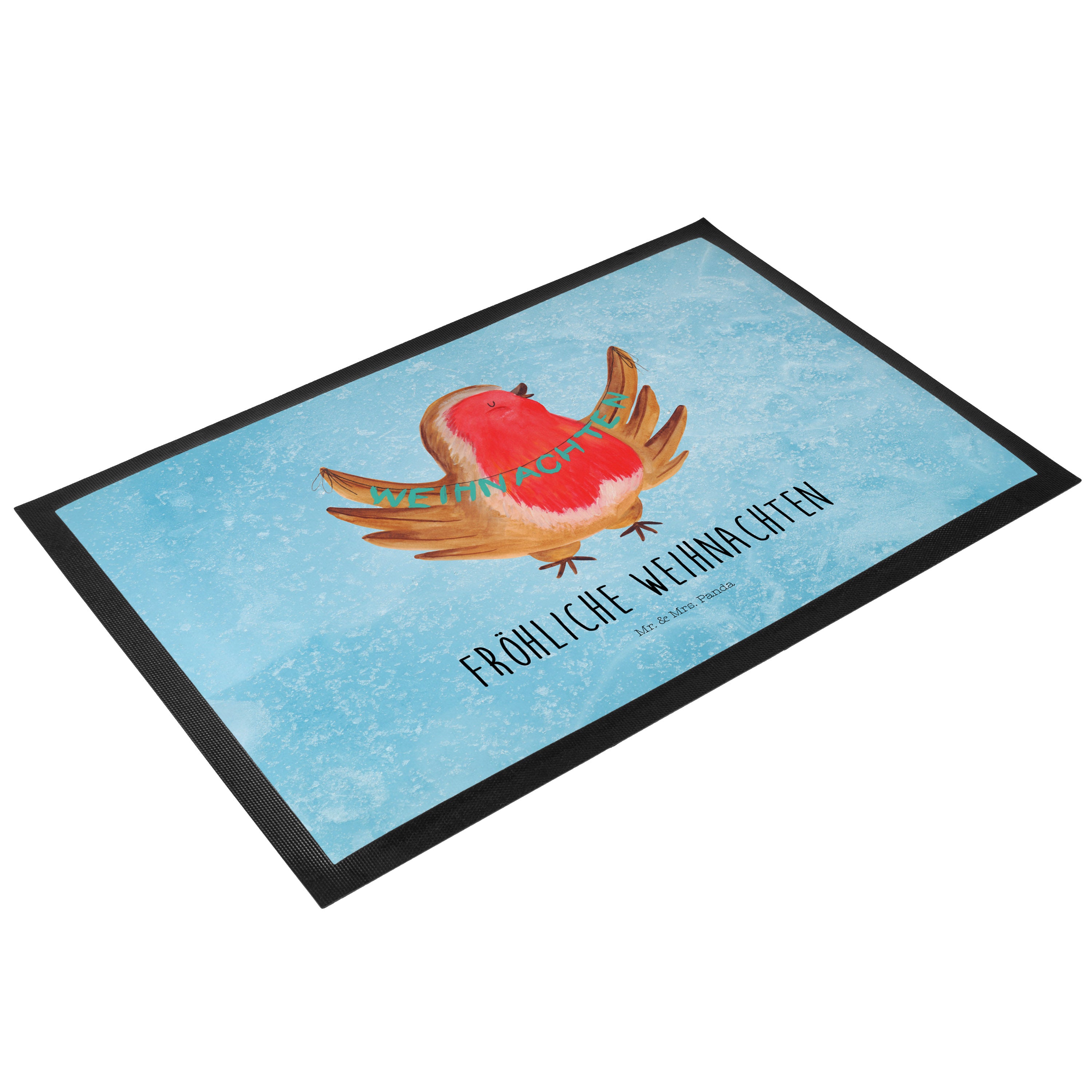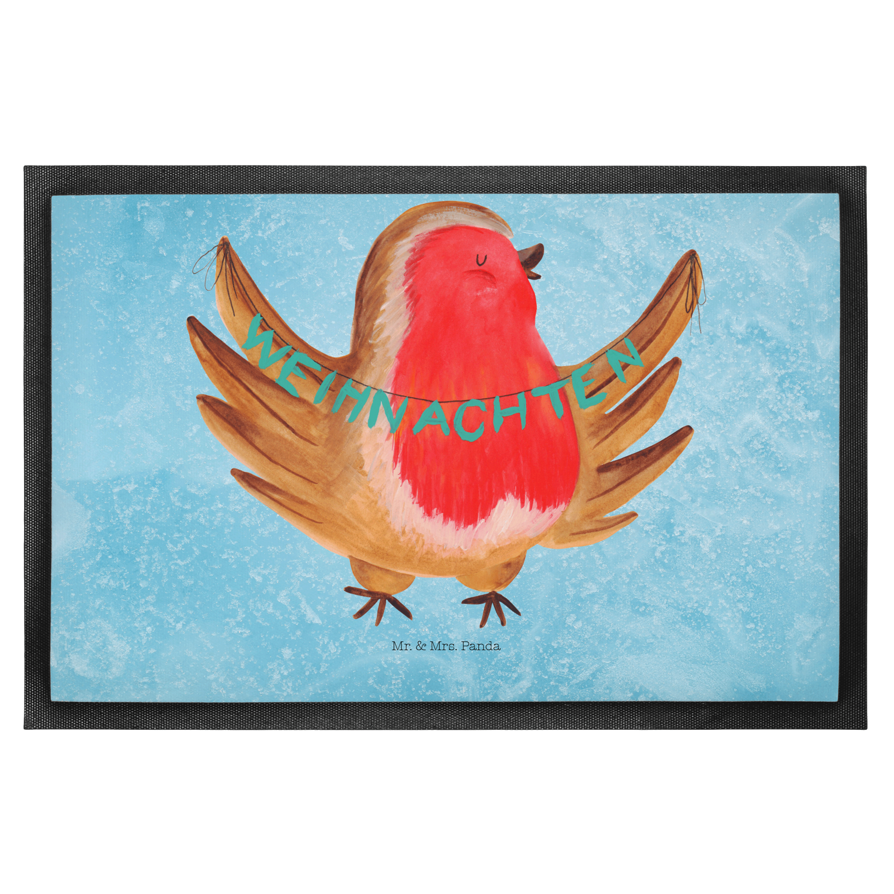 Fußmatte Rotkehlchen Weihnachten - 40 x 60 cm - mit Spruch - Eisblau