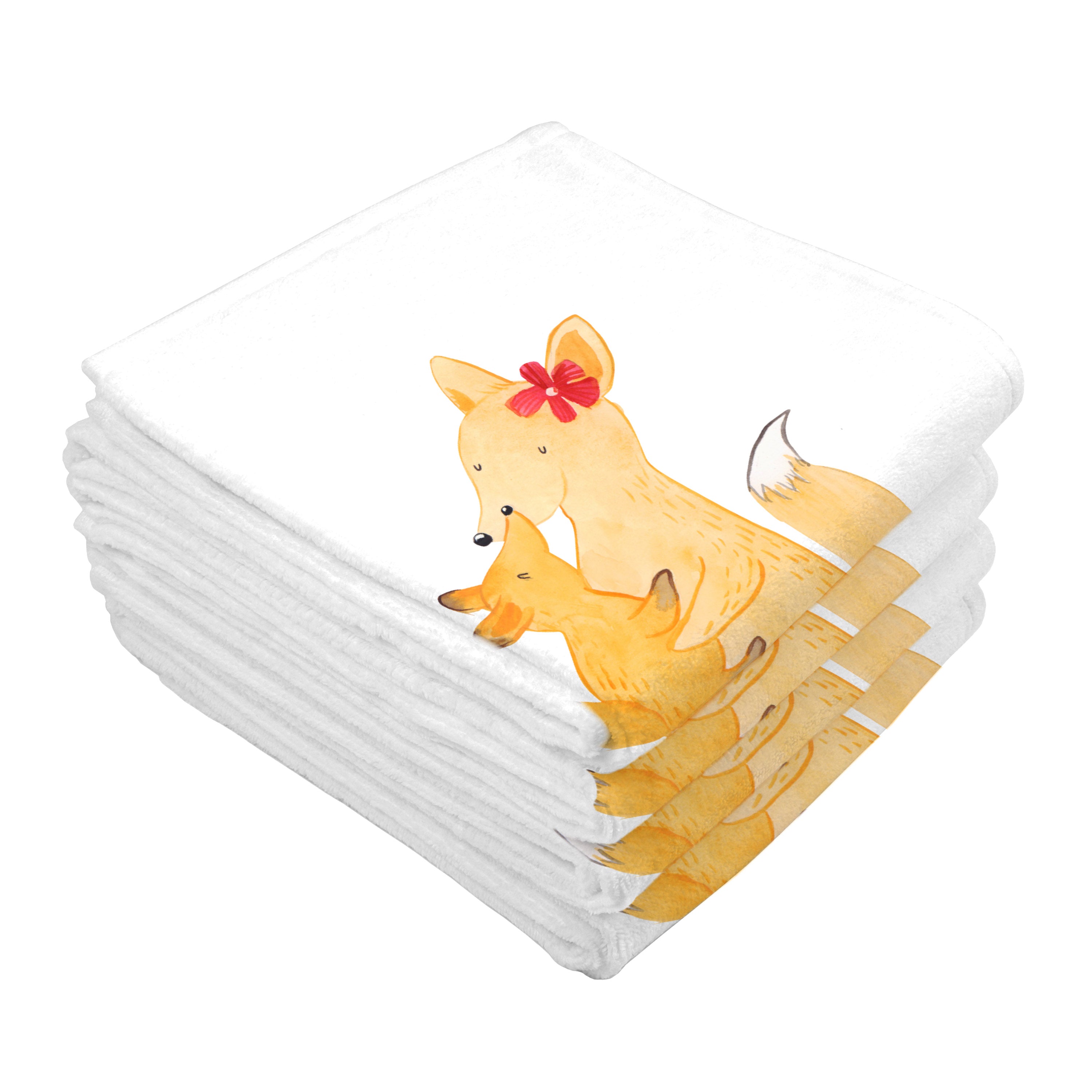 50 x 100 Handtuch Fuchs Mama & Kind - mit Spruch - Weiß
