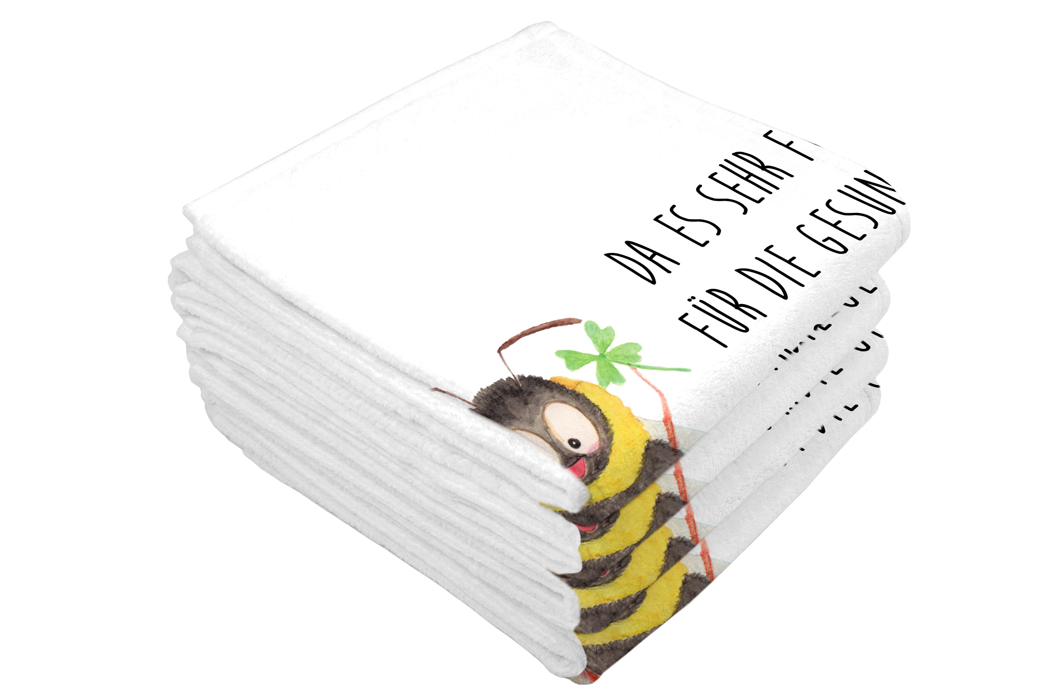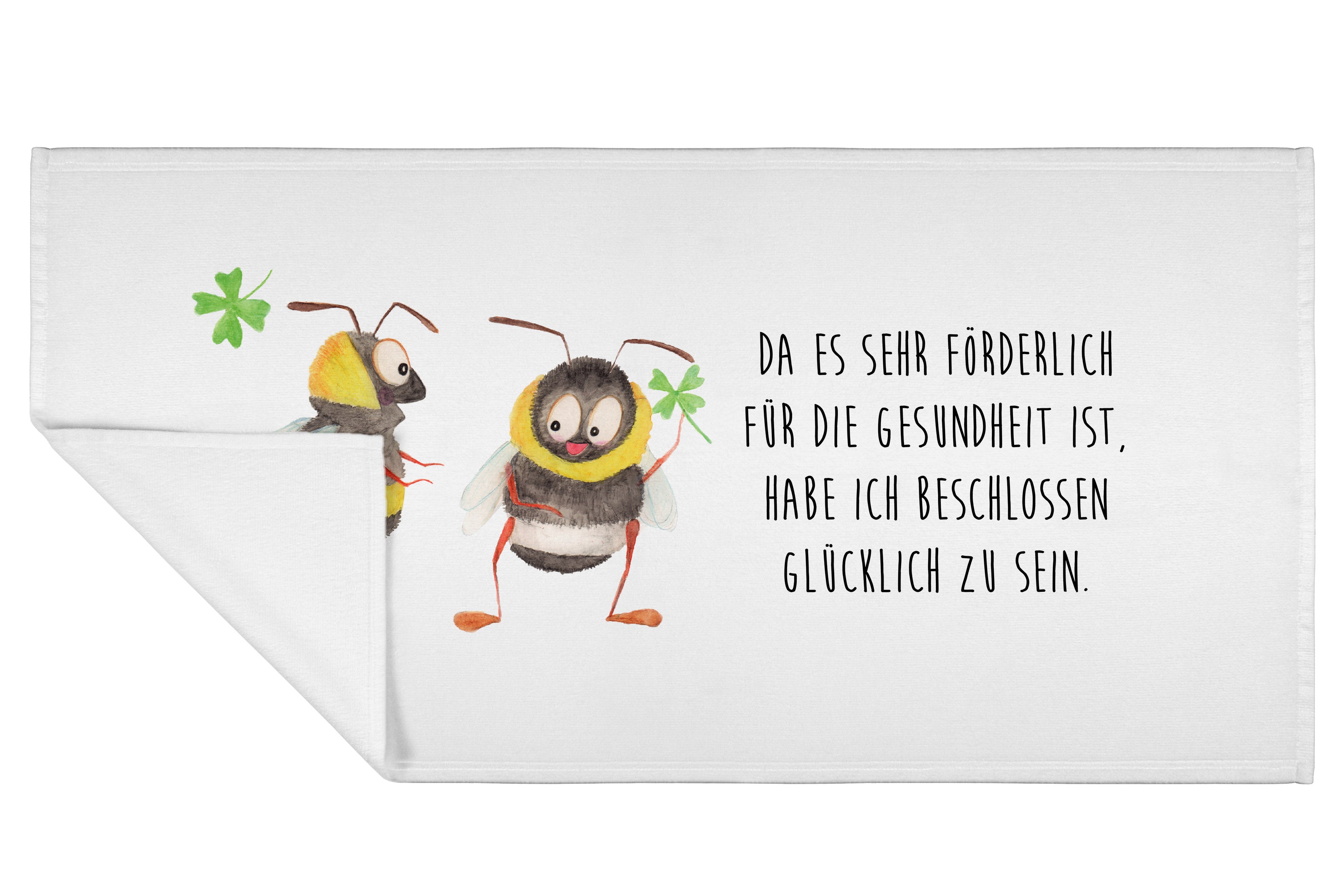 50 x 100 Handtuch Hummeln mit Kleeblatt - mit Spruch - Weiß