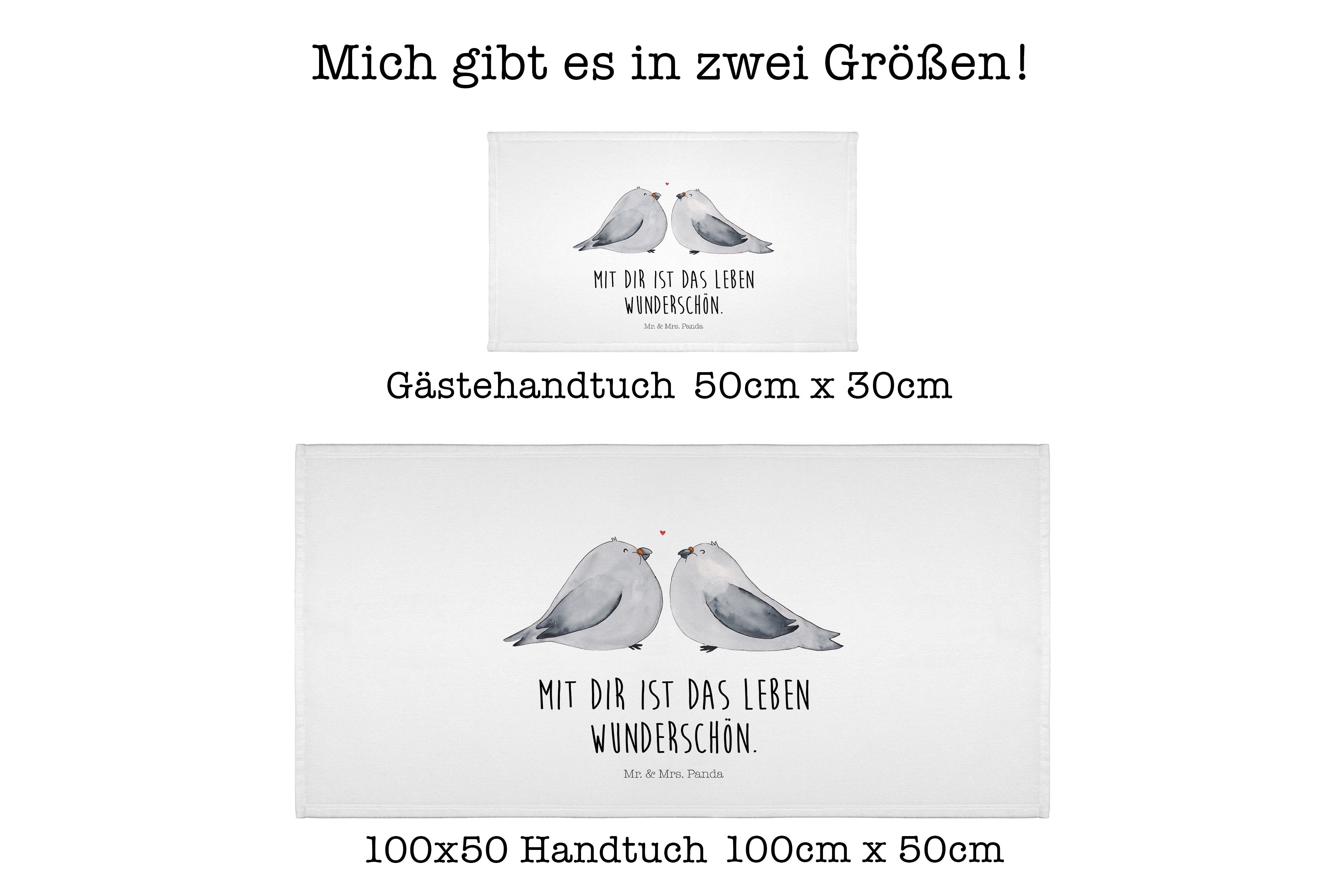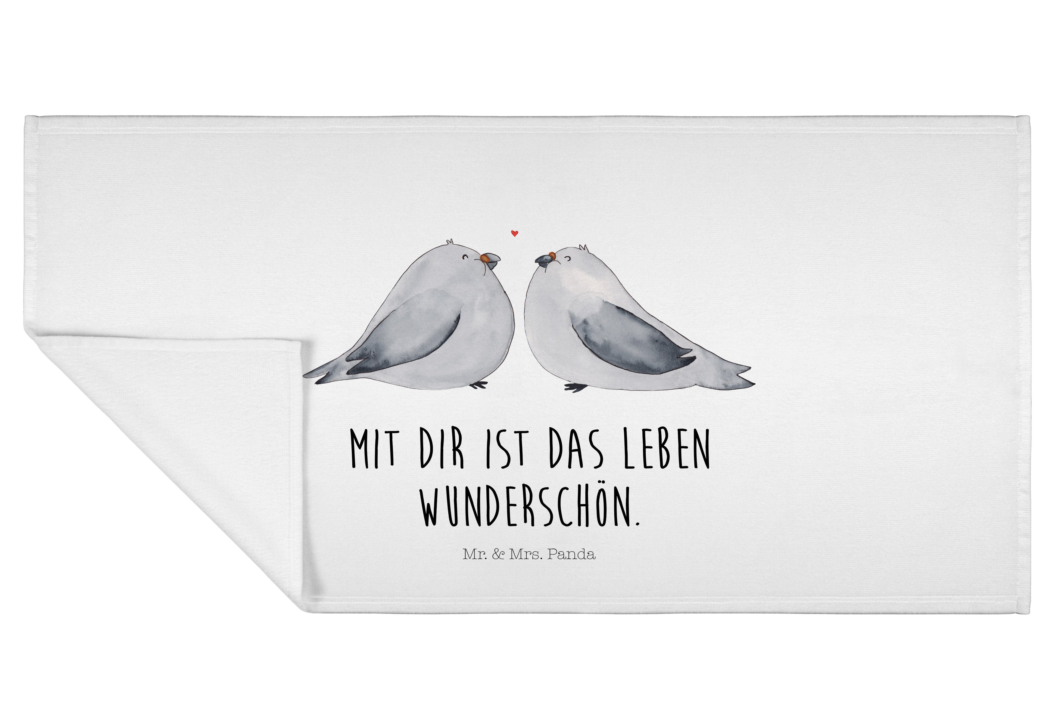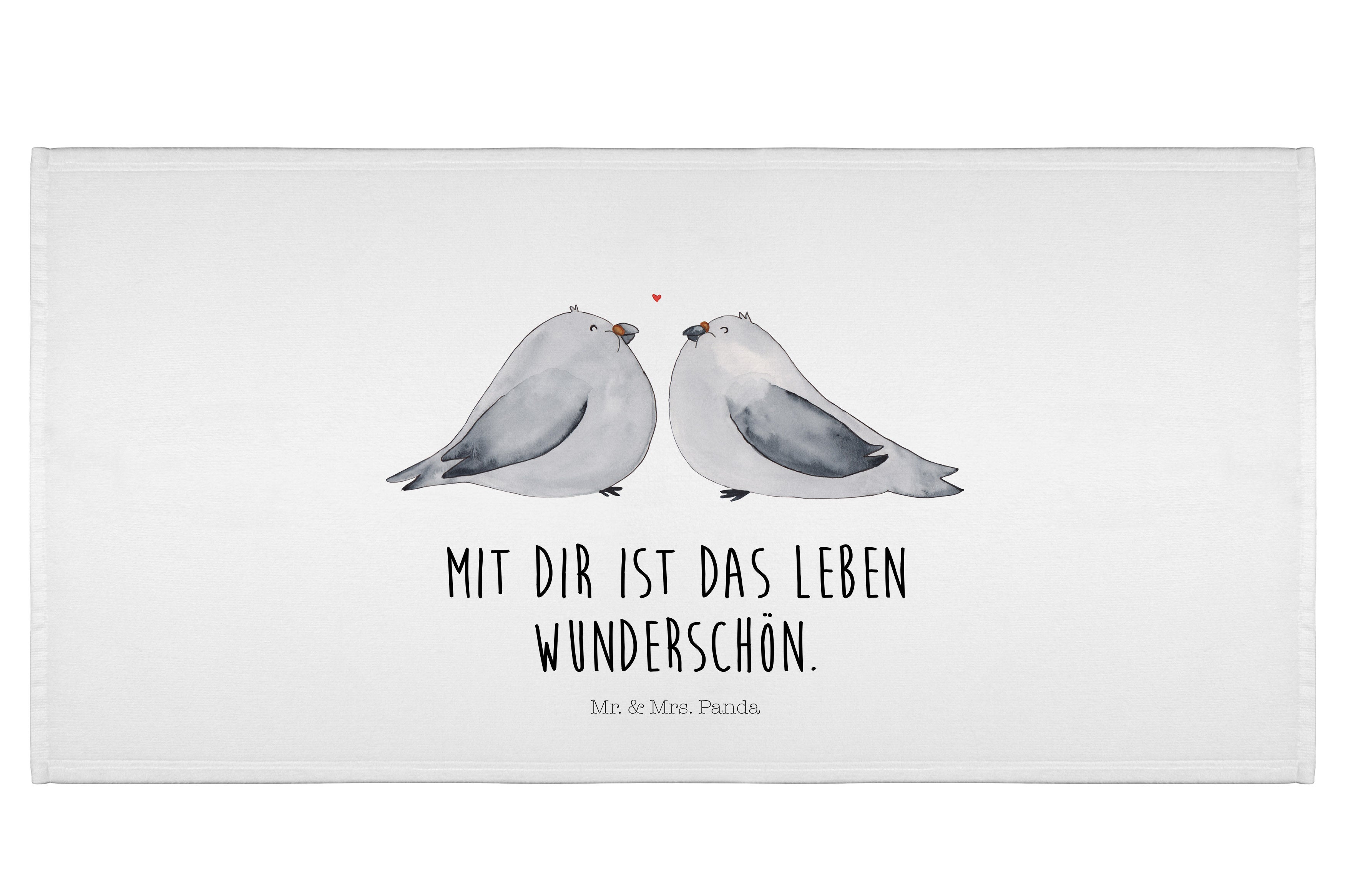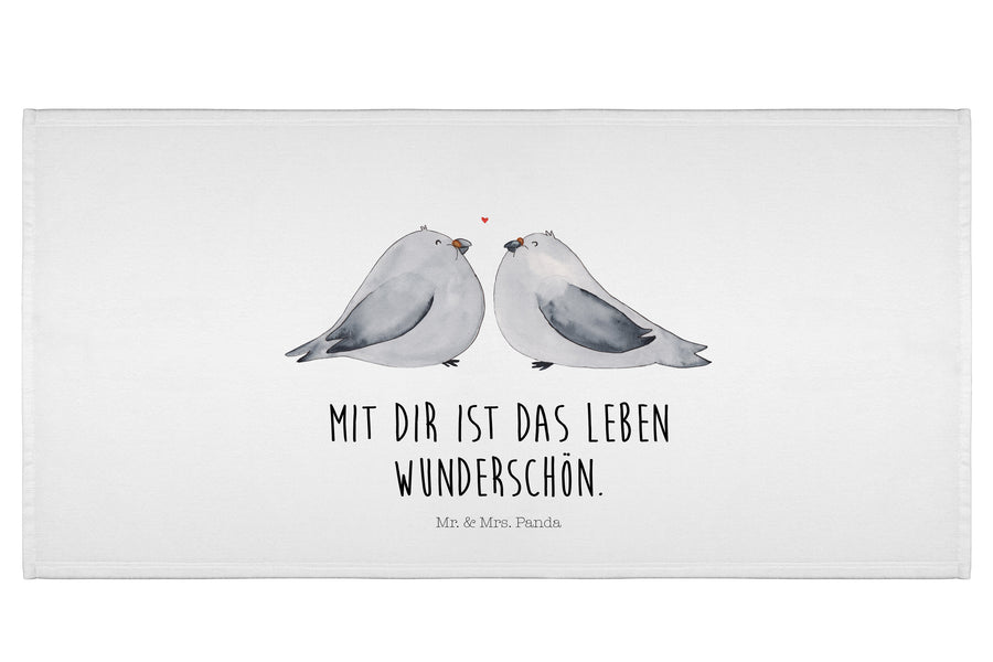 50 x 100 Handtuch Turteltauben Liebe - mit Spruch - Weiß