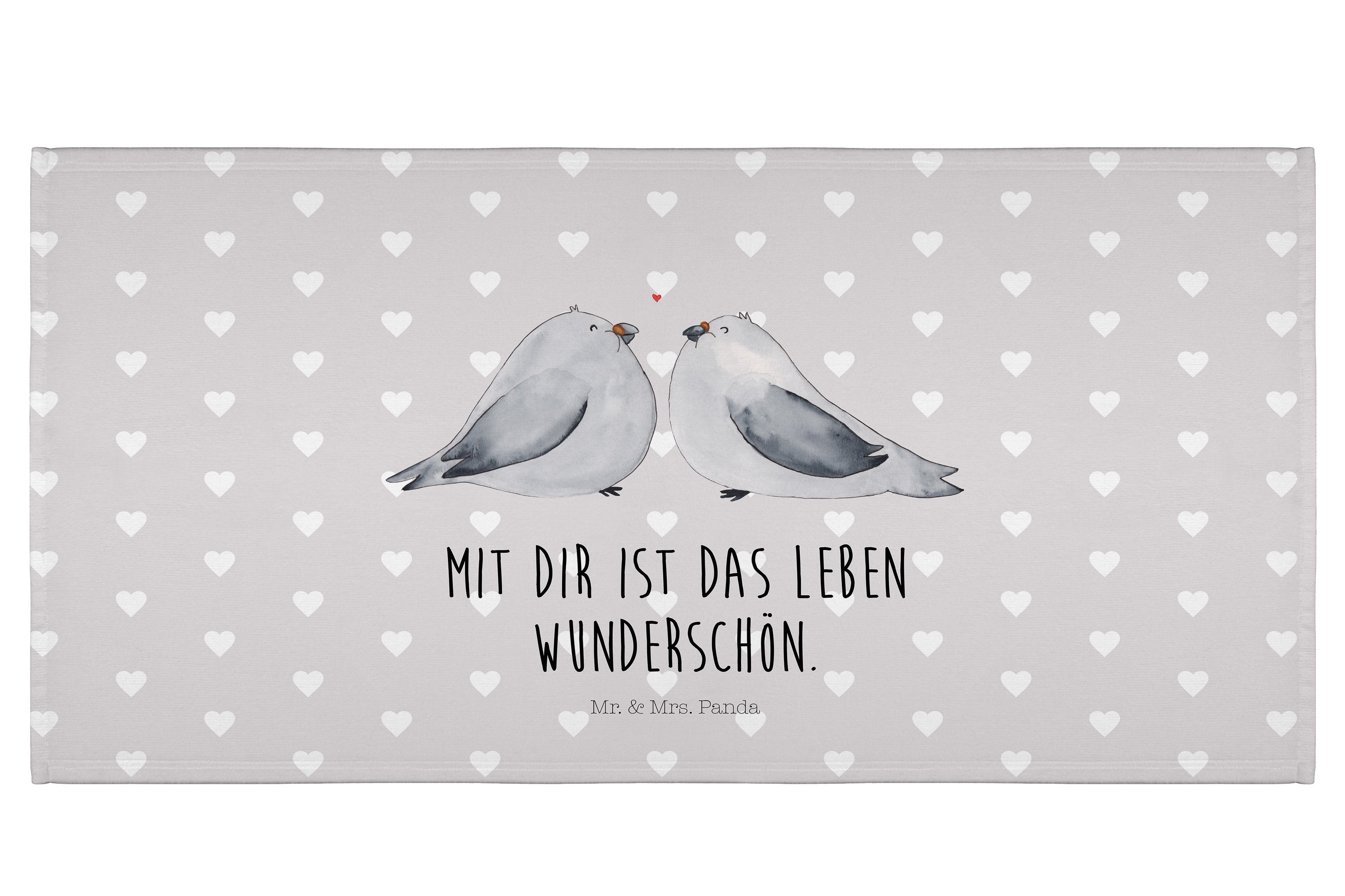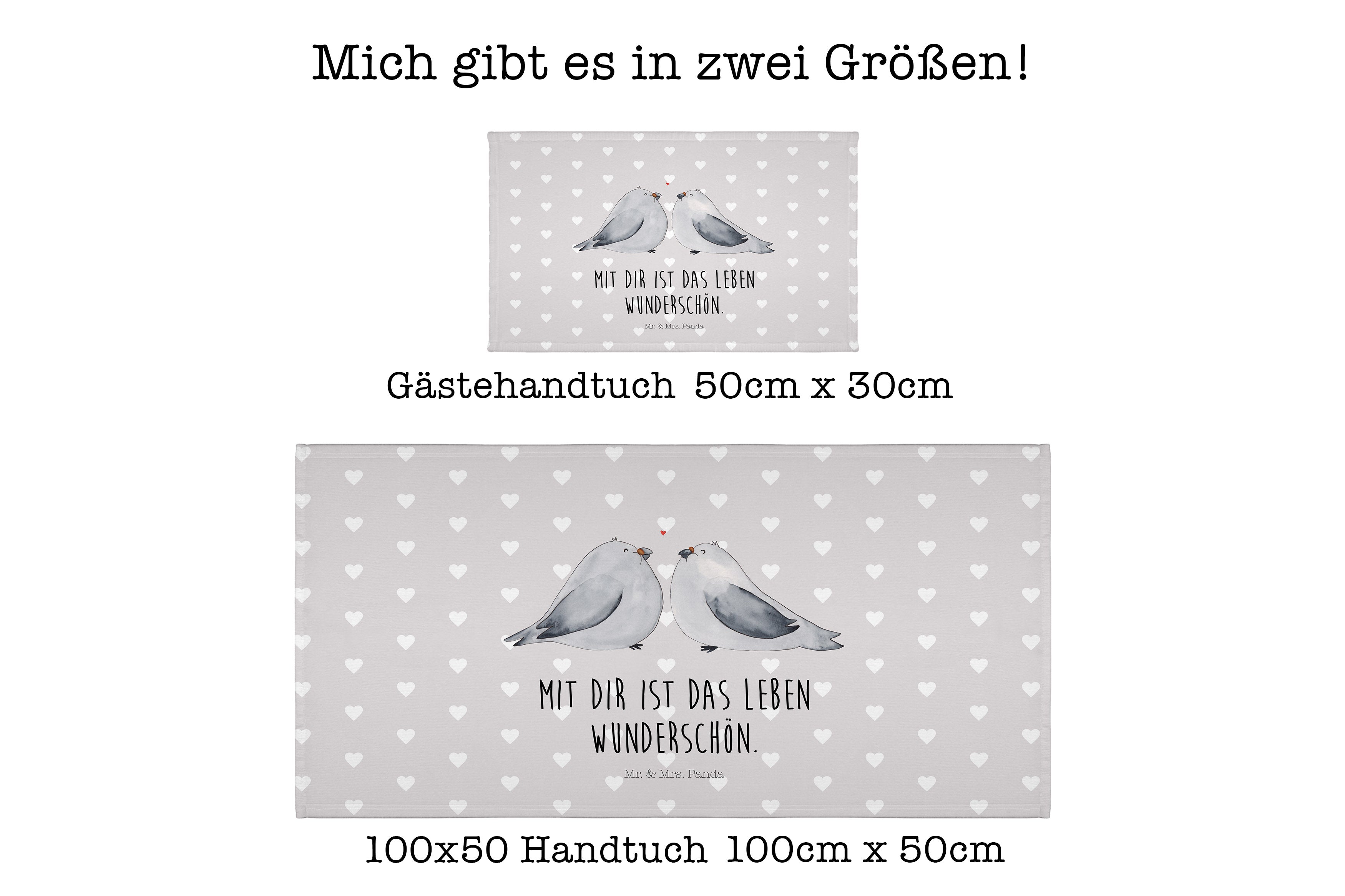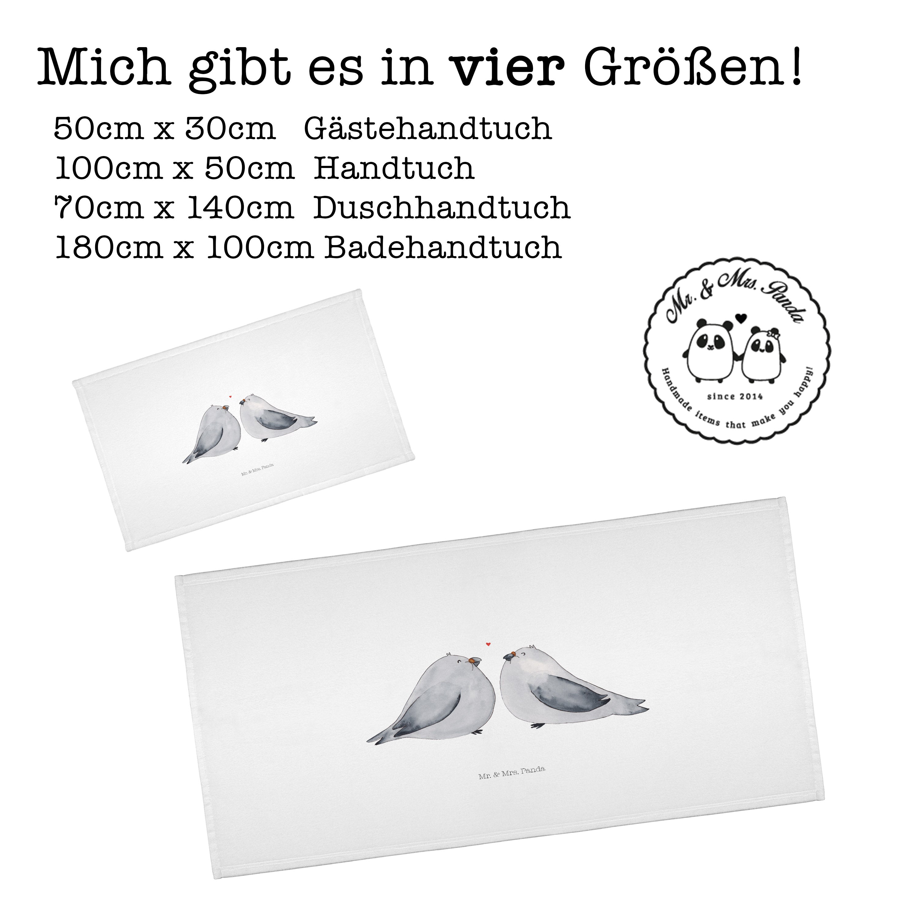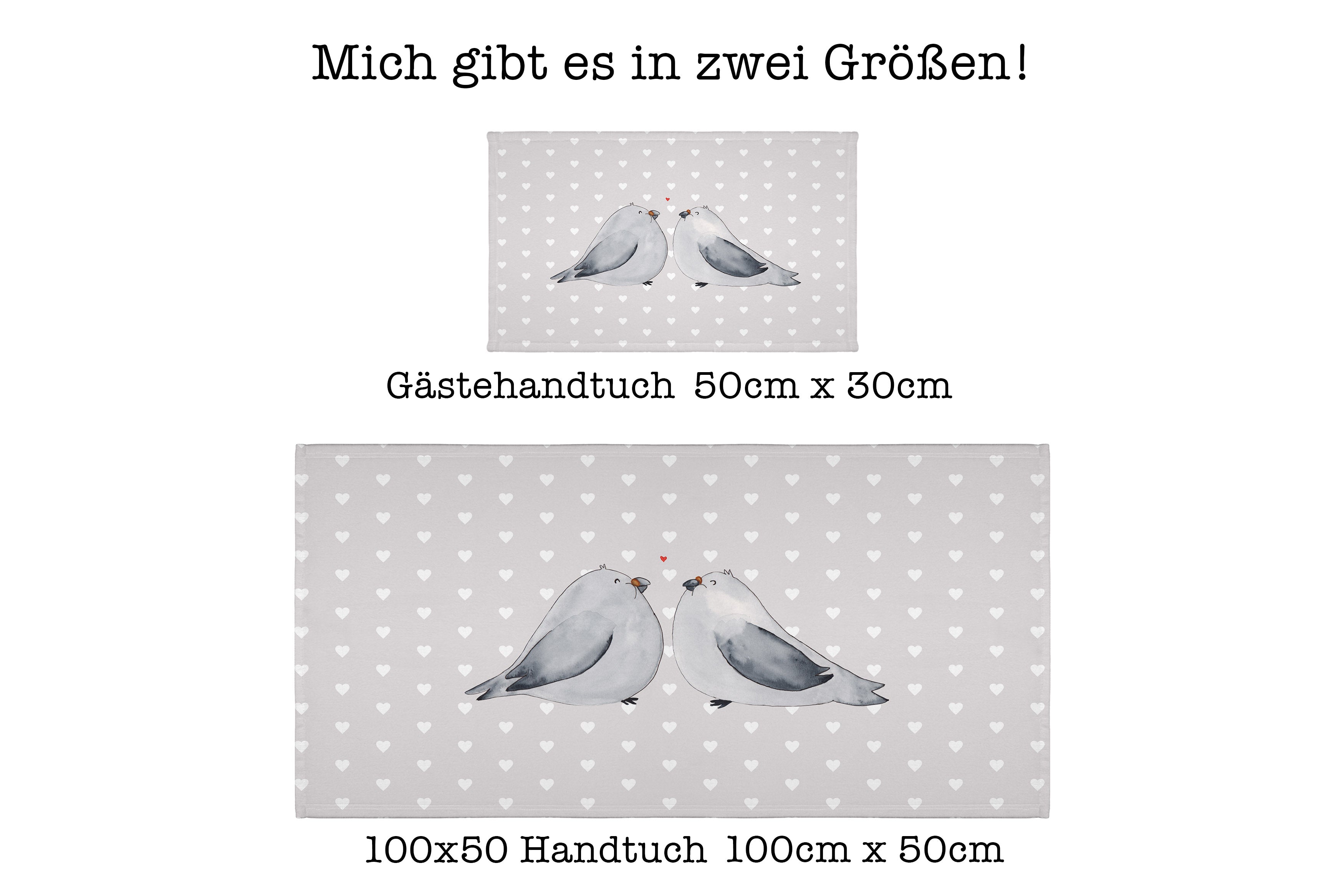 50 x 100 Handtuch Turteltauben Liebe - mit Spruch - Weiß