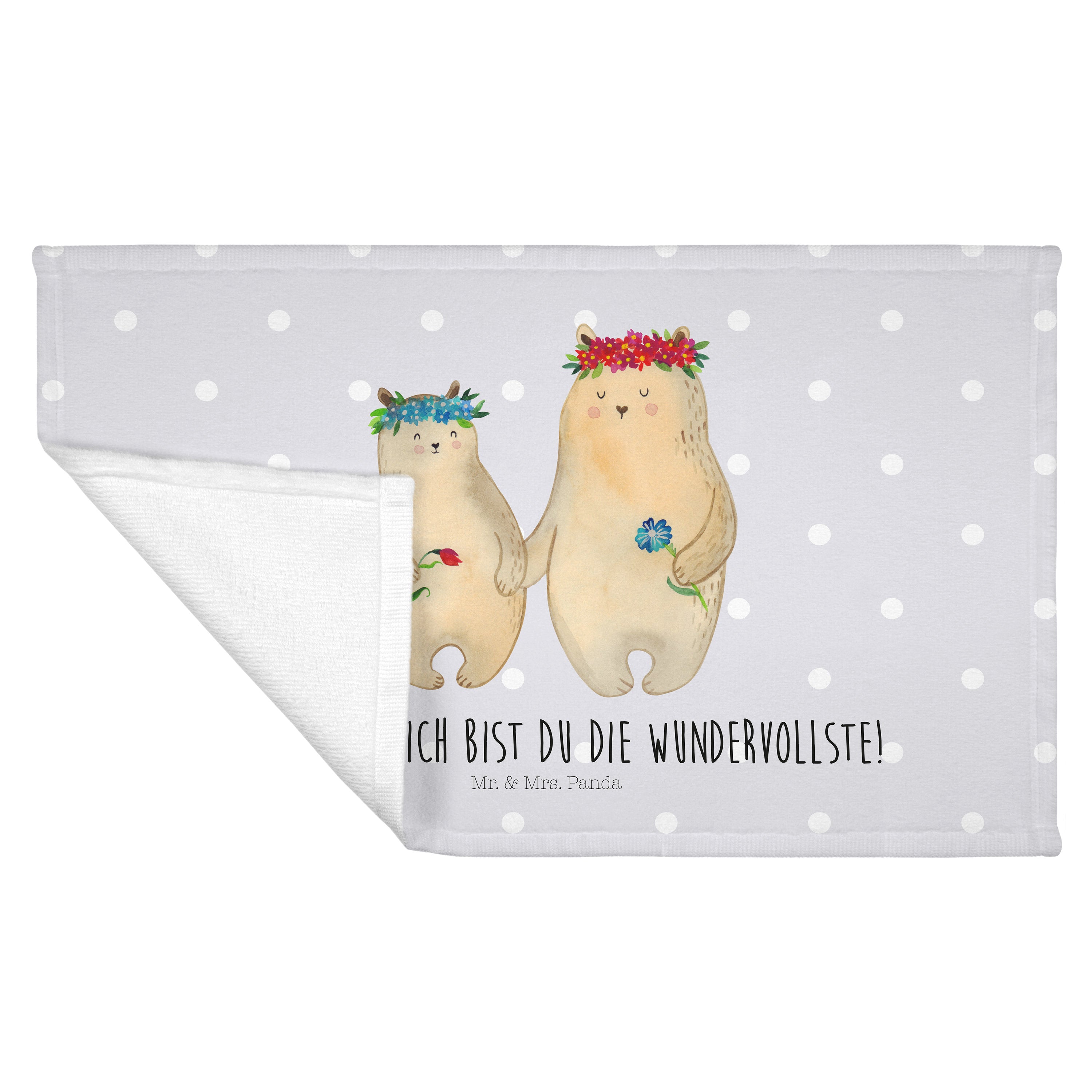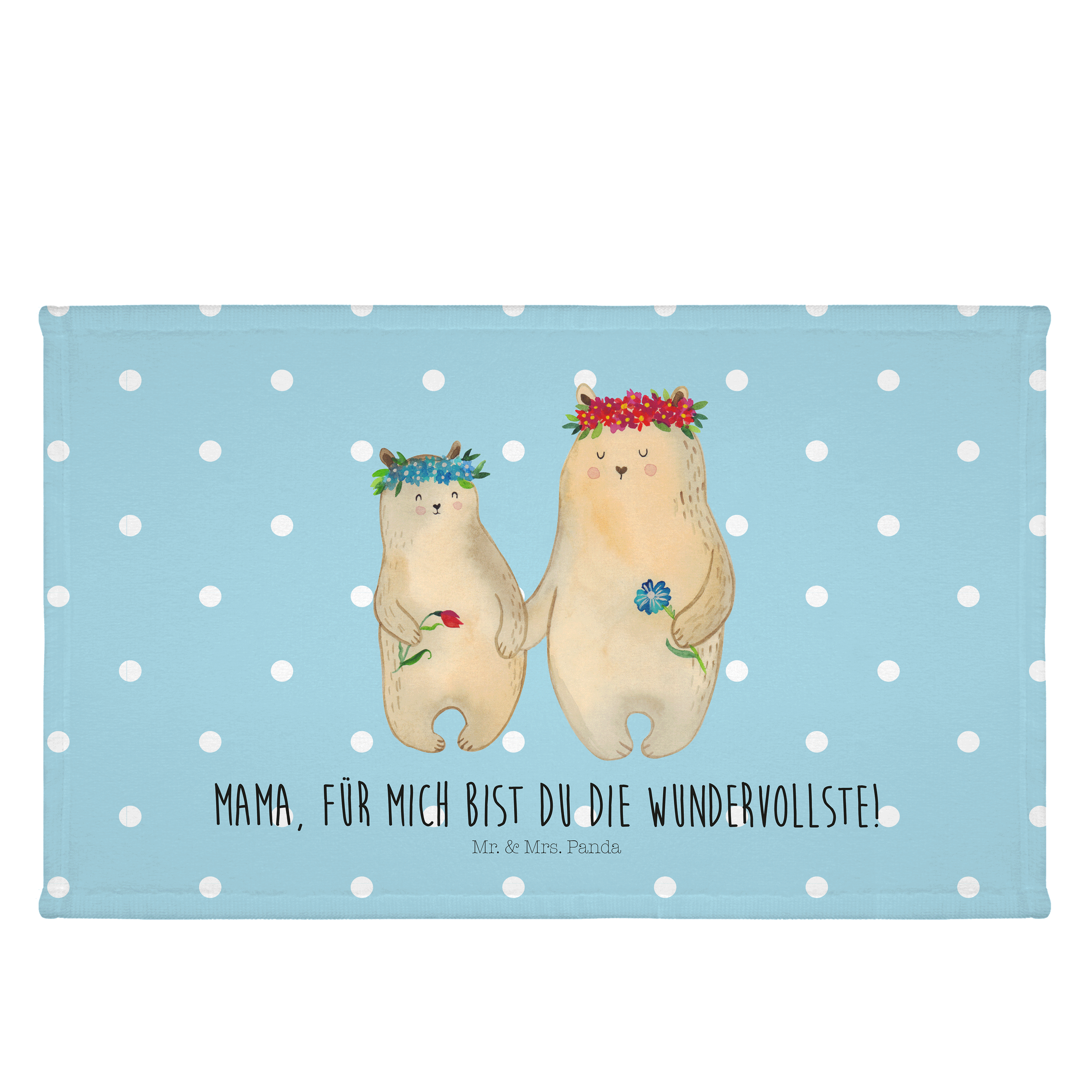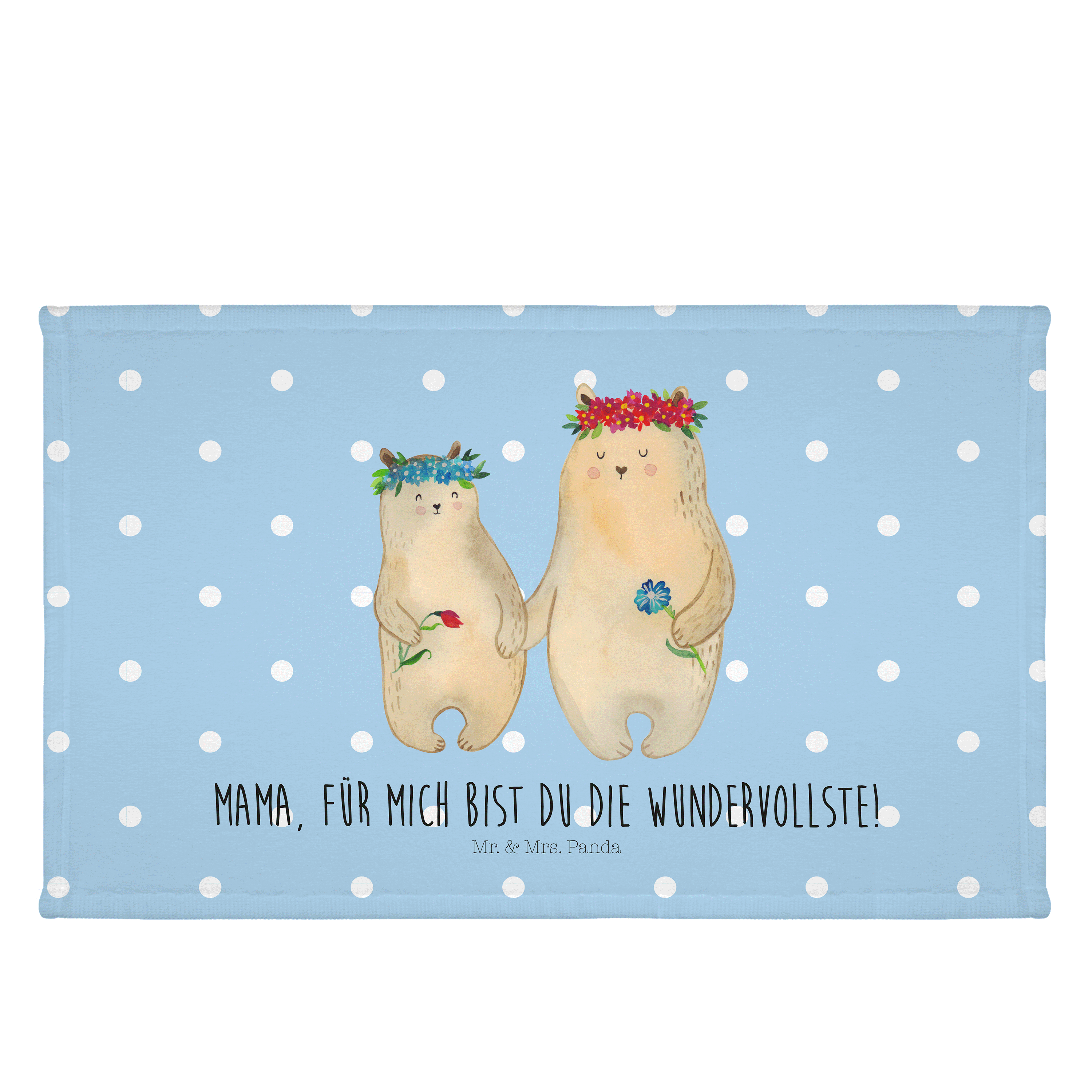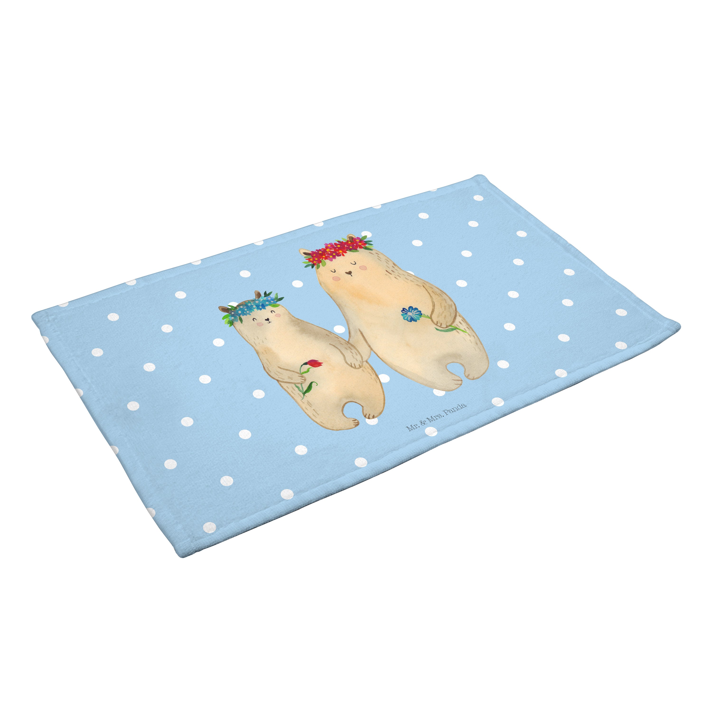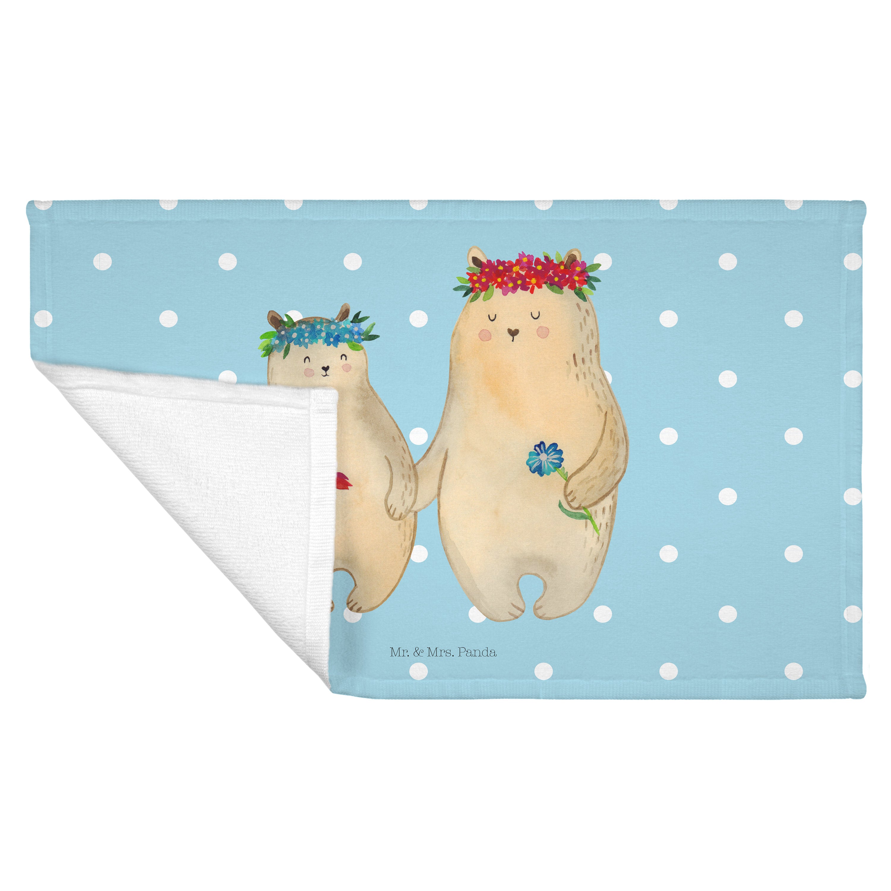 Gäste Handtuch Bären mit Blumenkranz - mit Spruch - Blau Pastell