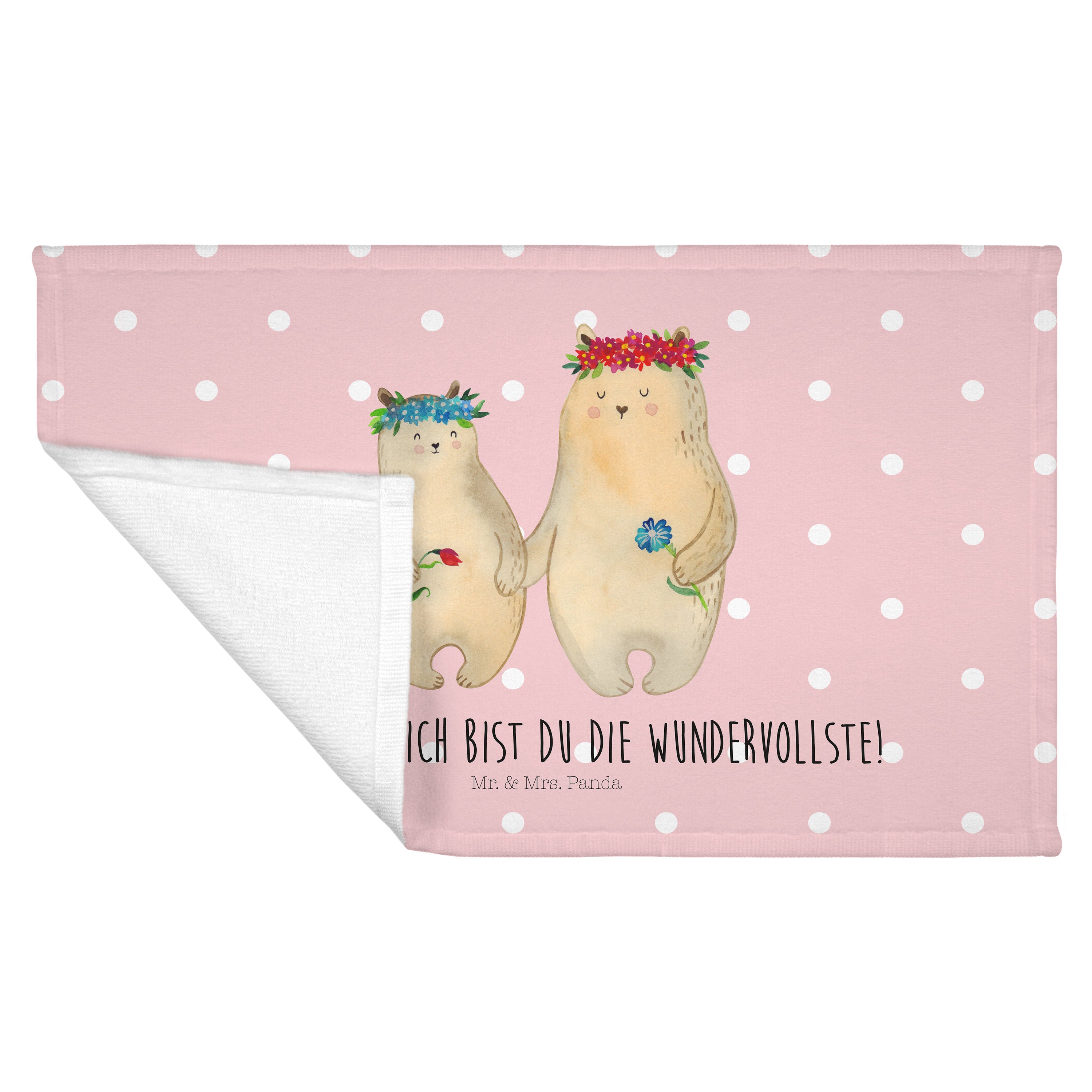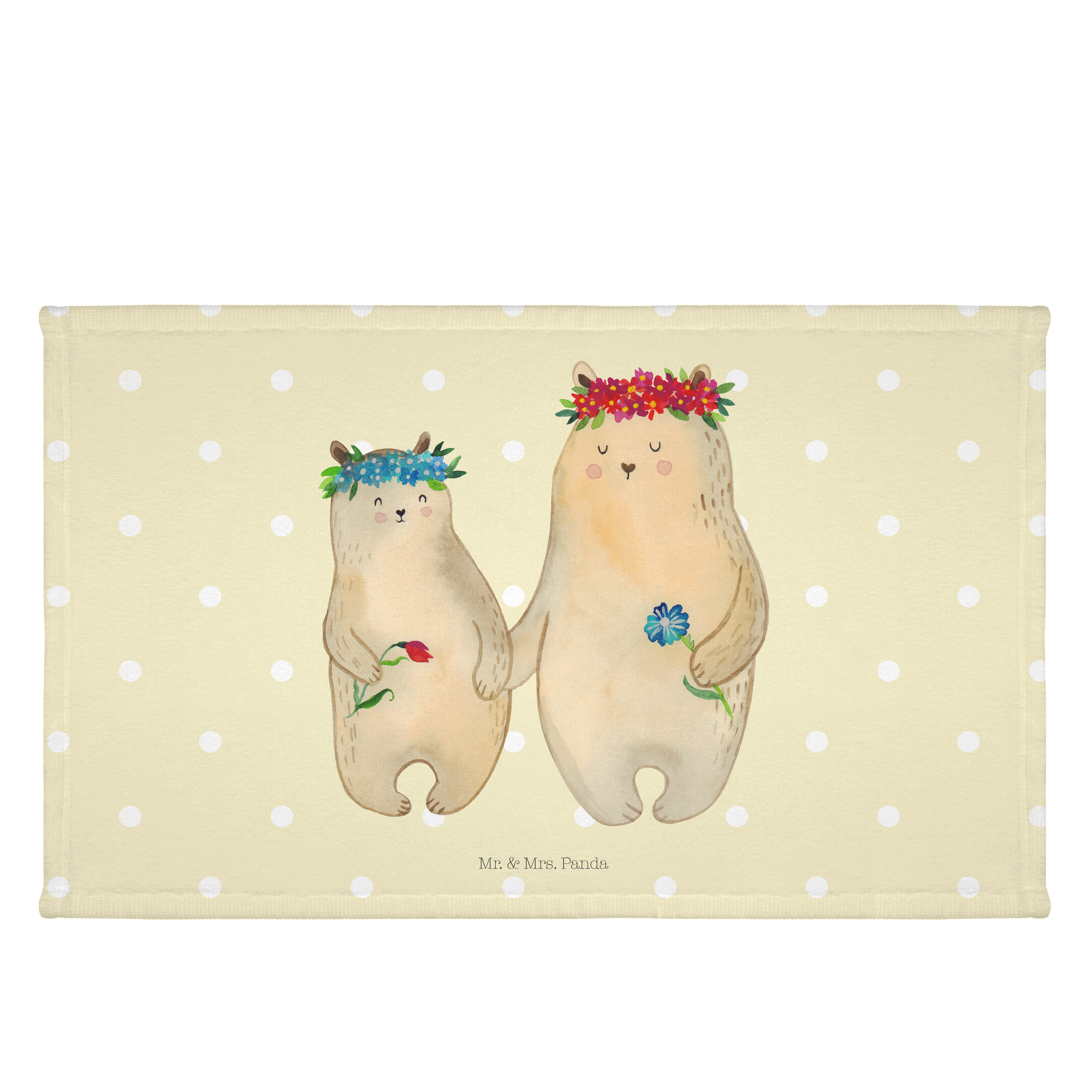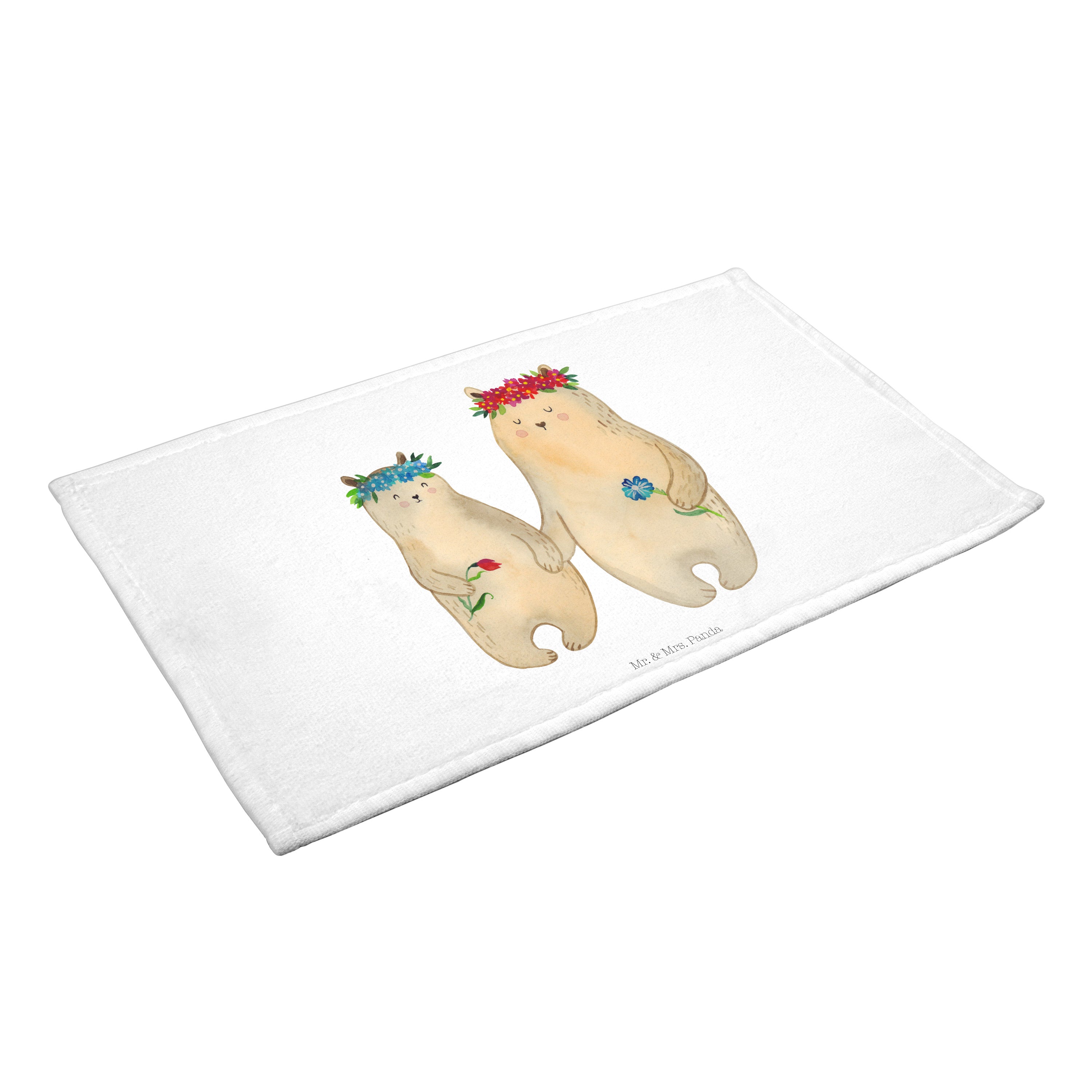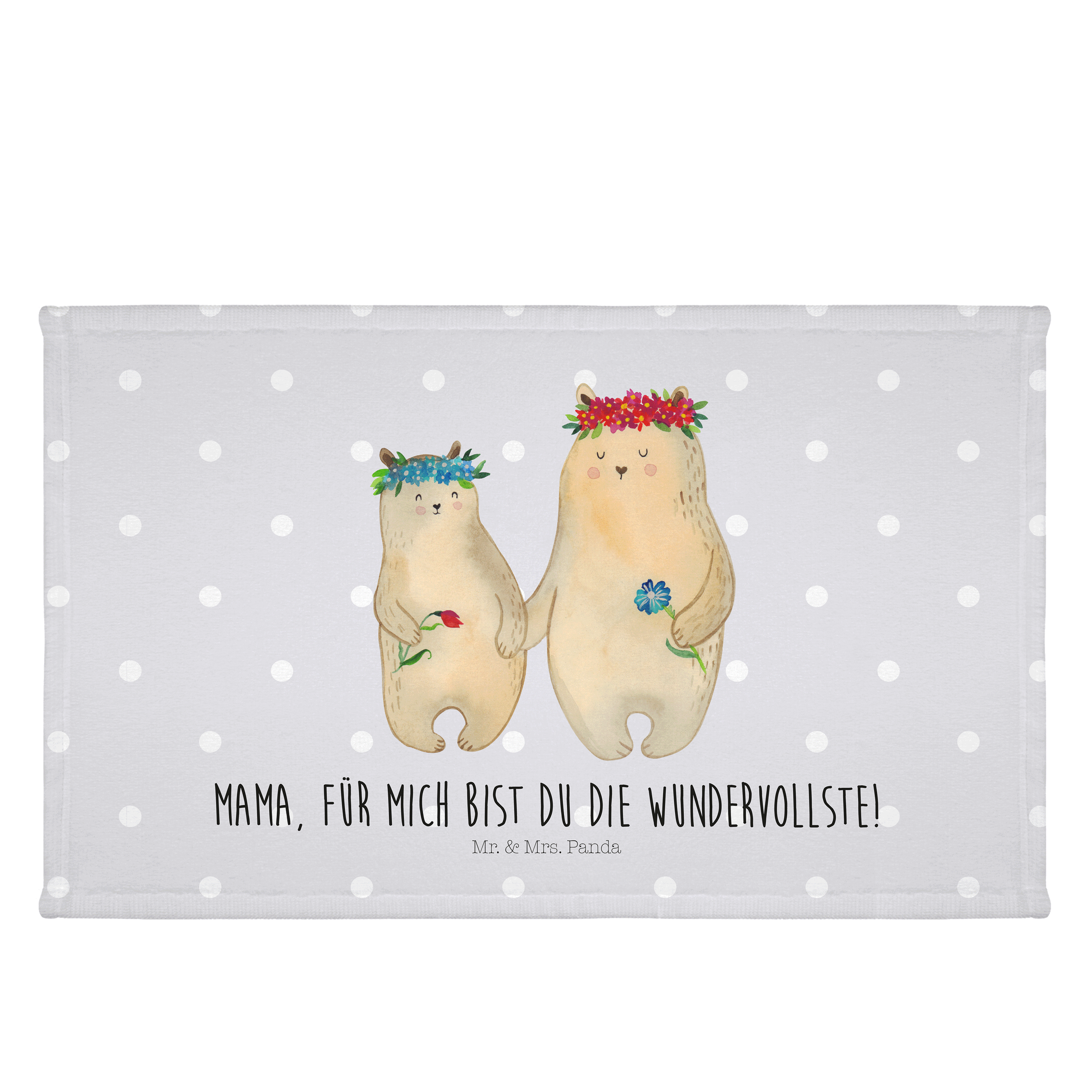 Gäste Handtuch Bären mit Blumenkranz - mit Spruch - Blau Pastell