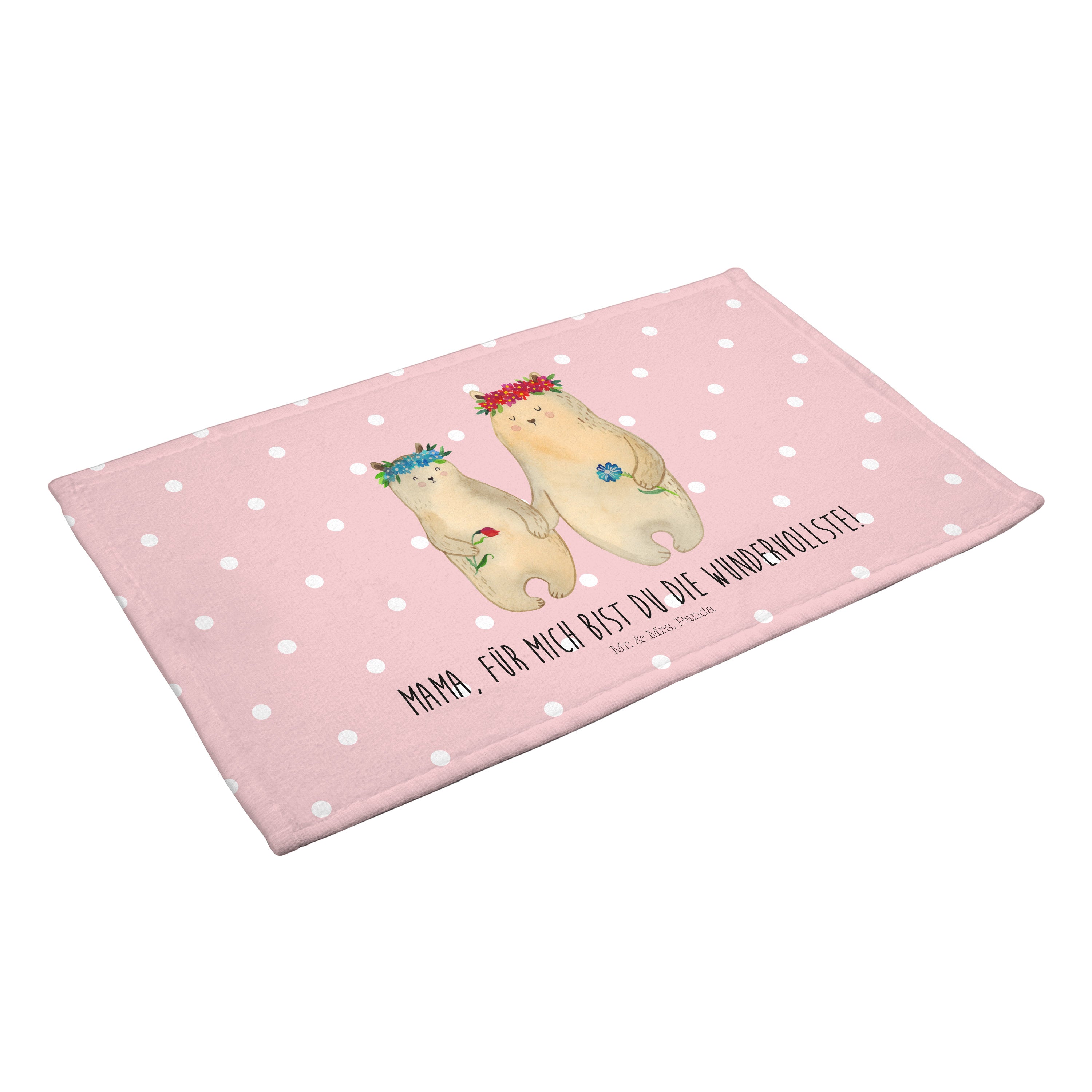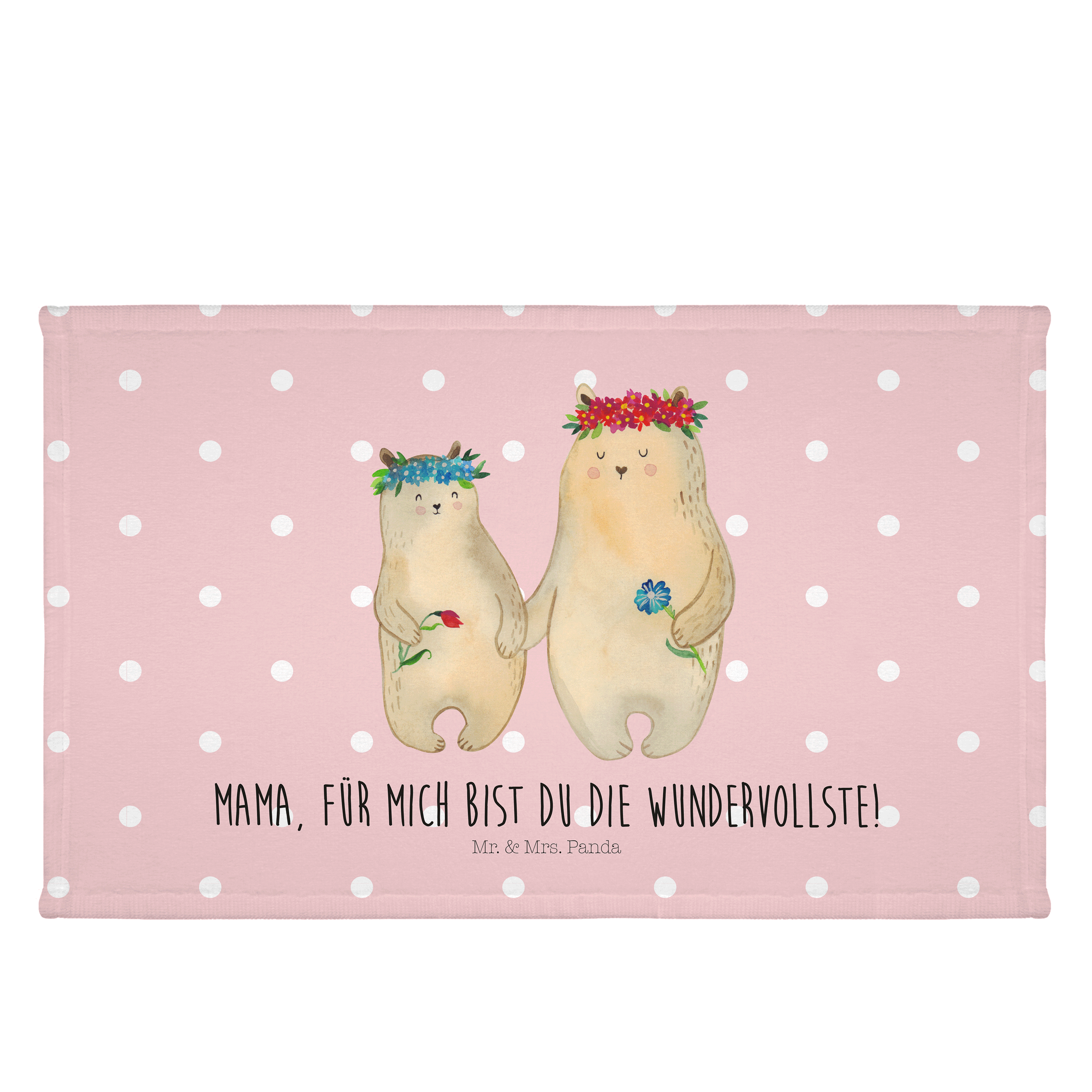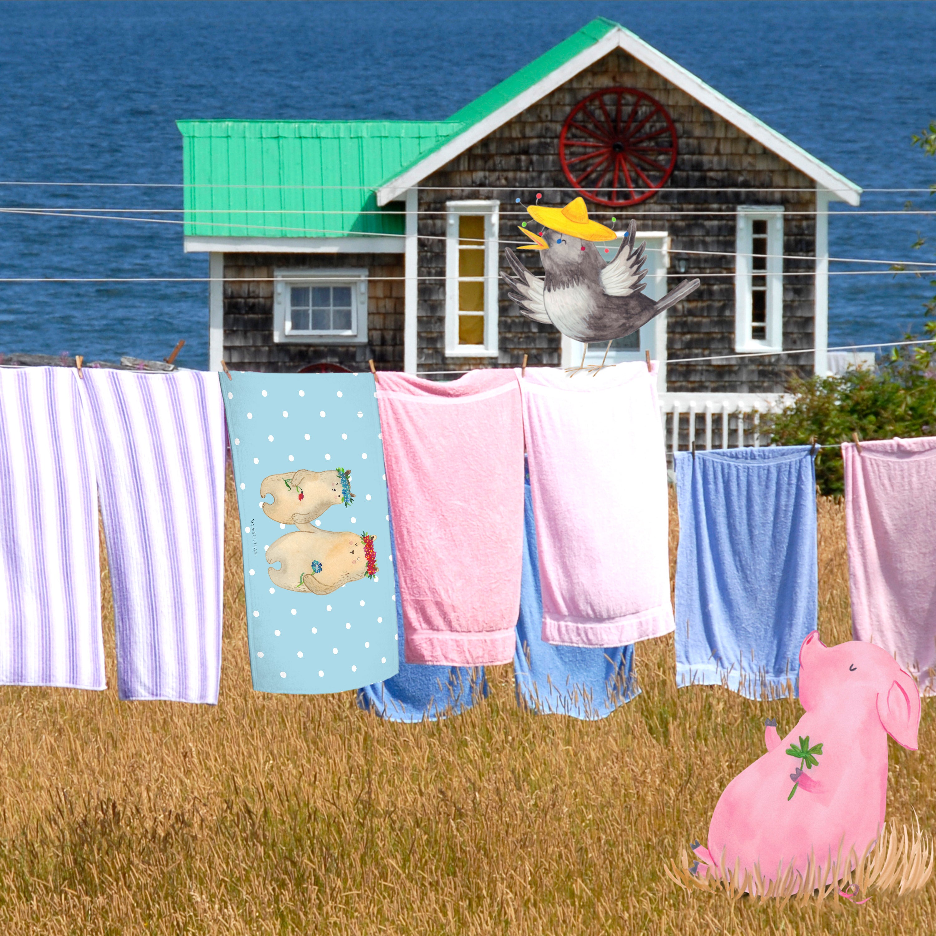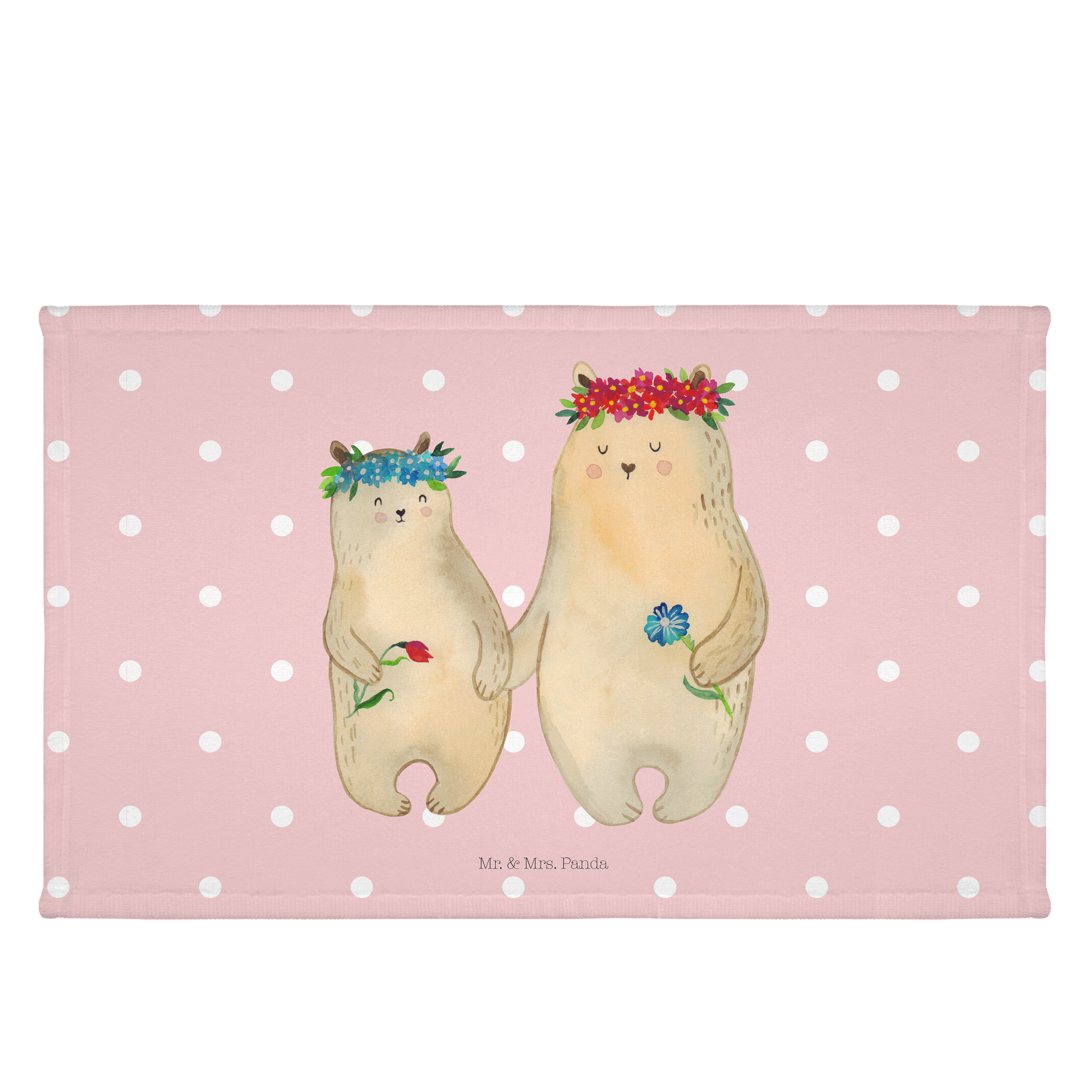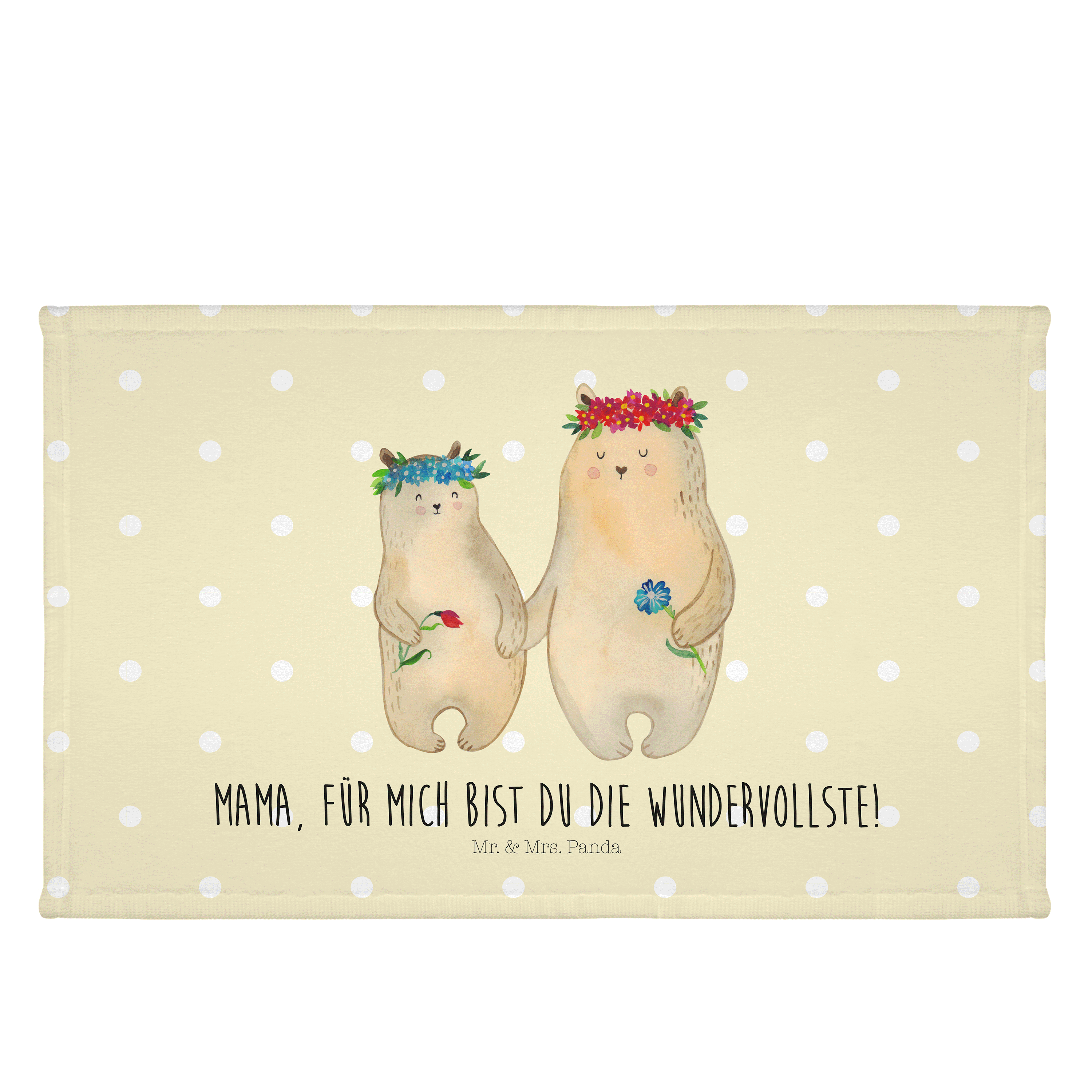 Gäste Handtuch Bären mit Blumenkranz - mit Spruch - Blau Pastell