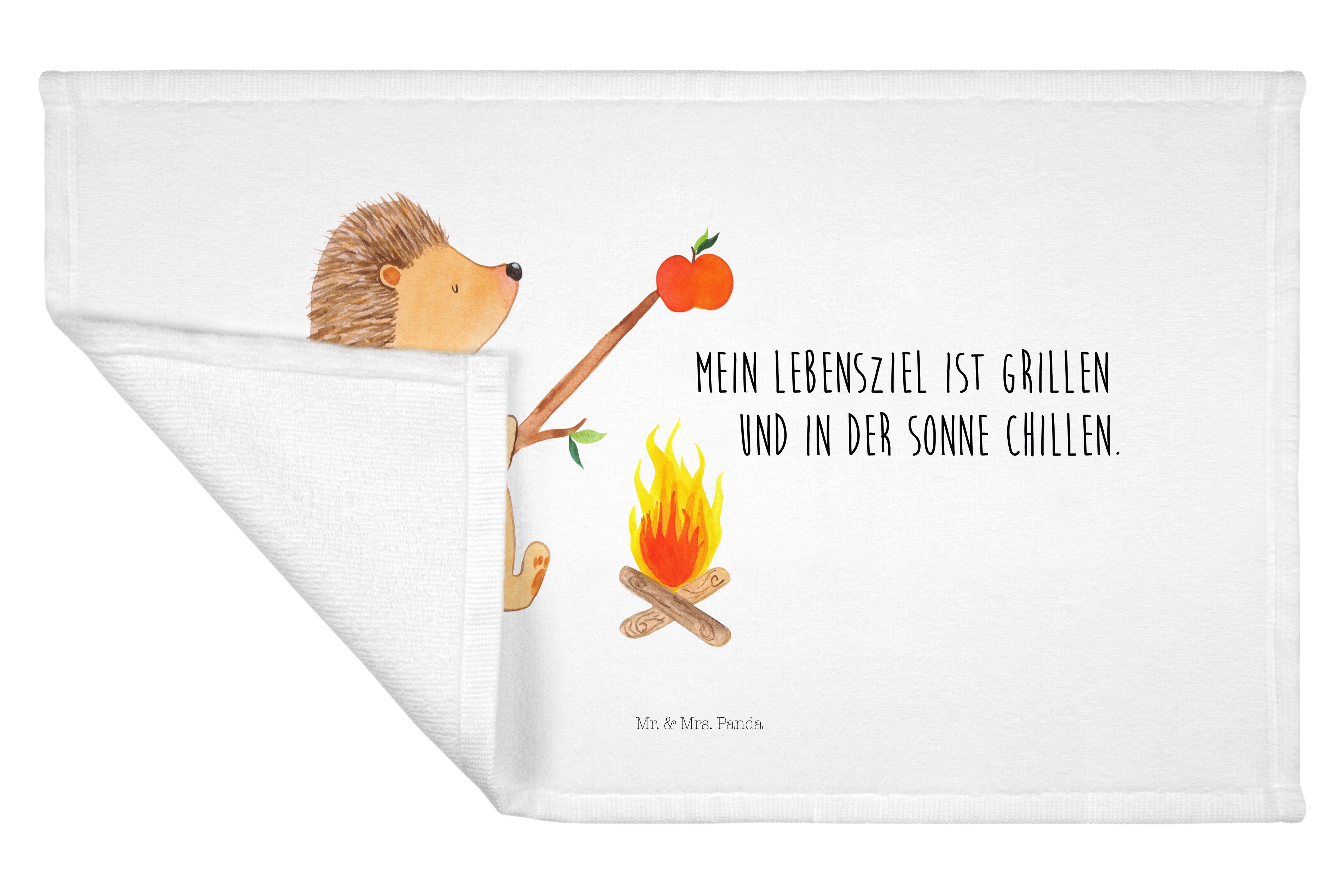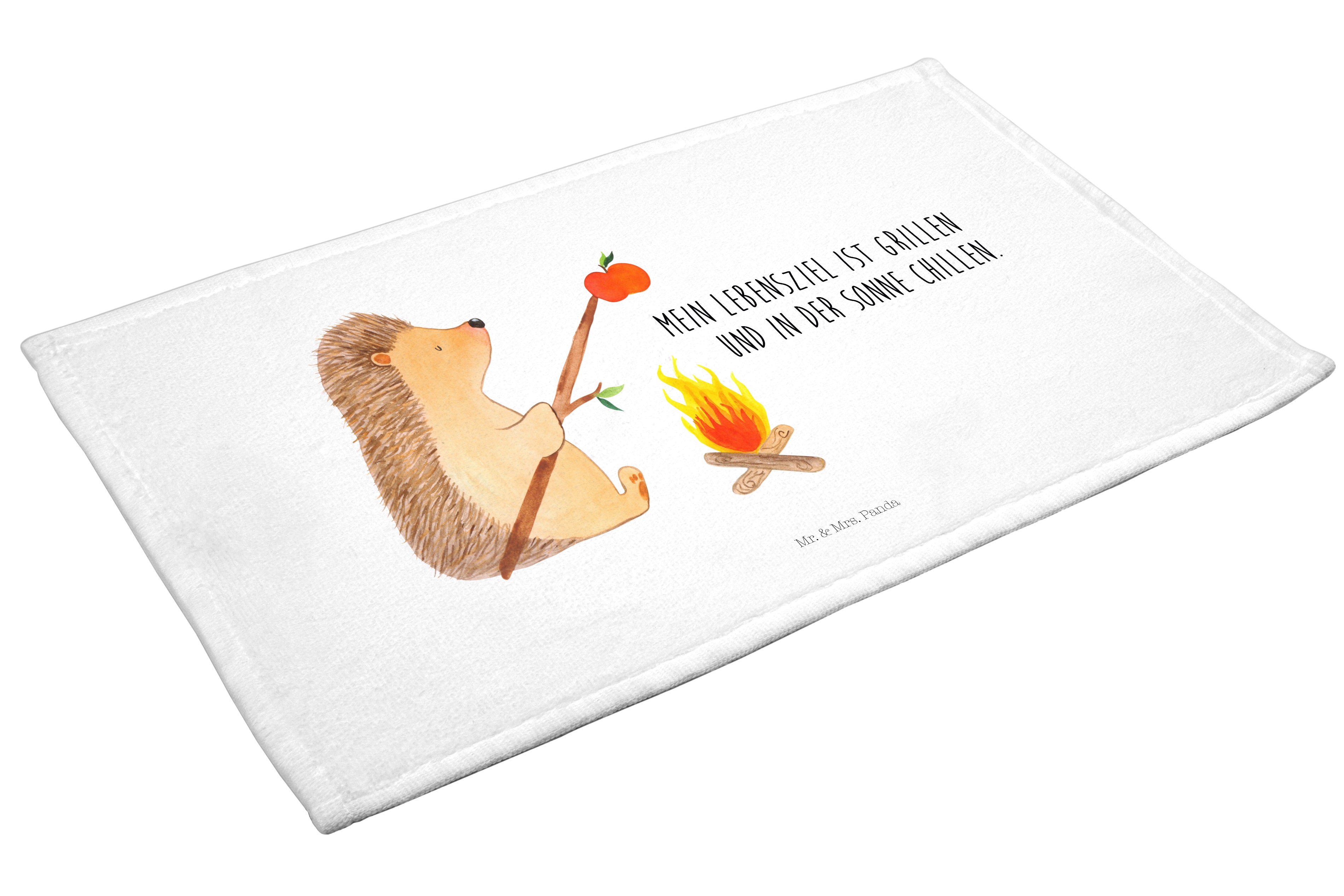 Gäste Handtuch Igel grillt - mit Spruch - Weiß