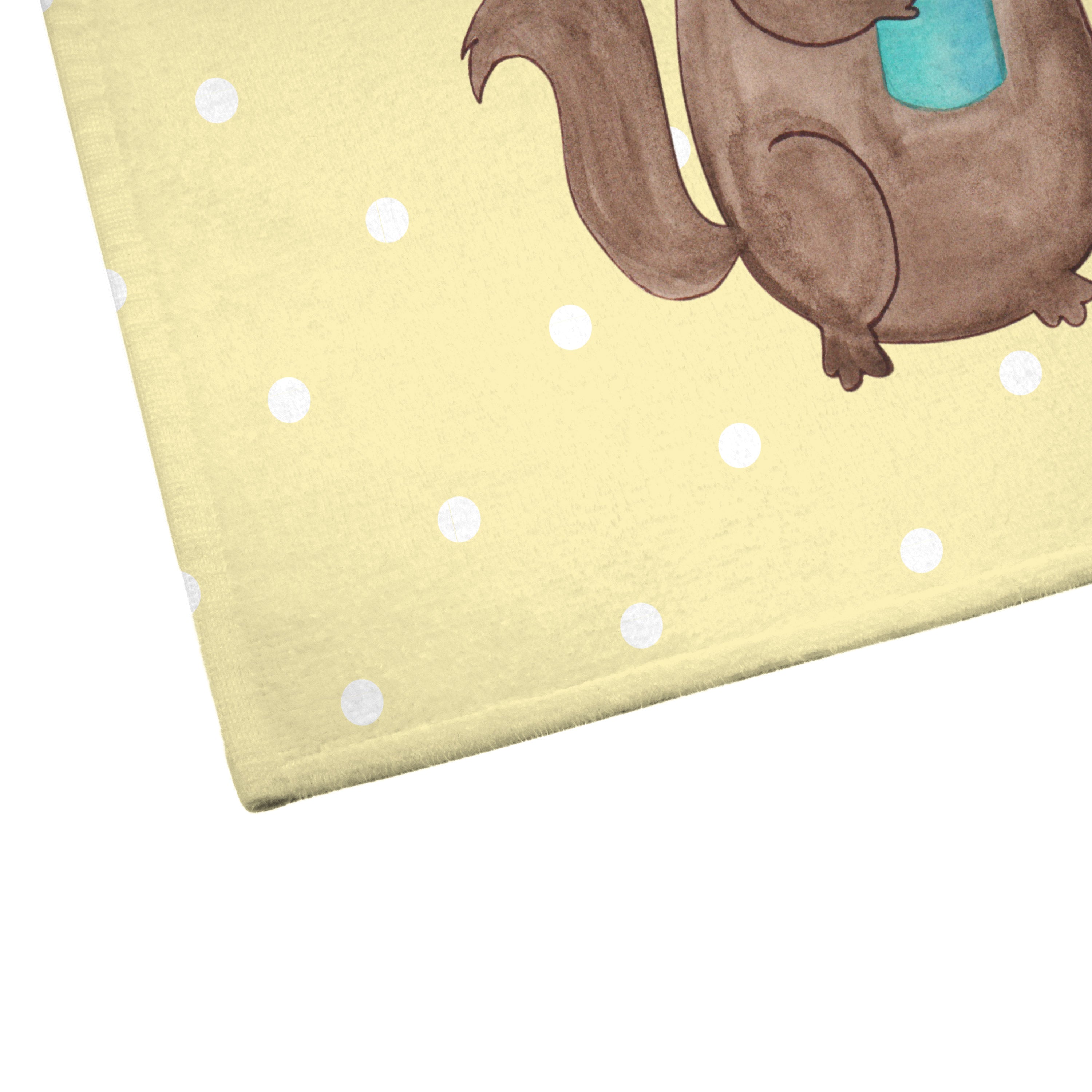 Gäste Handtuch Katze Dose - mit Spruch - Gelb Pastell