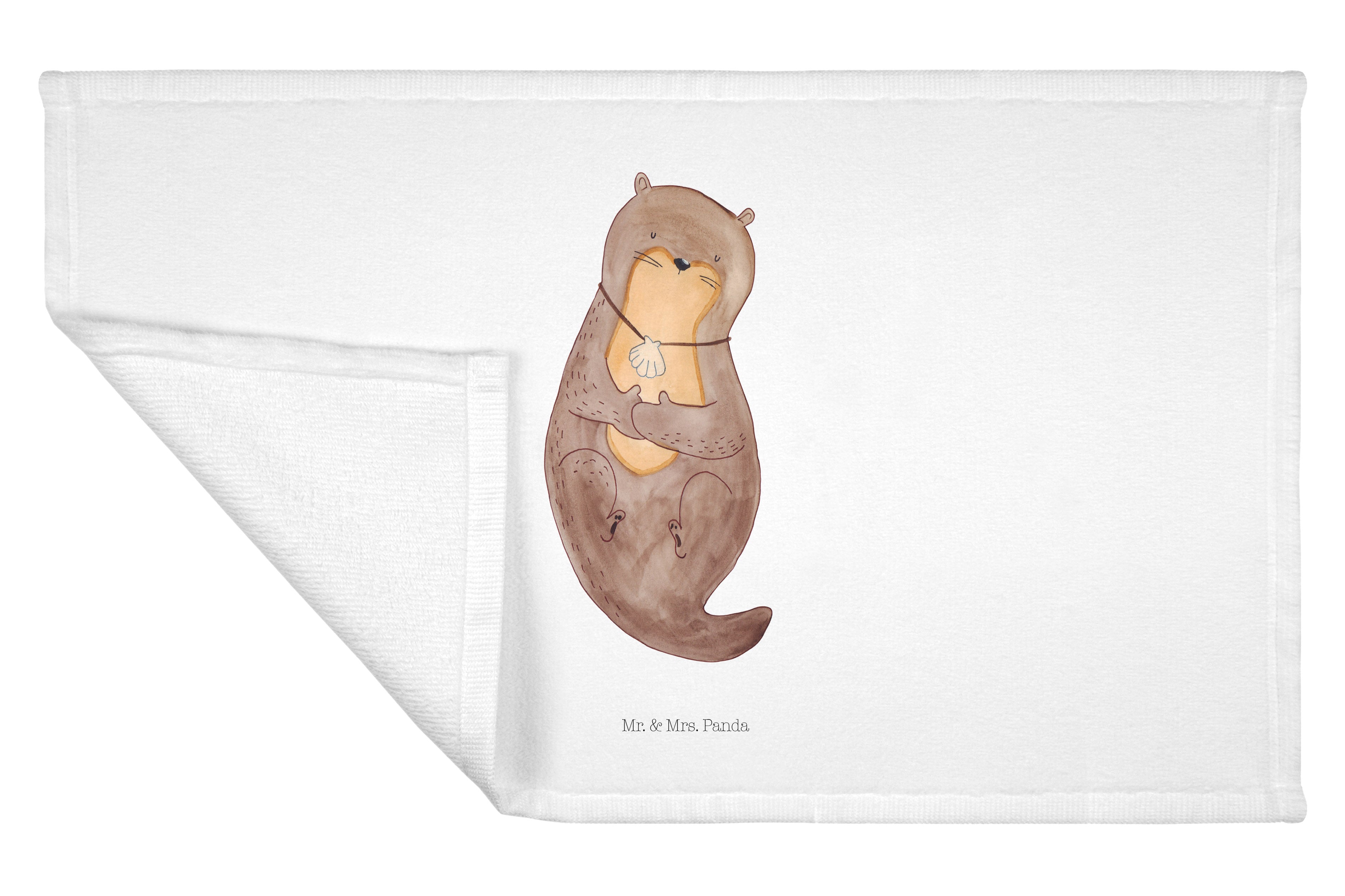 Gäste Handtuch Otter mit Muschelmedaillon - mit Spruch - Weiß