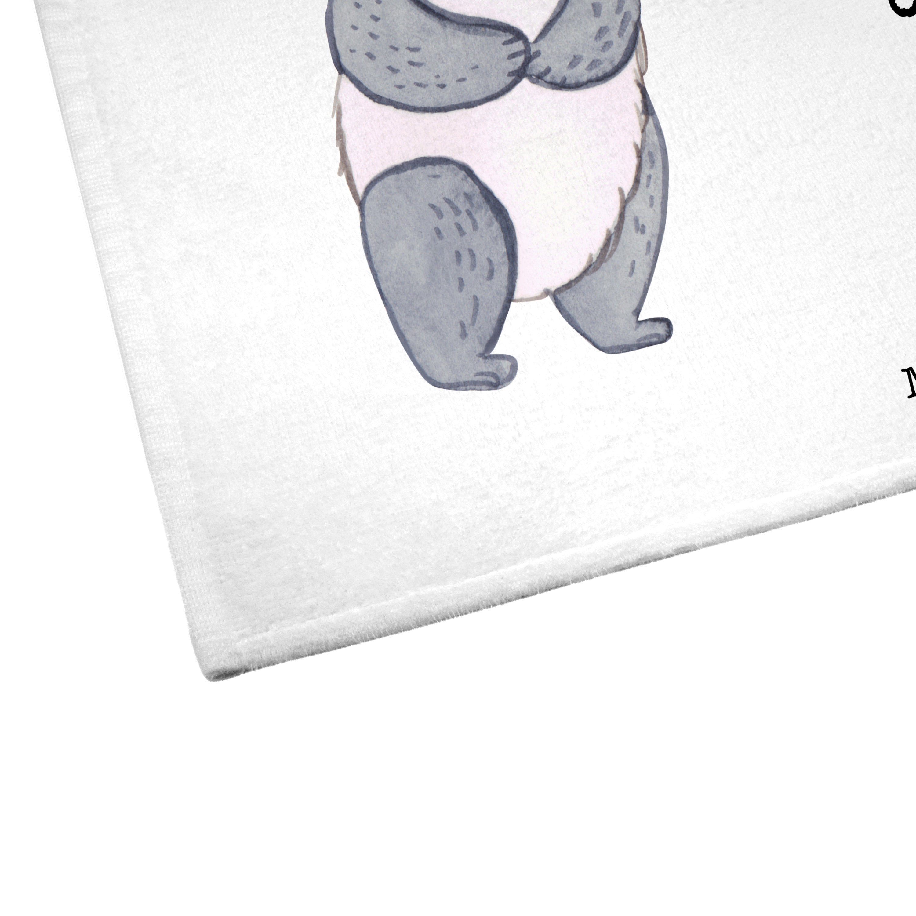 Ein kleines schönes Gästehandtuch von Mr. & Mrs. Panda. Es eignet sich perfekt als kleines Handtuch für Gäste, als Handtuch für die Hände oder auch als Handtuch für Kinder. Das Handtuch besteht überwiegend aus Baumwolle und ist wunderbar weich und saugstark. Es ist definitiv ein Blickfang im Bad oder im Gäste WC.