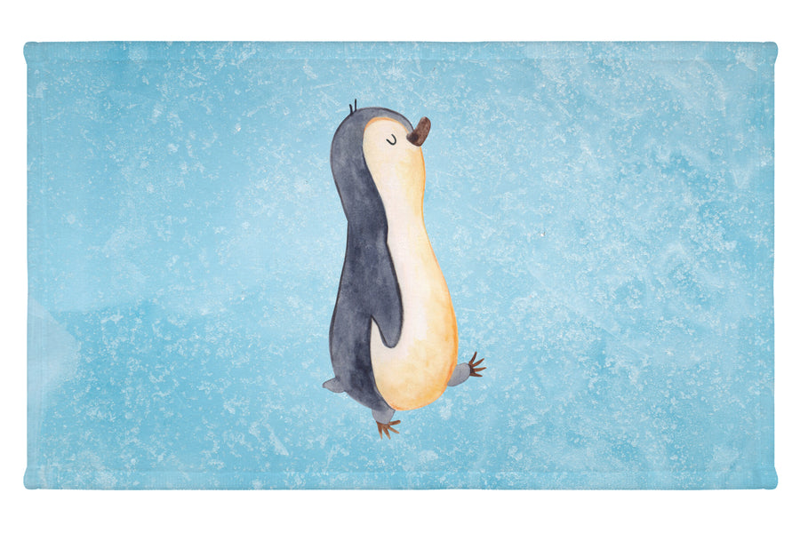 Gäste Handtuch Pinguin marschierend - ohne Spruch - Eisblau