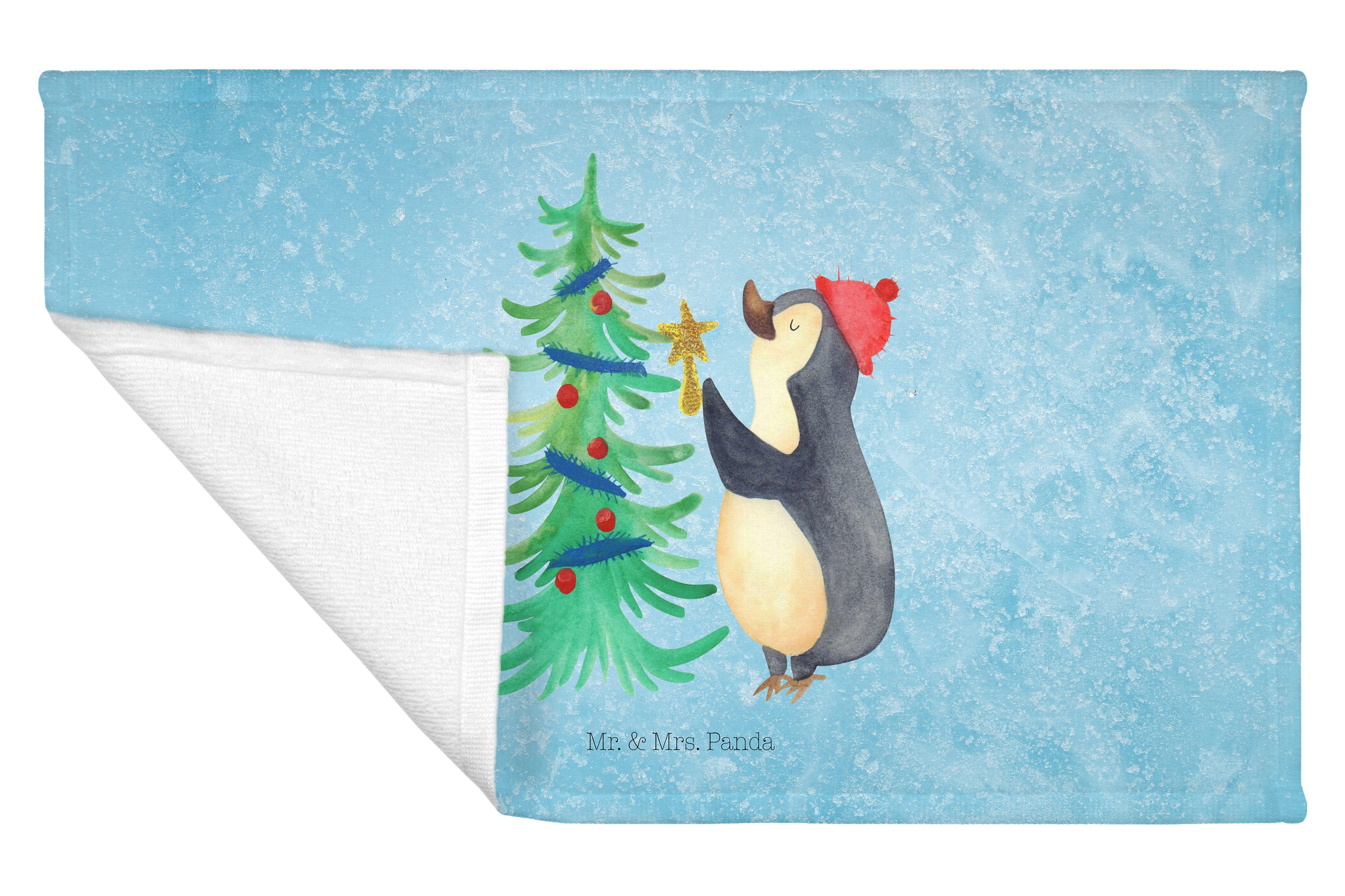 Gäste Handtuch Pinguin Weihnachtsbaum - mit Spruch - Eisblau