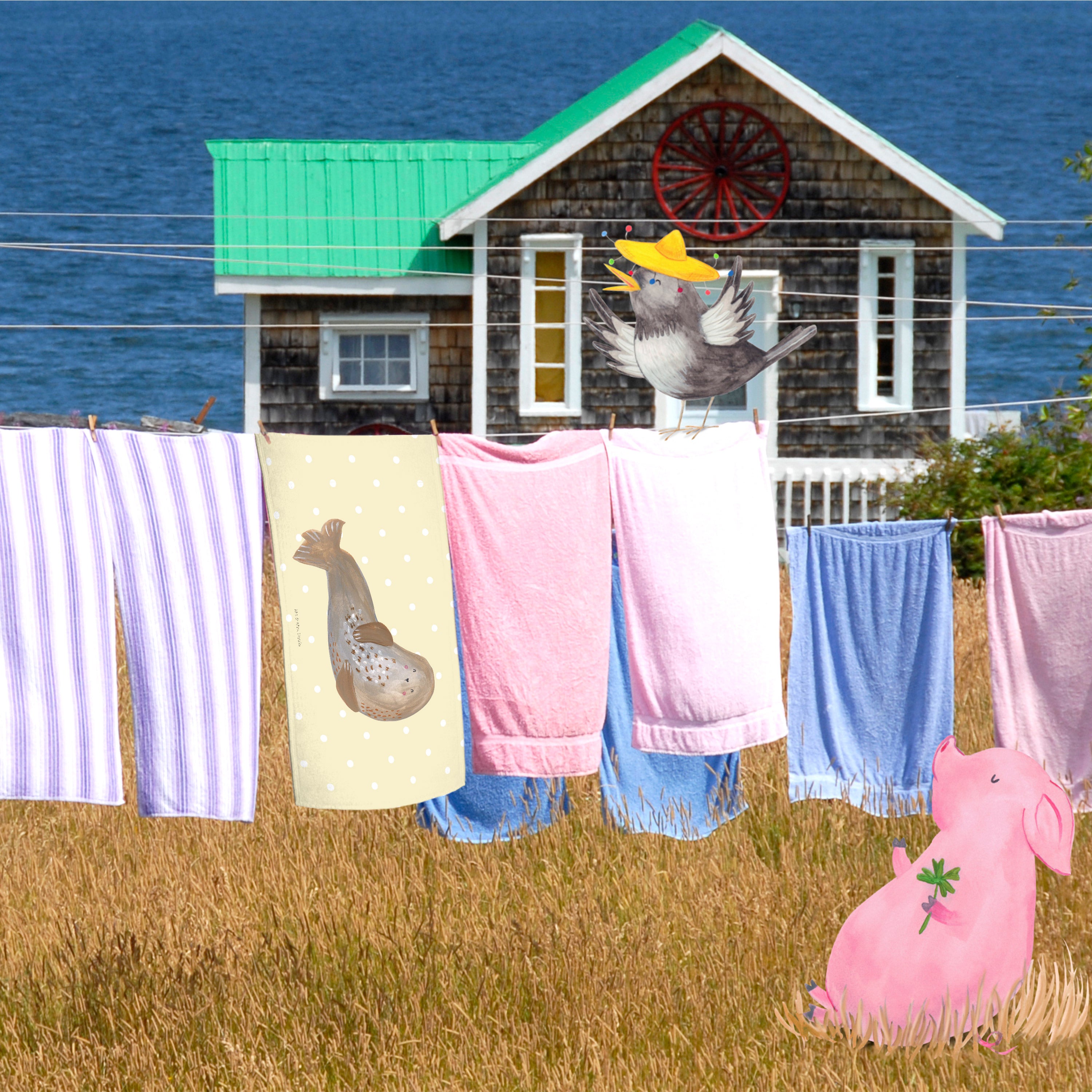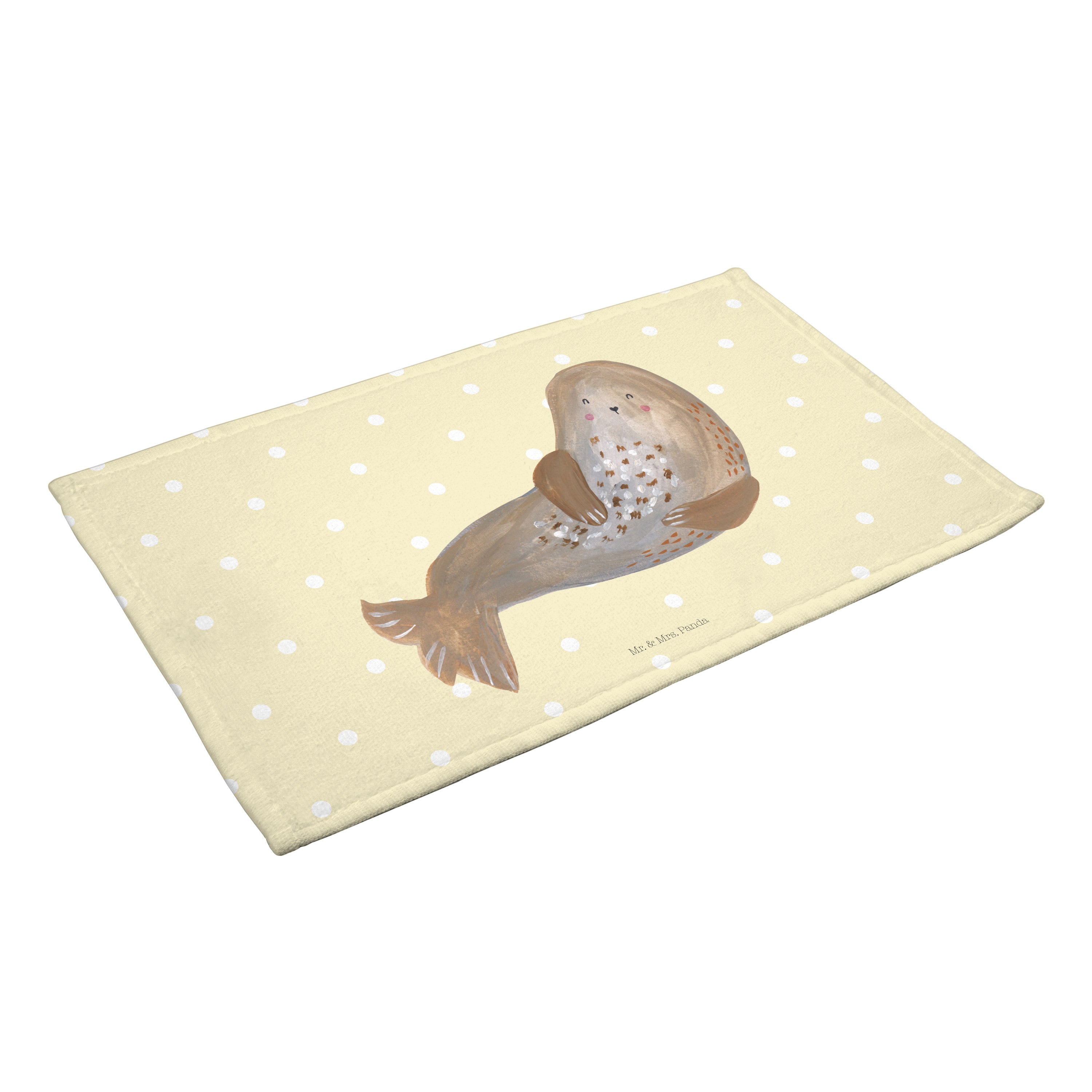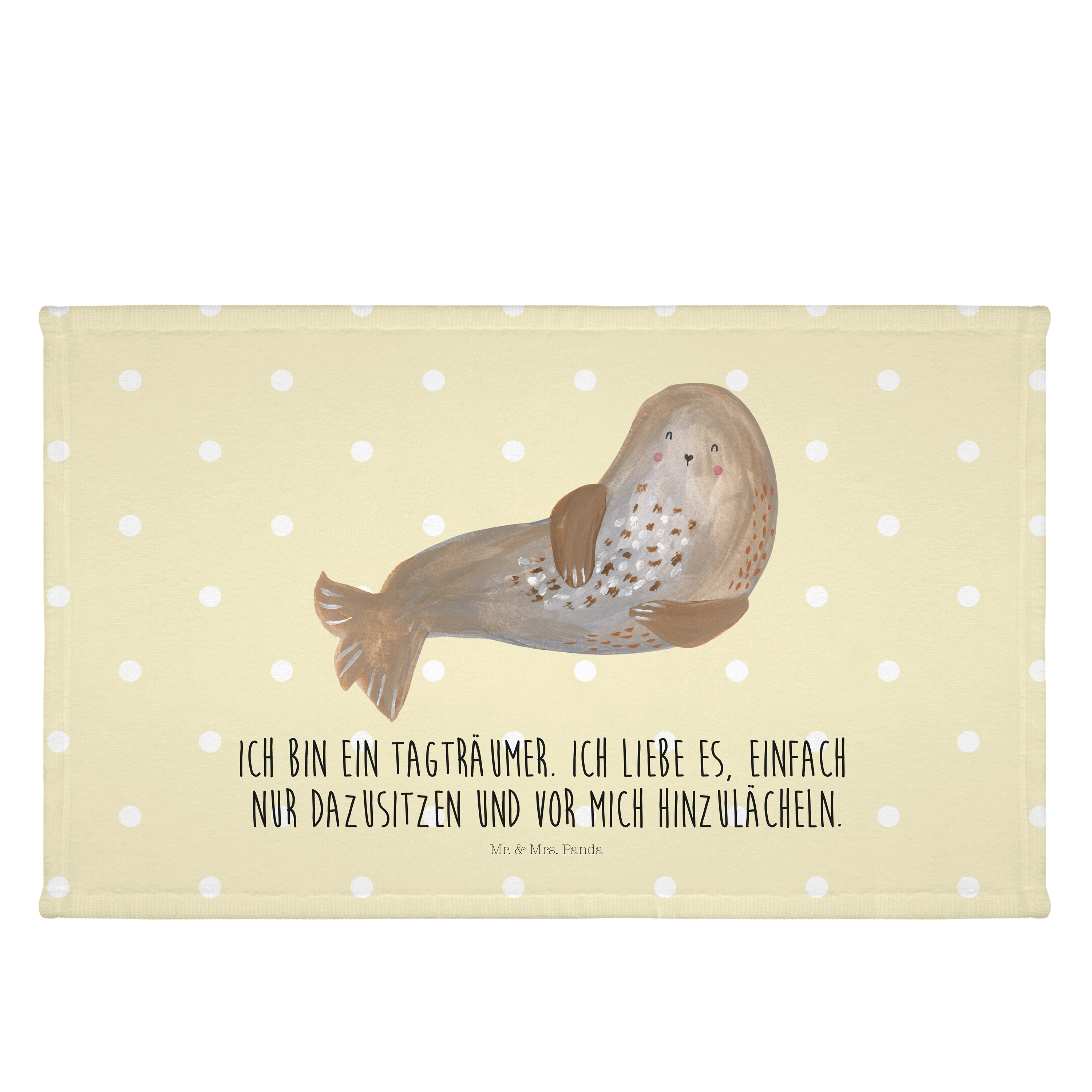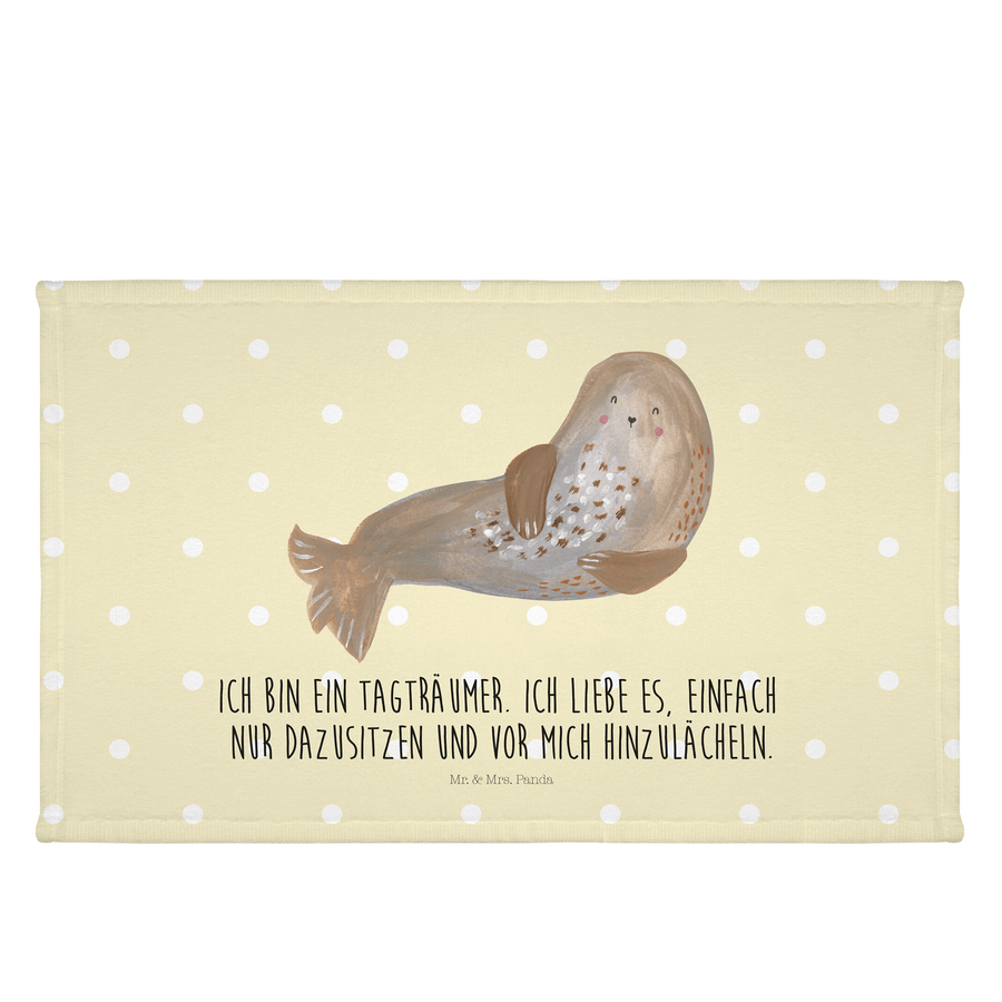 Gäste Handtuch Robbe lachend - mit Spruch - Gelb Pastell