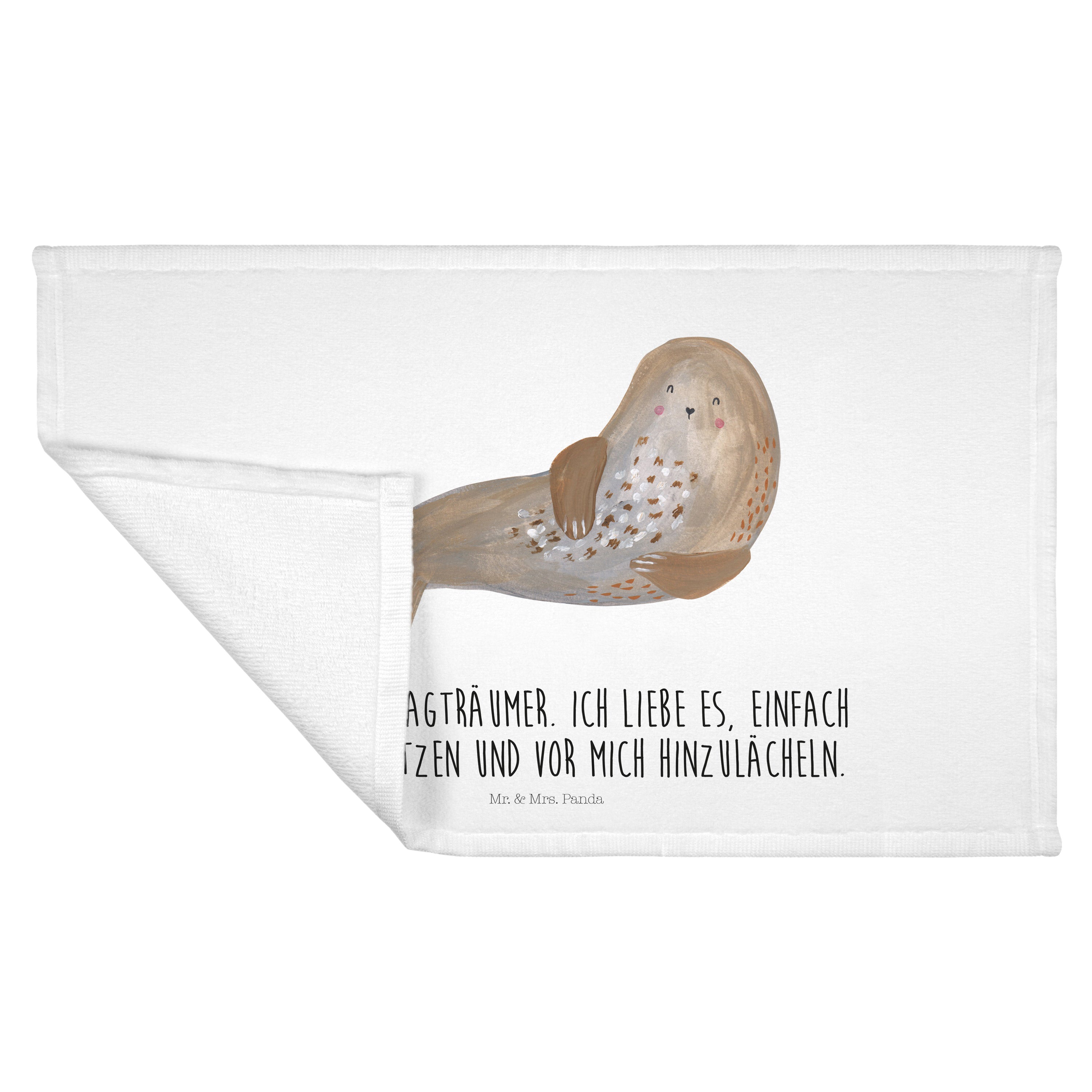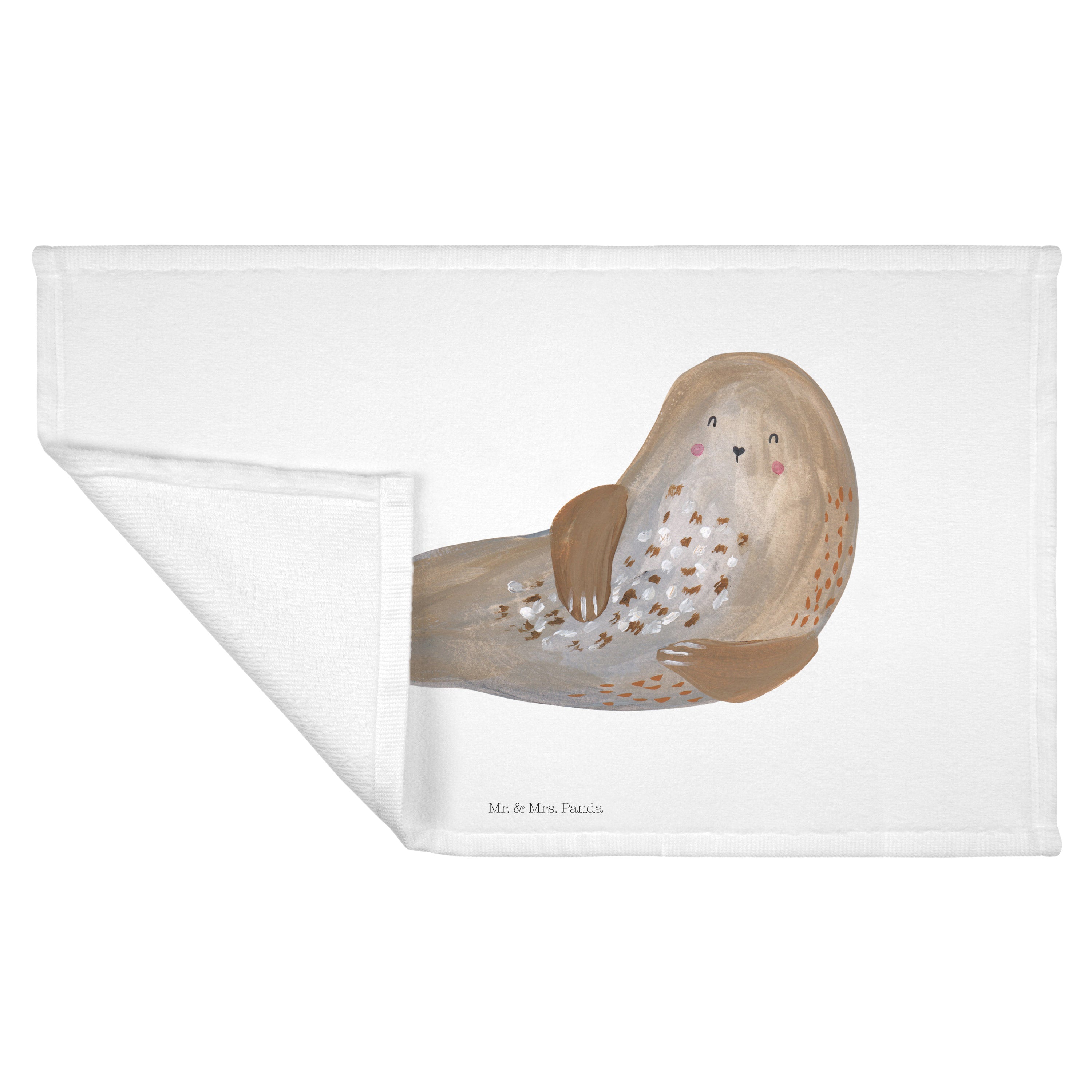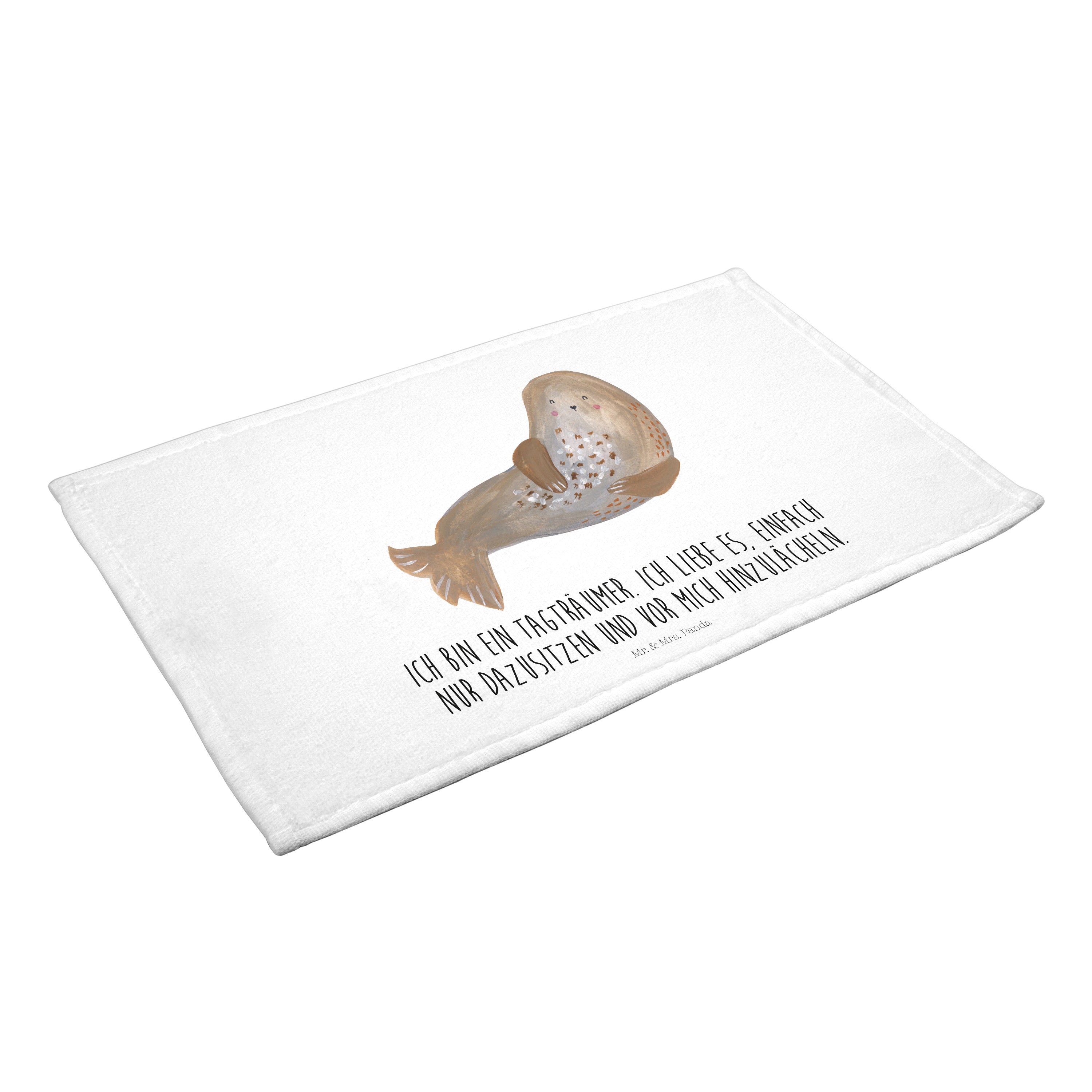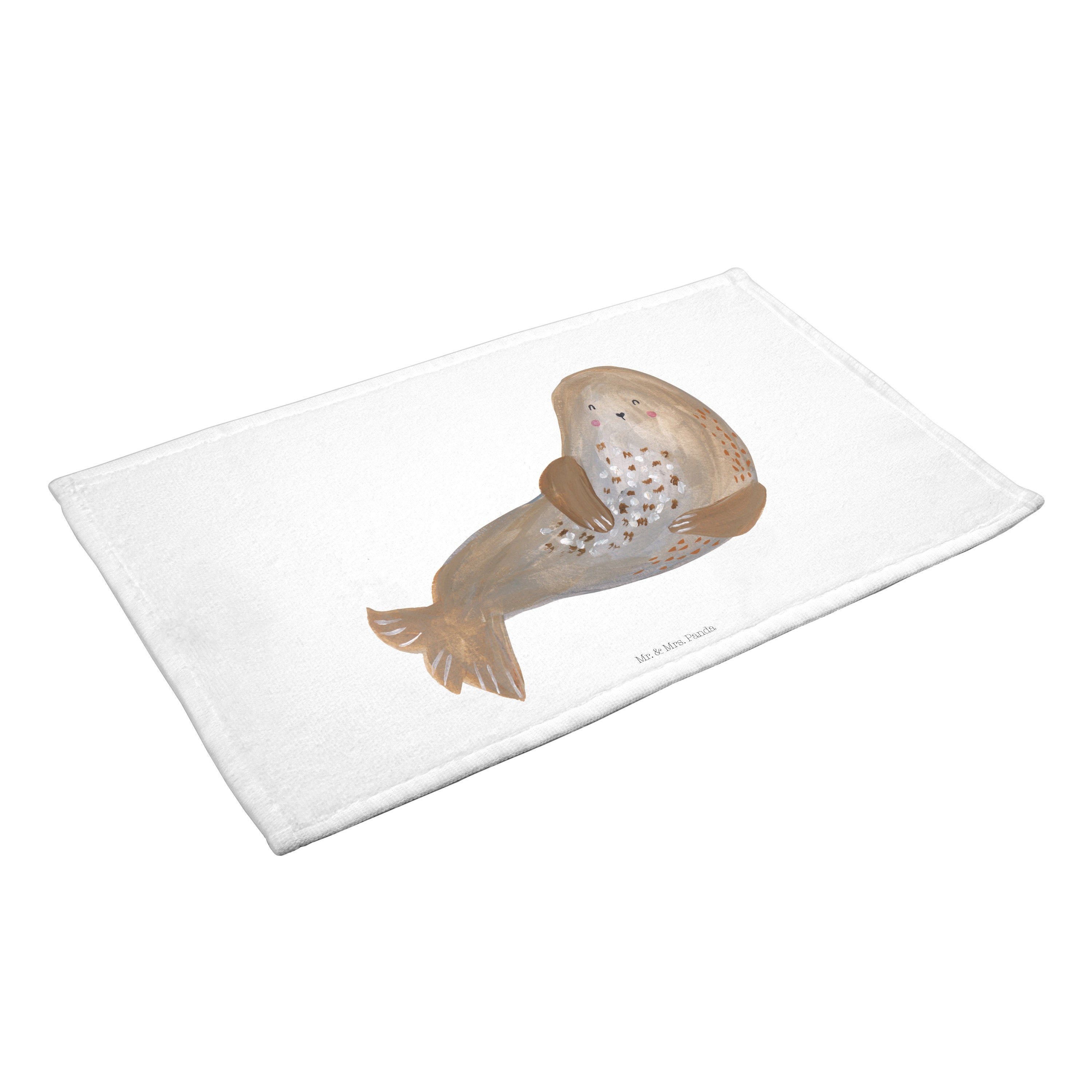 Gäste Handtuch Robbe lachend - mit Spruch - Gelb Pastell