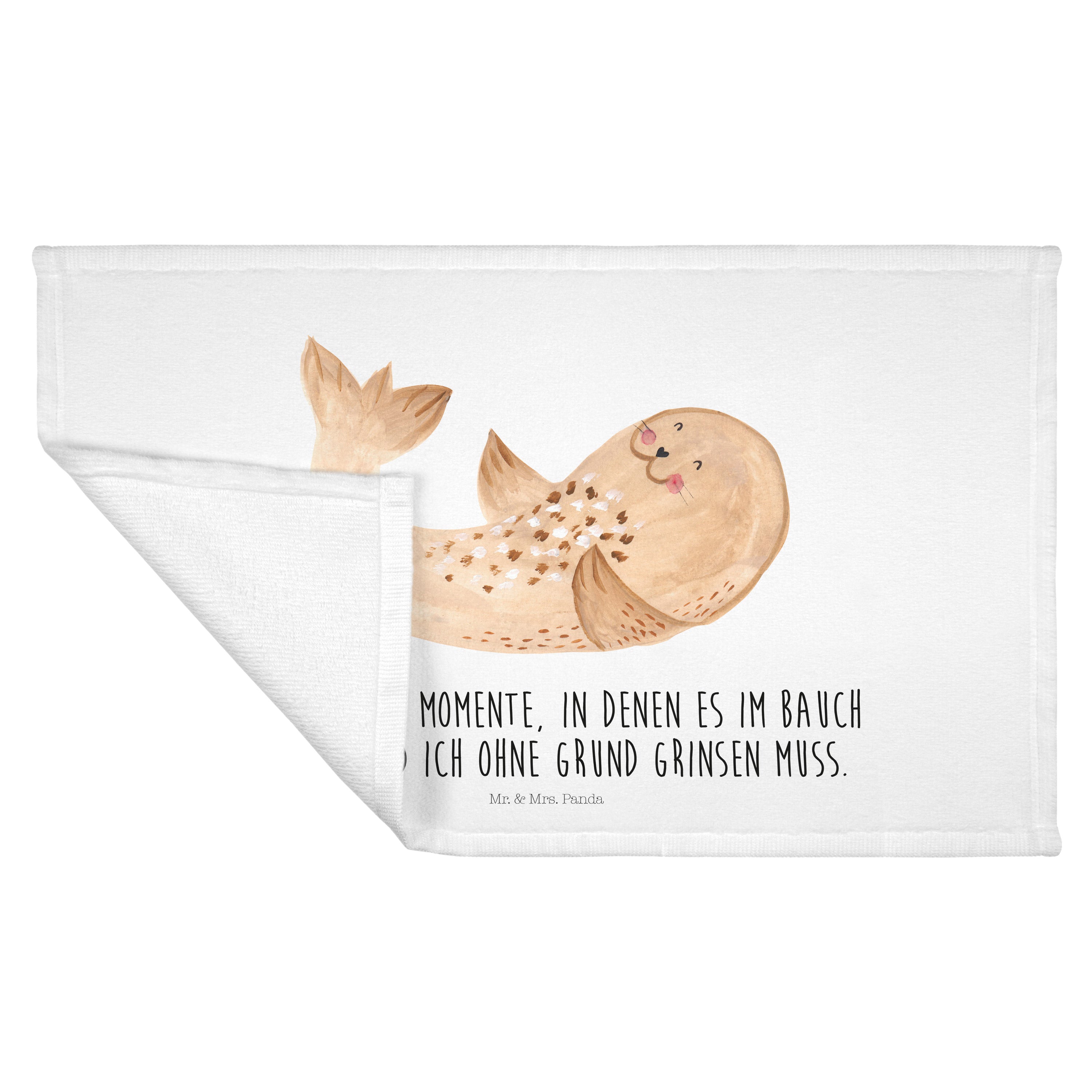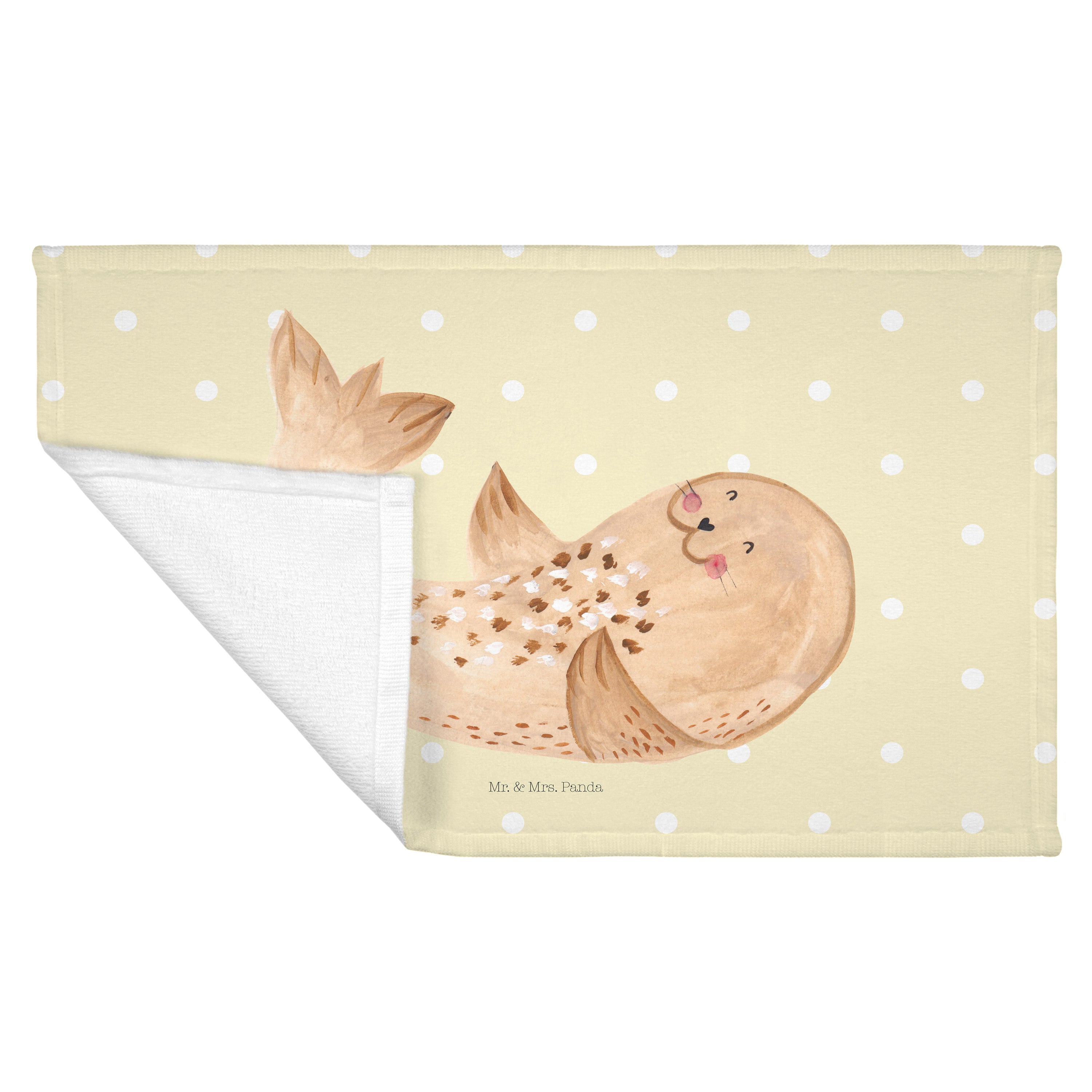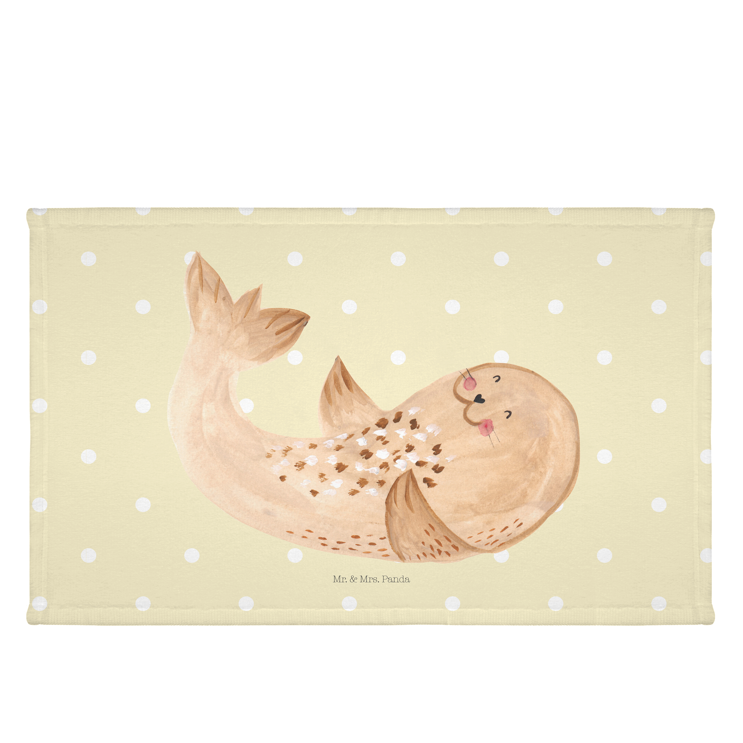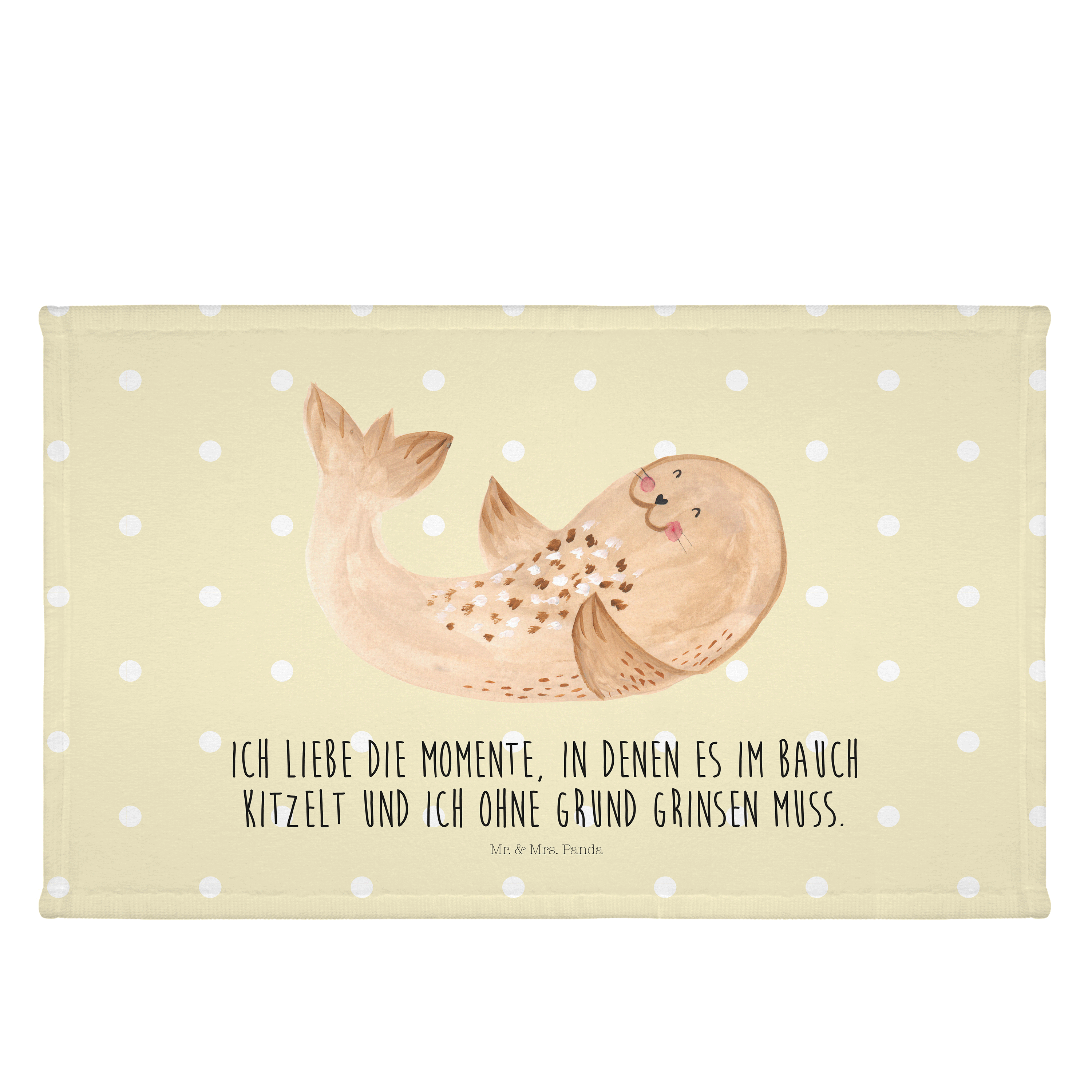 Gäste Handtuch Robbe liegend - mit Spruch - Gelb Pastell