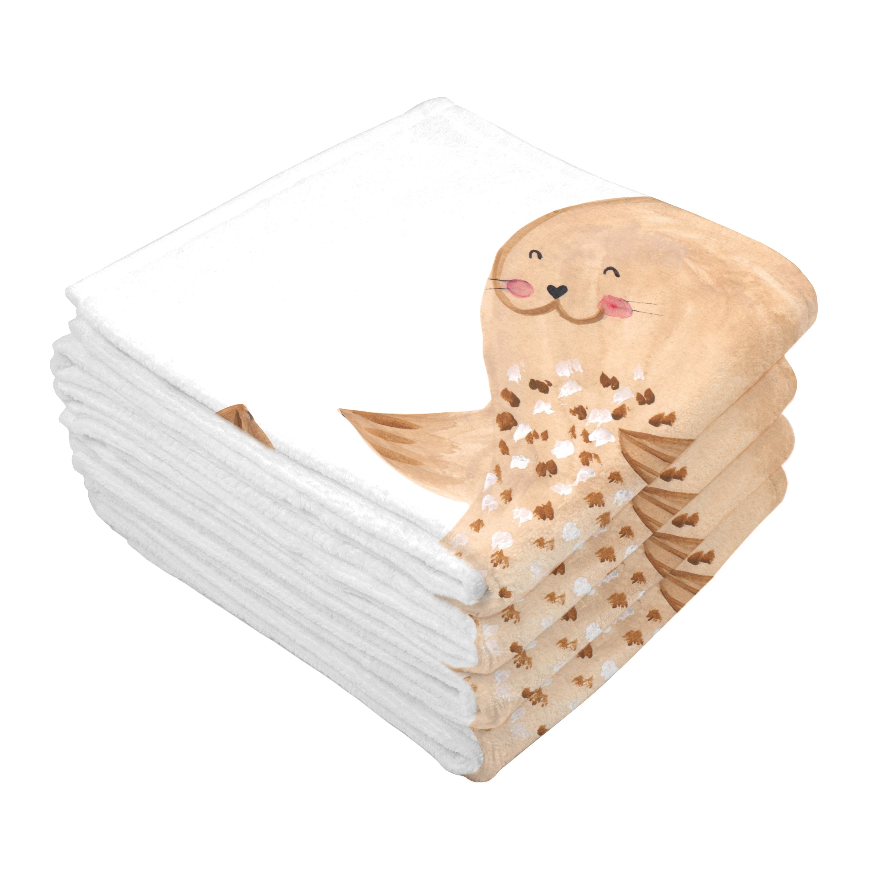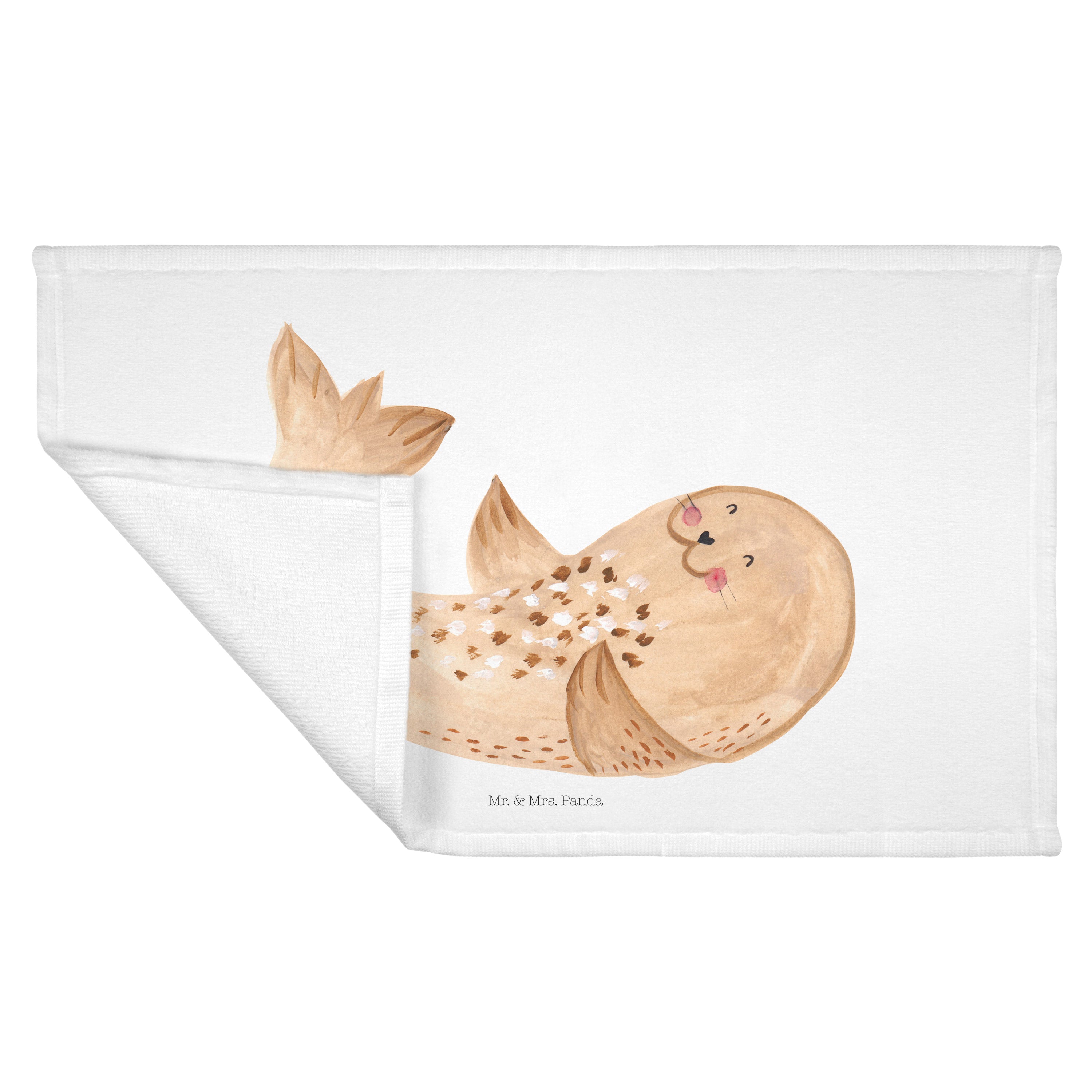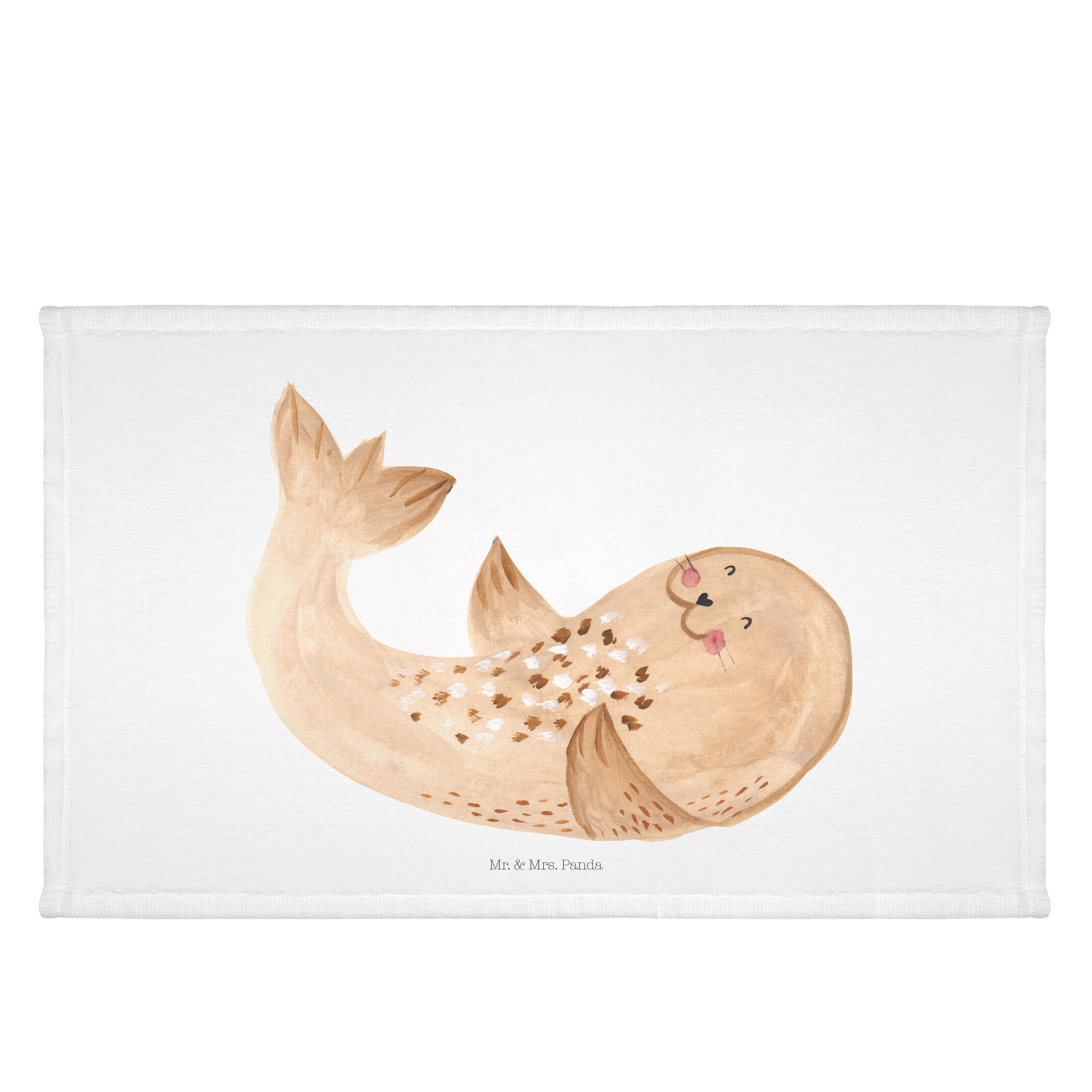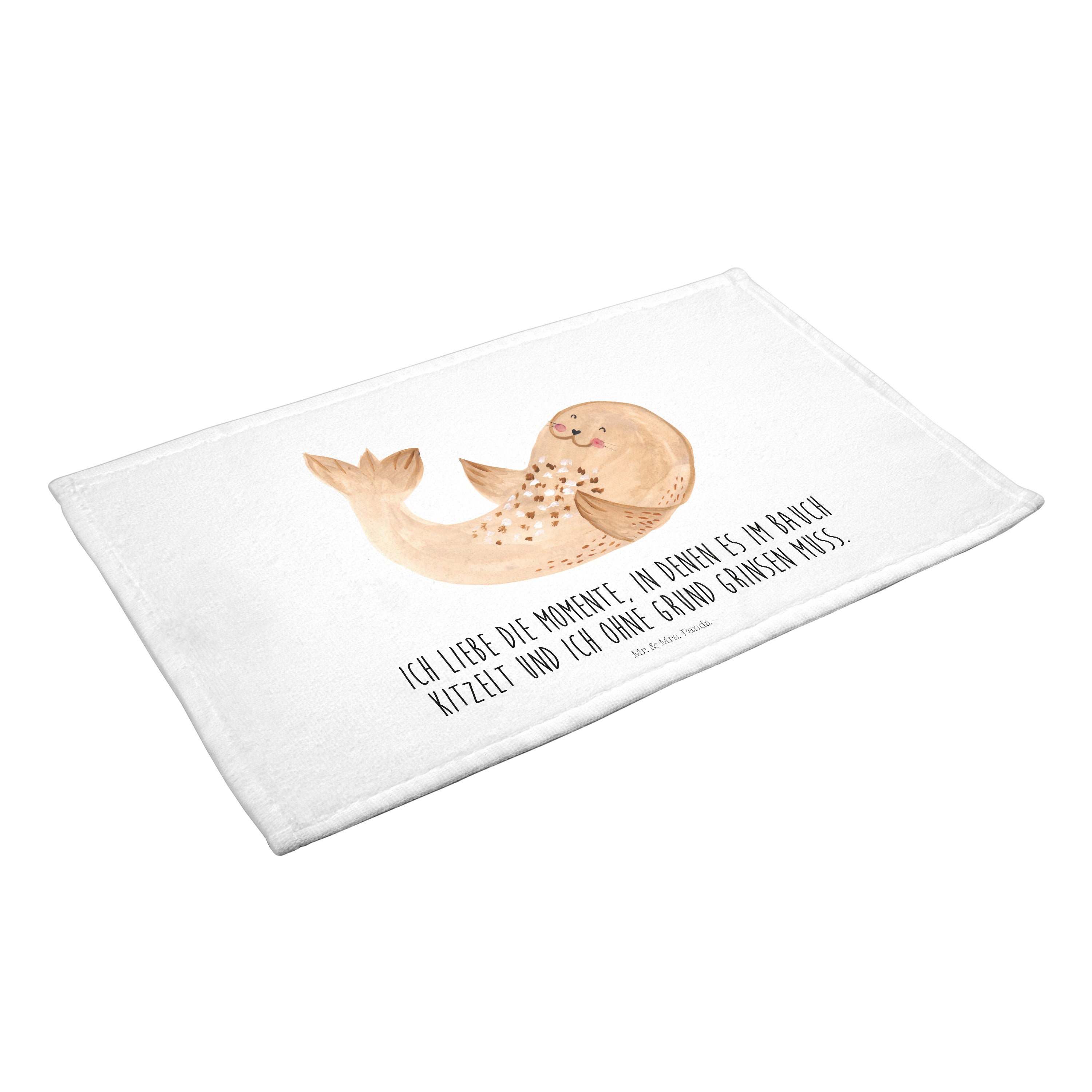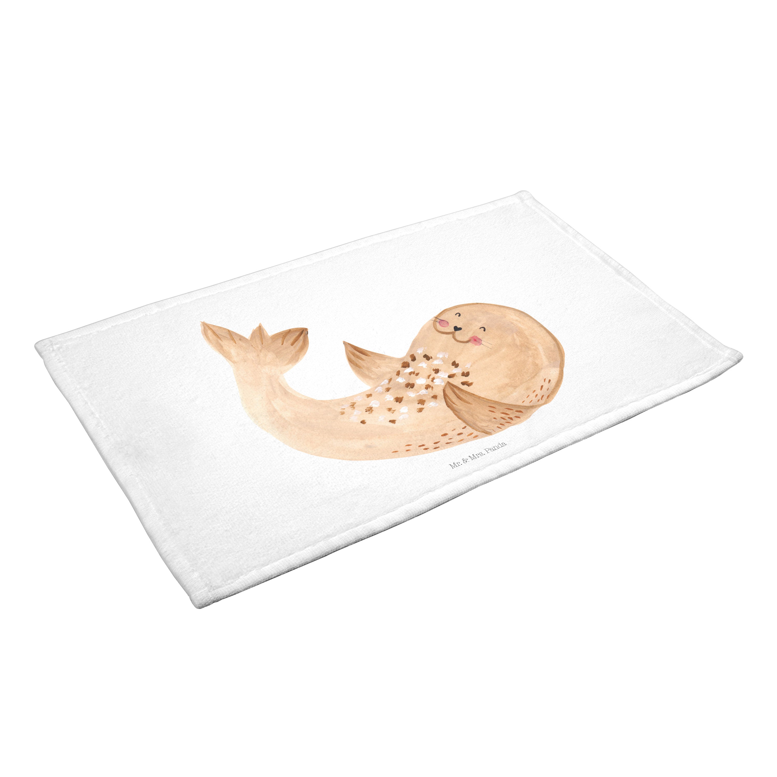 Gäste Handtuch Robbe liegend - mit Spruch - Gelb Pastell