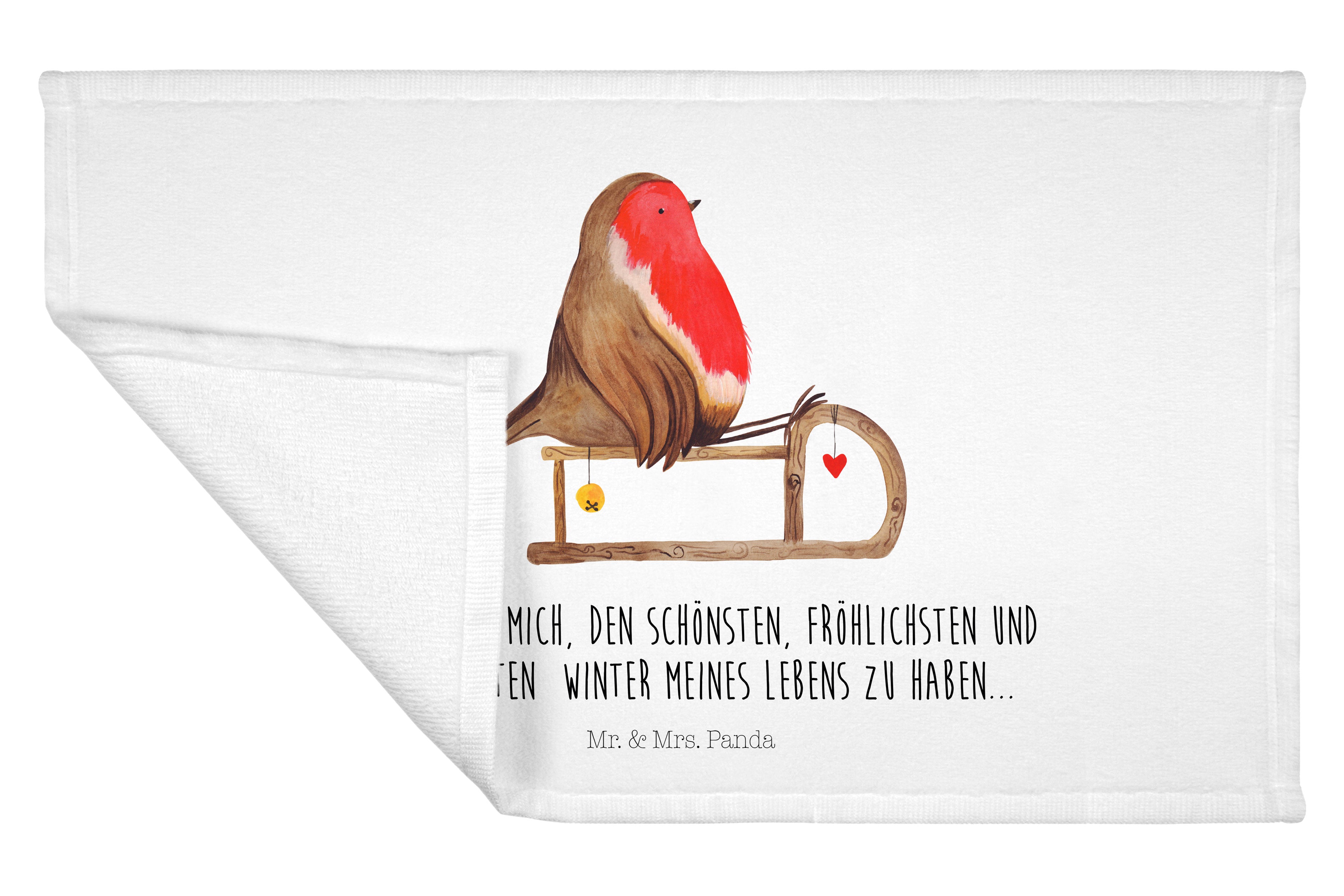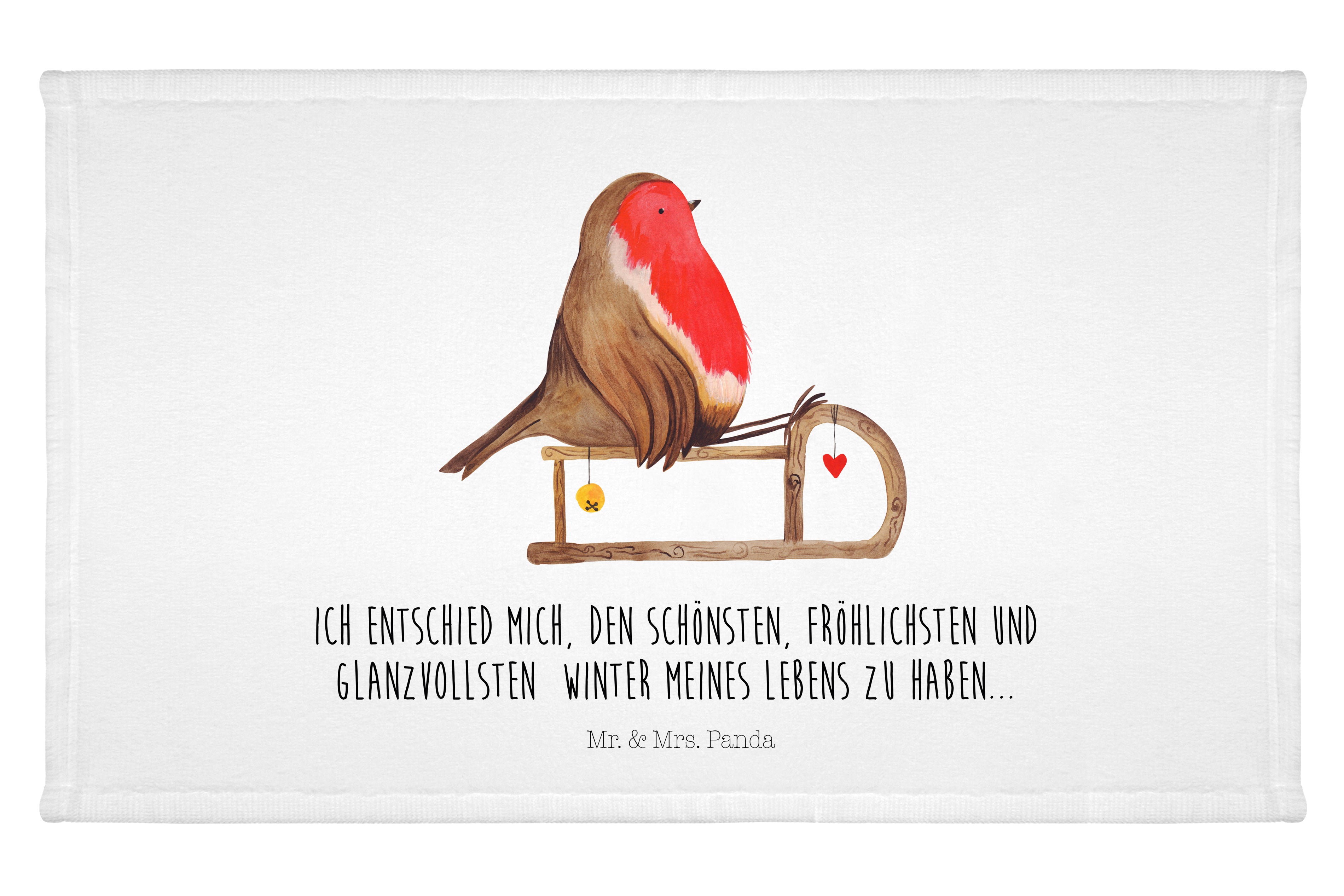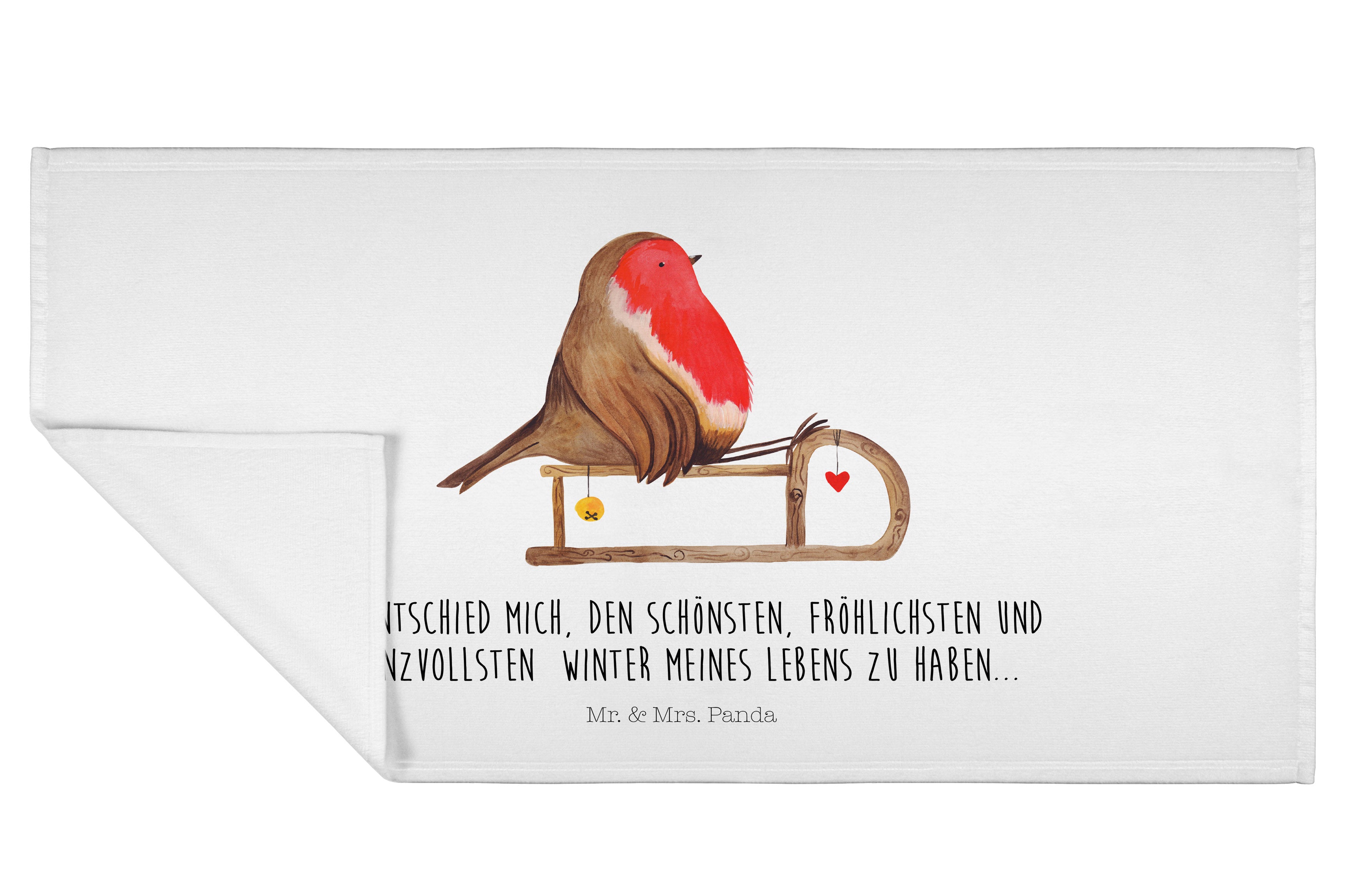 Handtuch Rotkehlchen Schlitten - 50 x 100 Handtuch - Mit Text Din Quer DE
