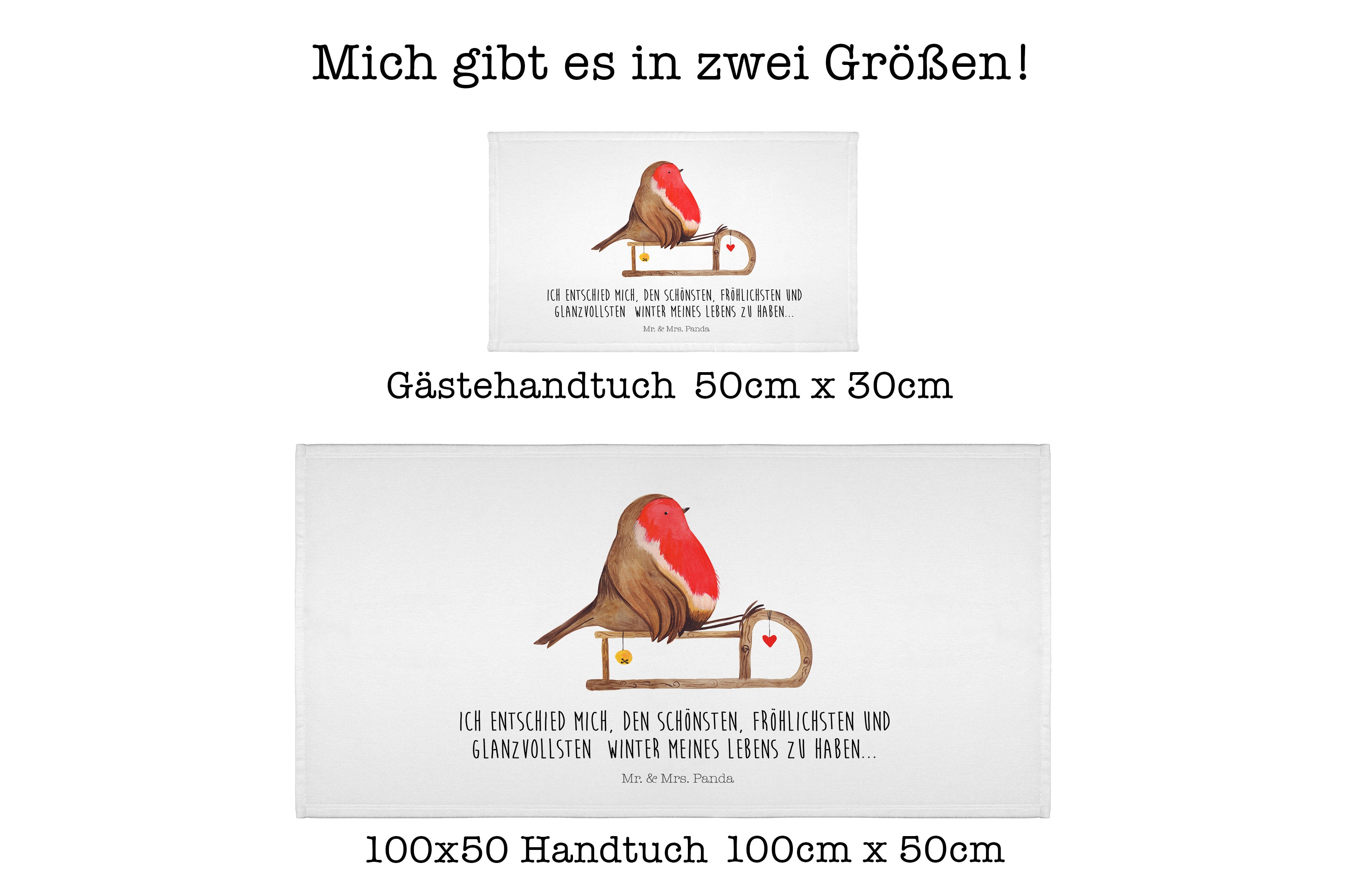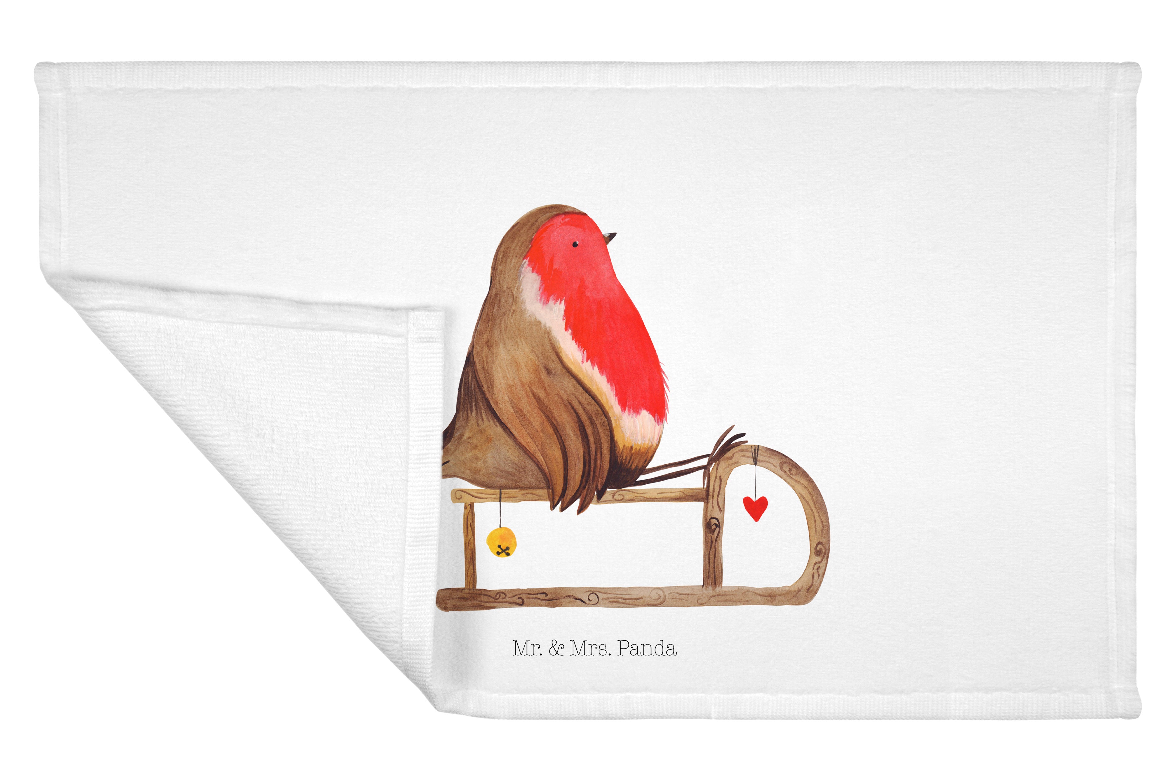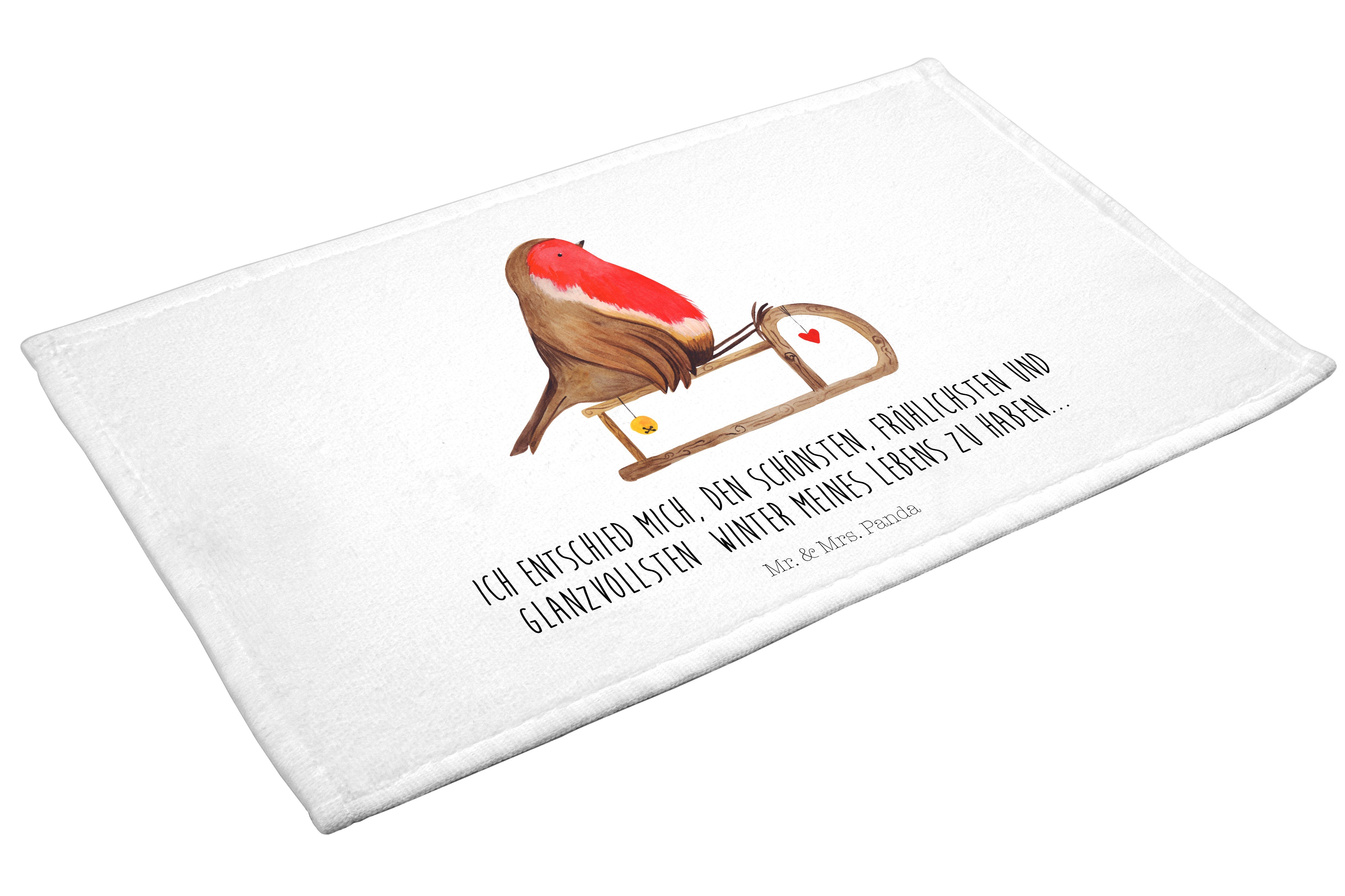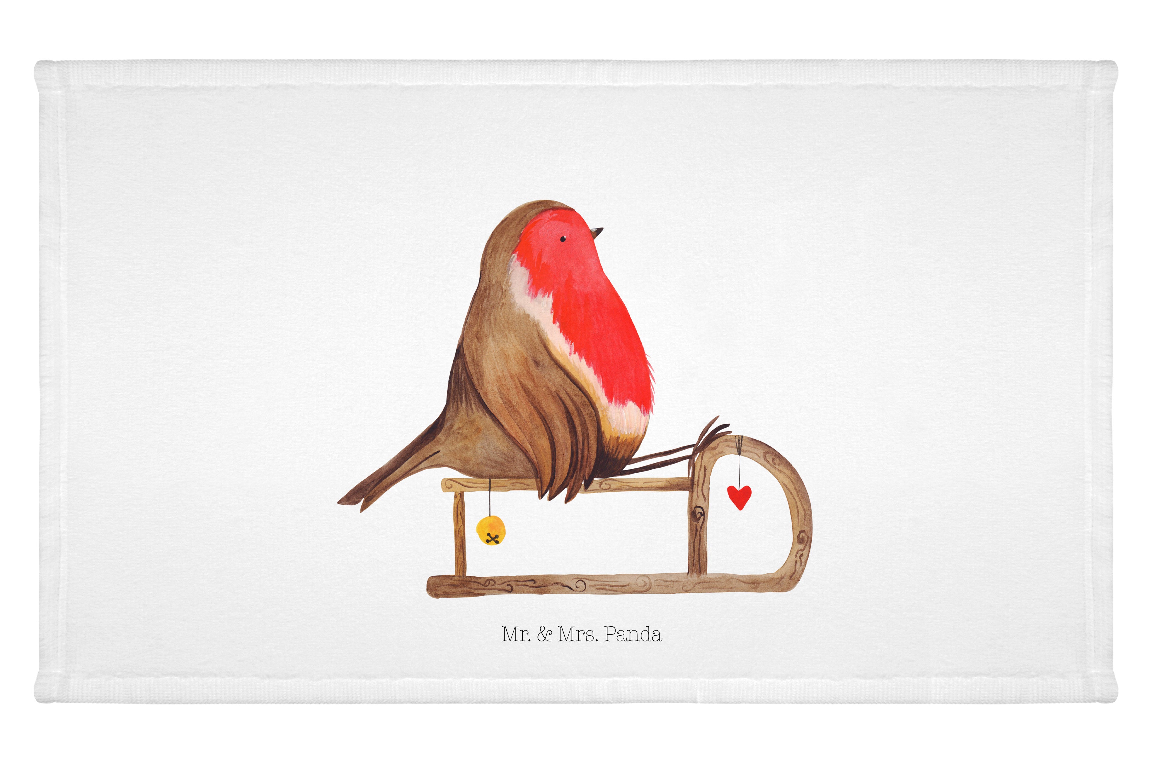 Handtuch Rotkehlchen Schlitten - 50 x 100 Handtuch - Mit Text Din Quer DE