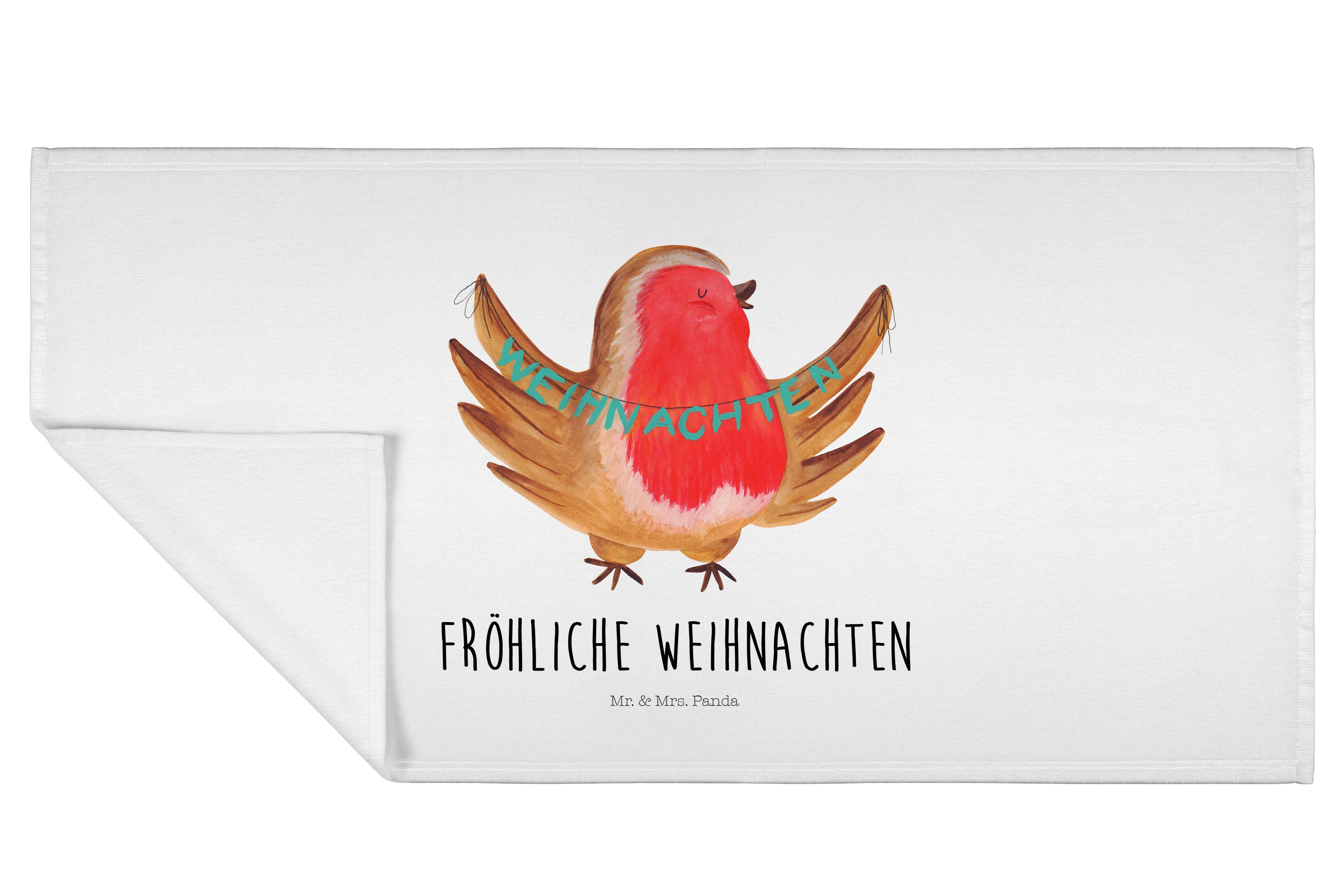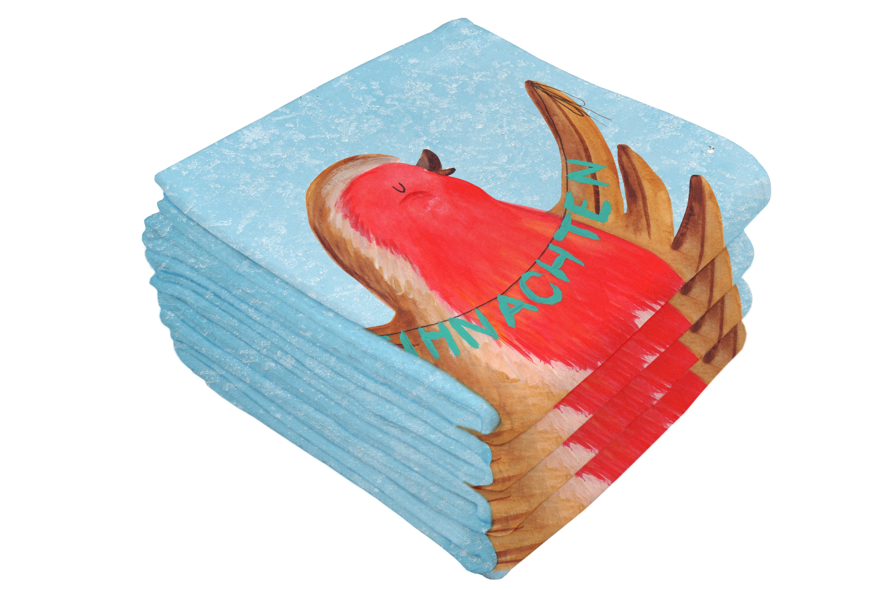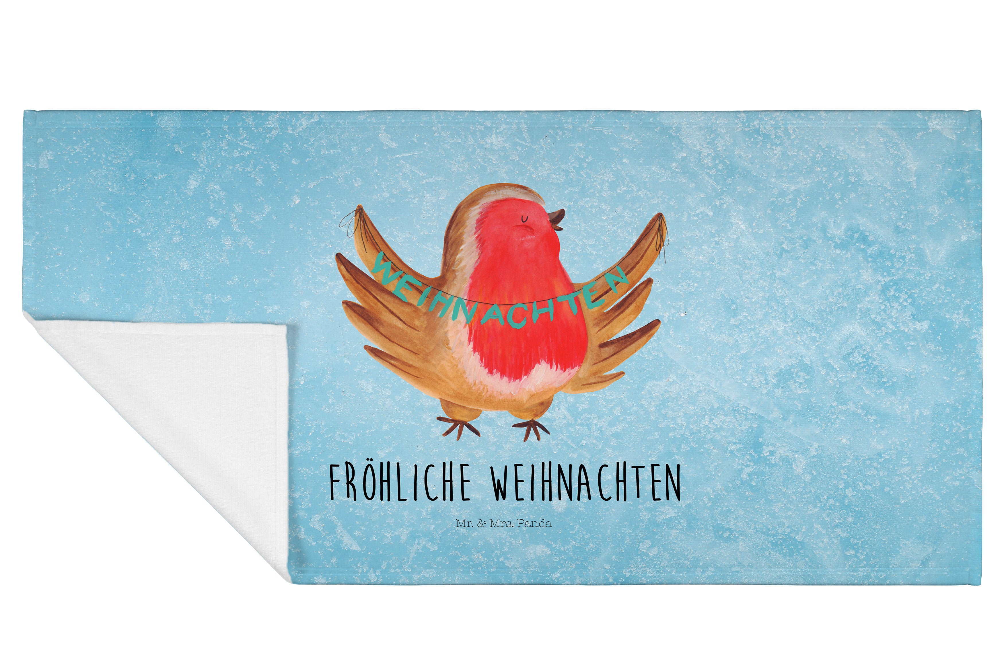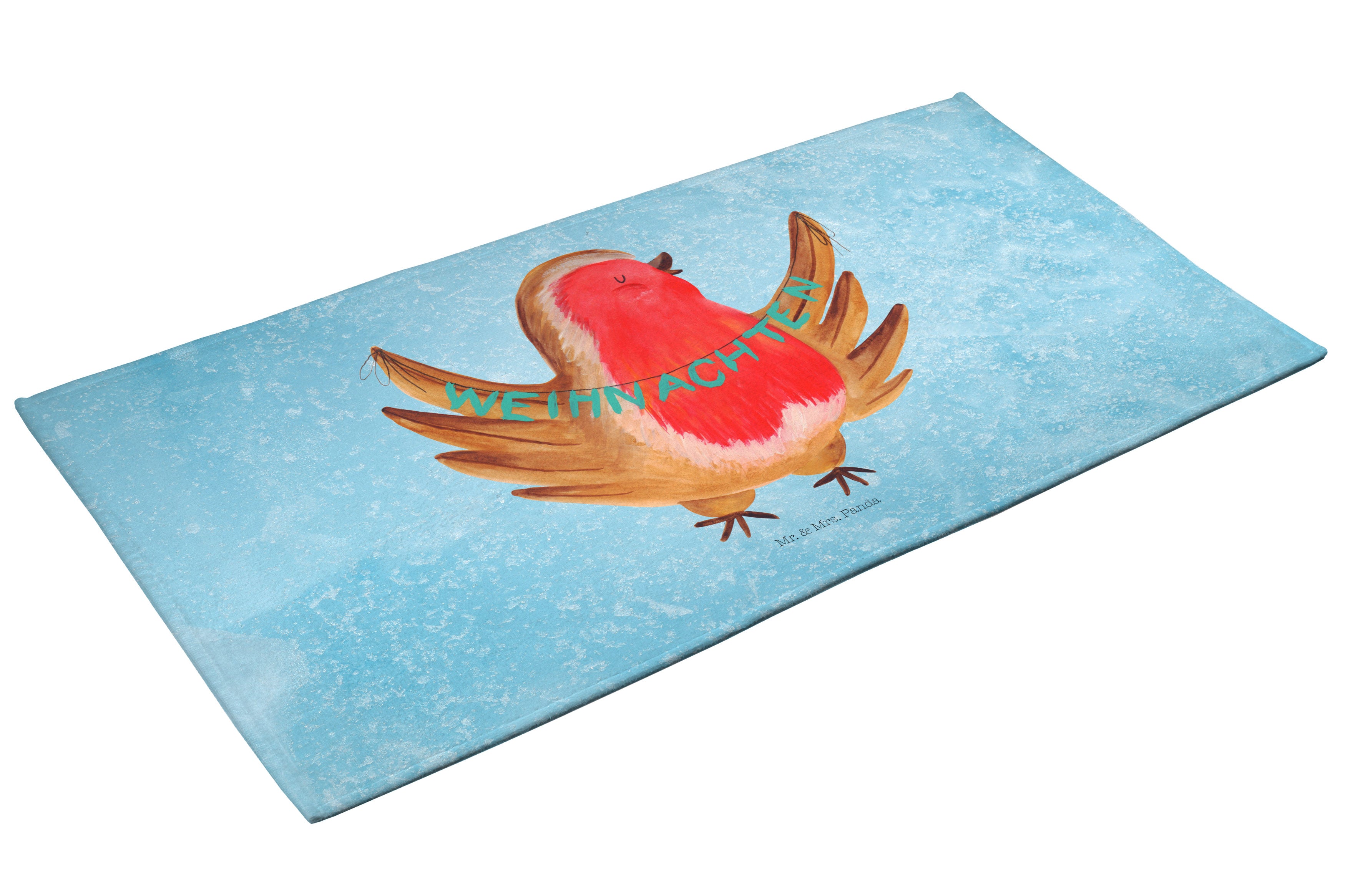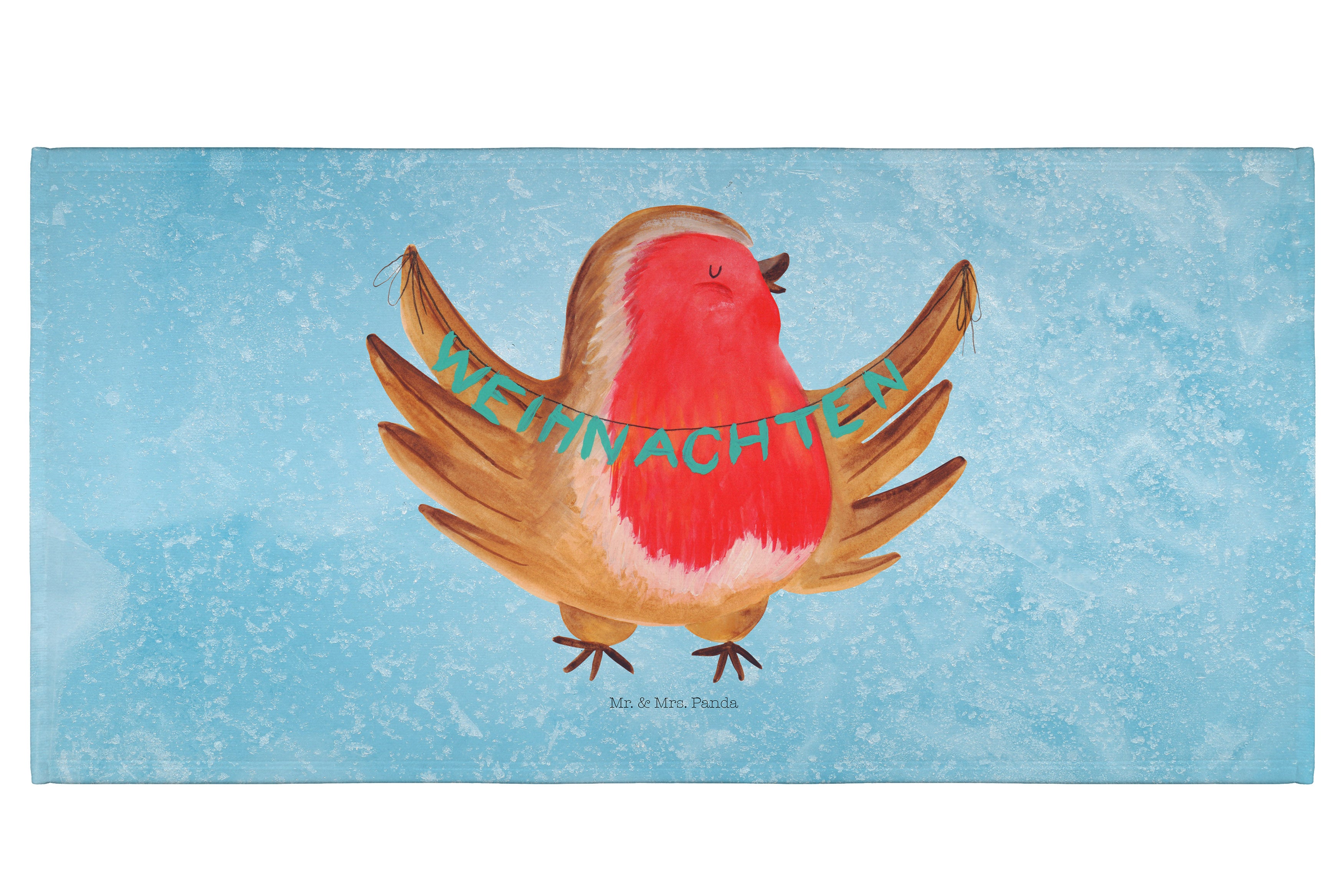 50 x 100 Handtuch Rotkehlchen Weihnachten - ohne Spruch - Eisblau