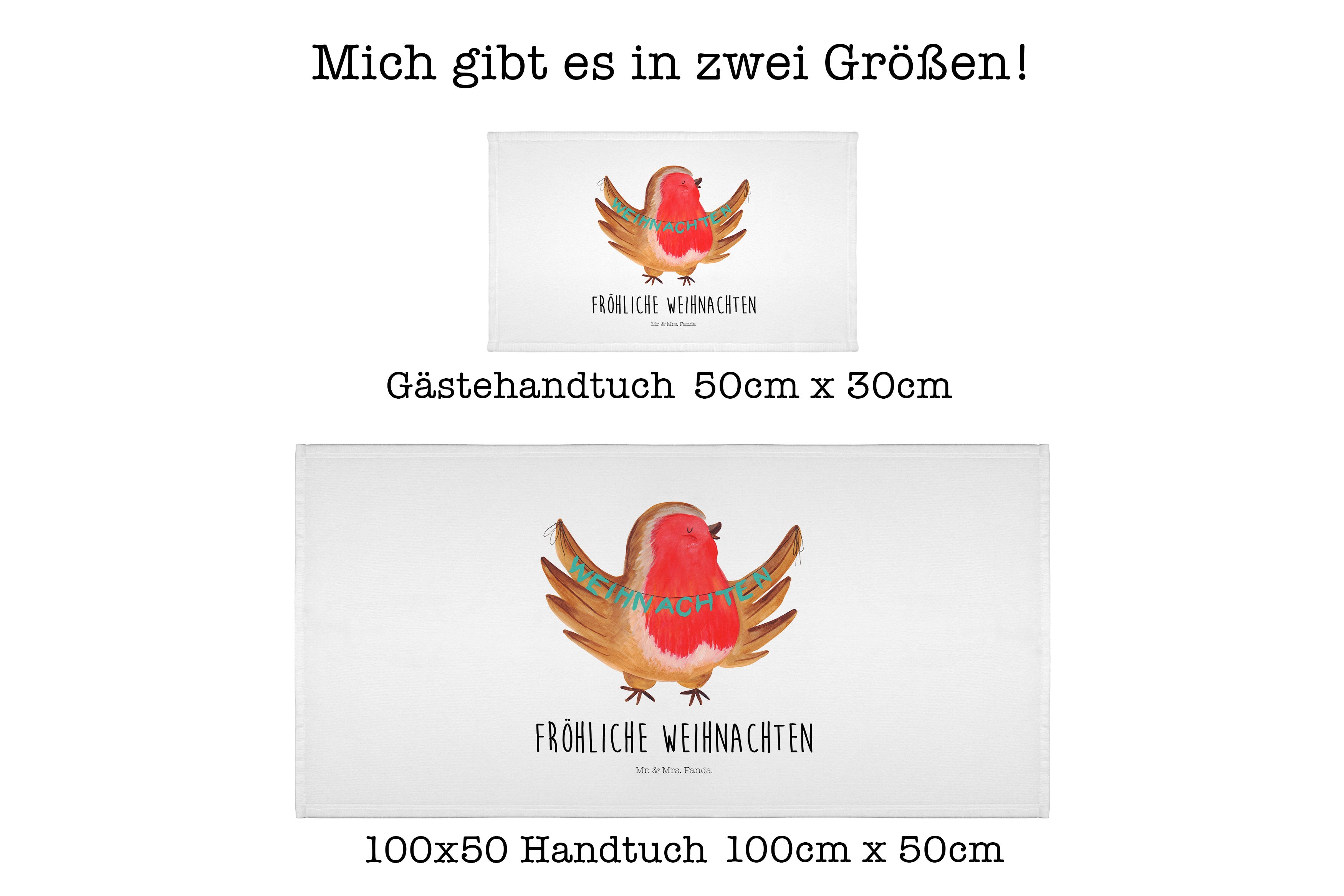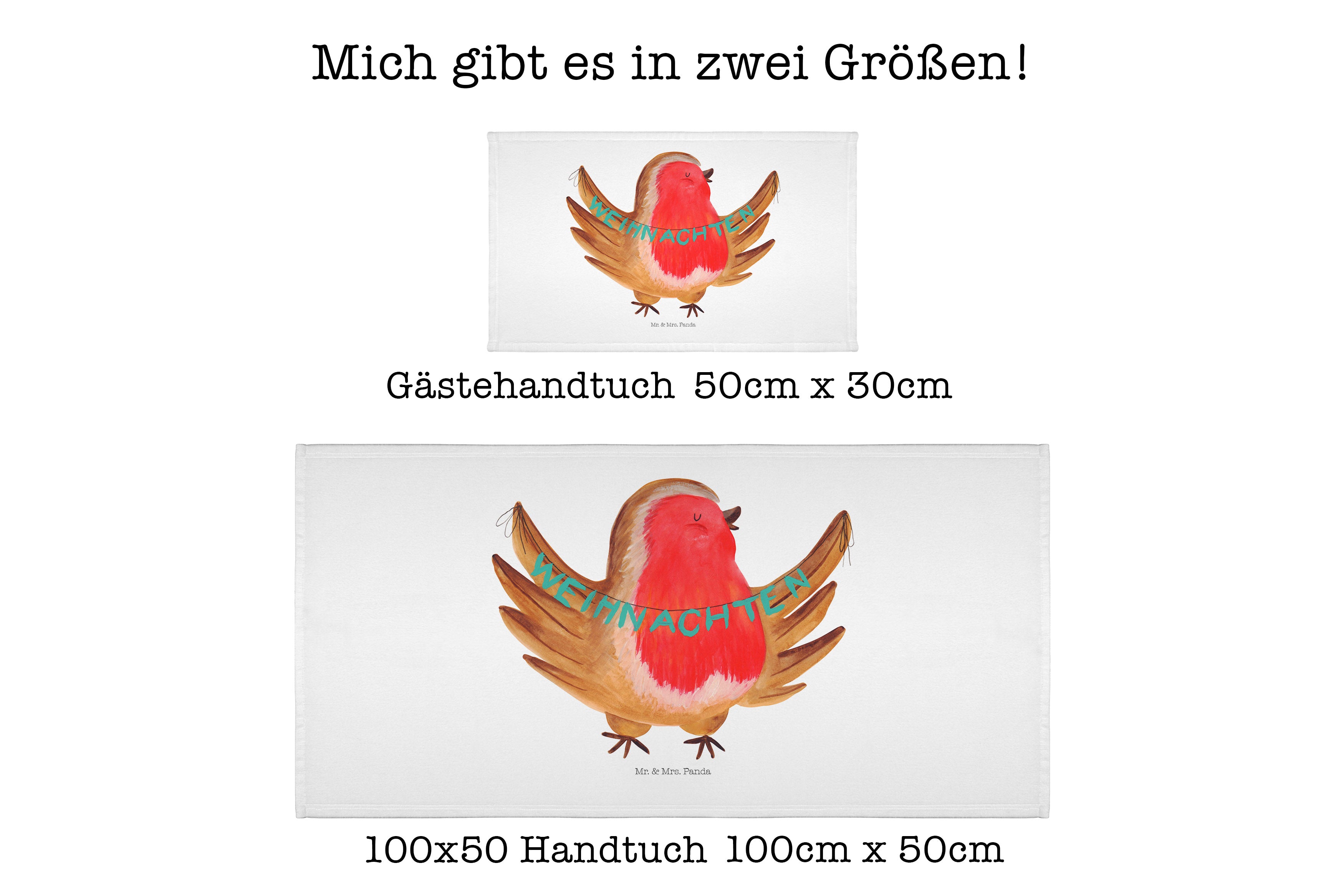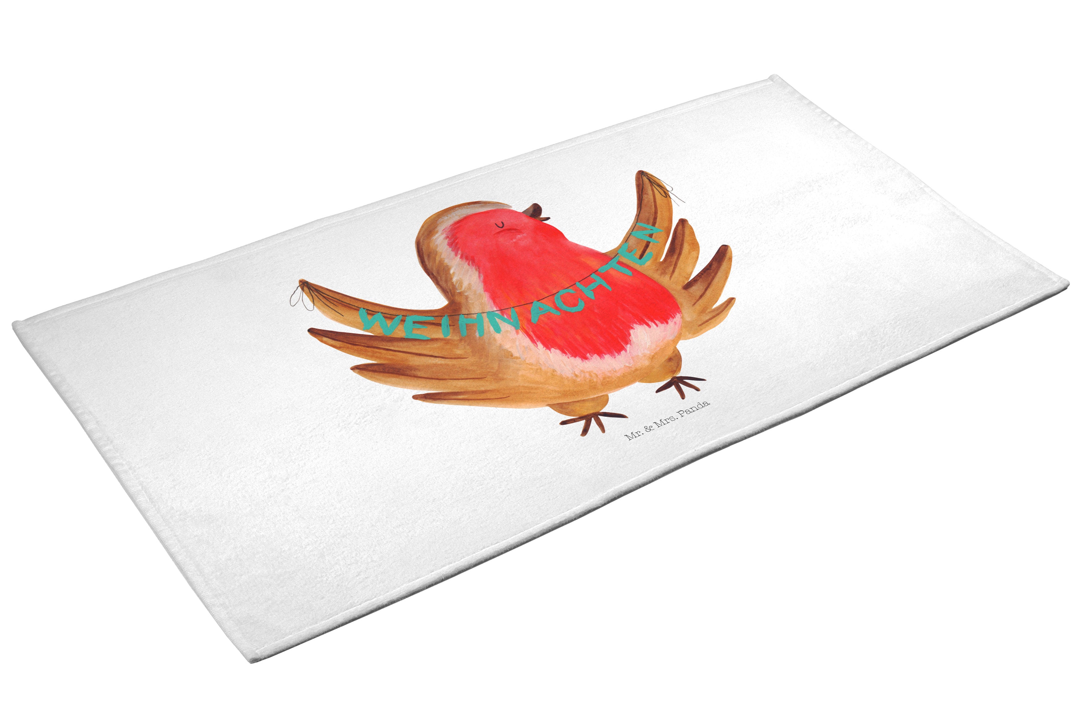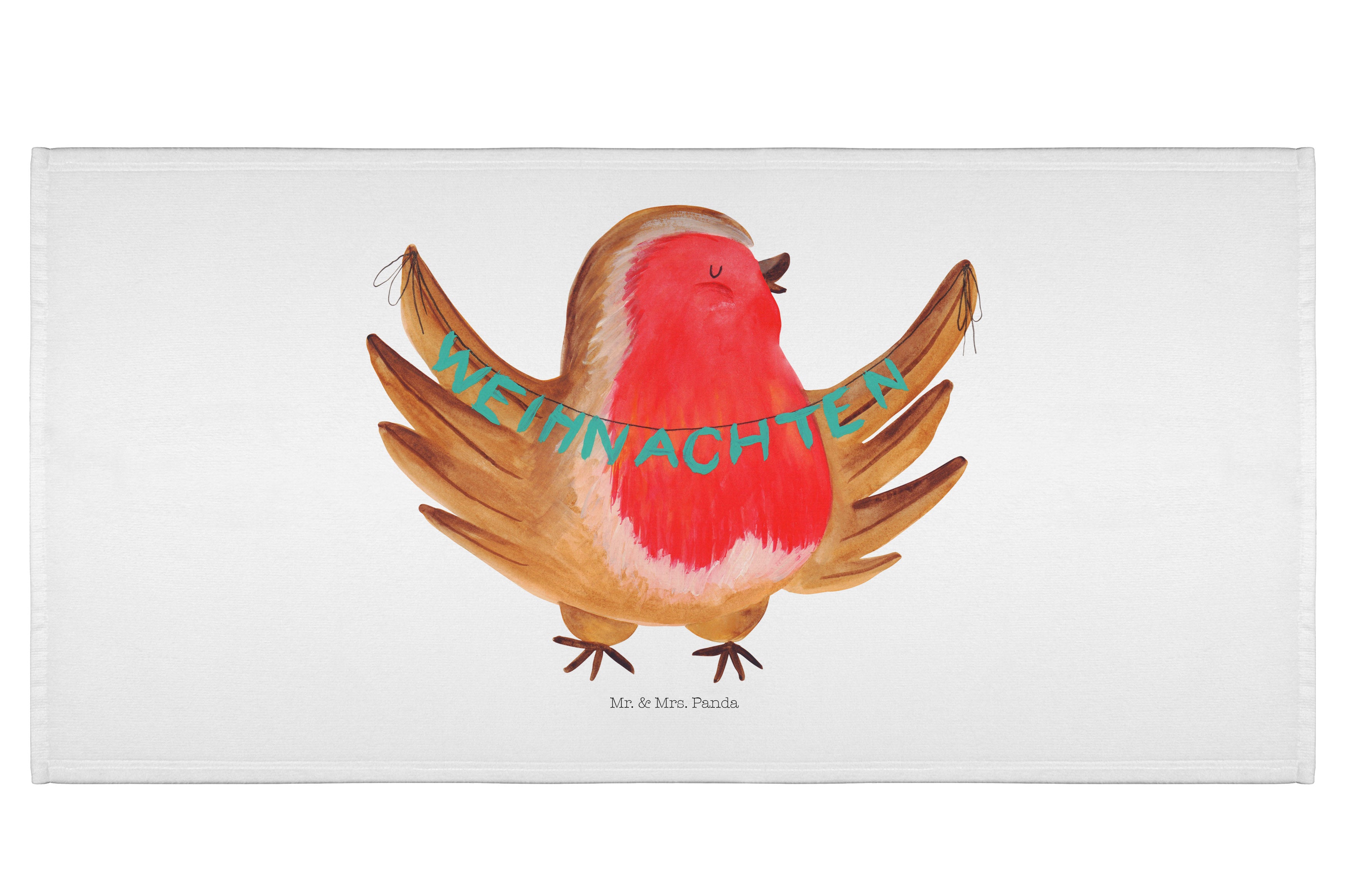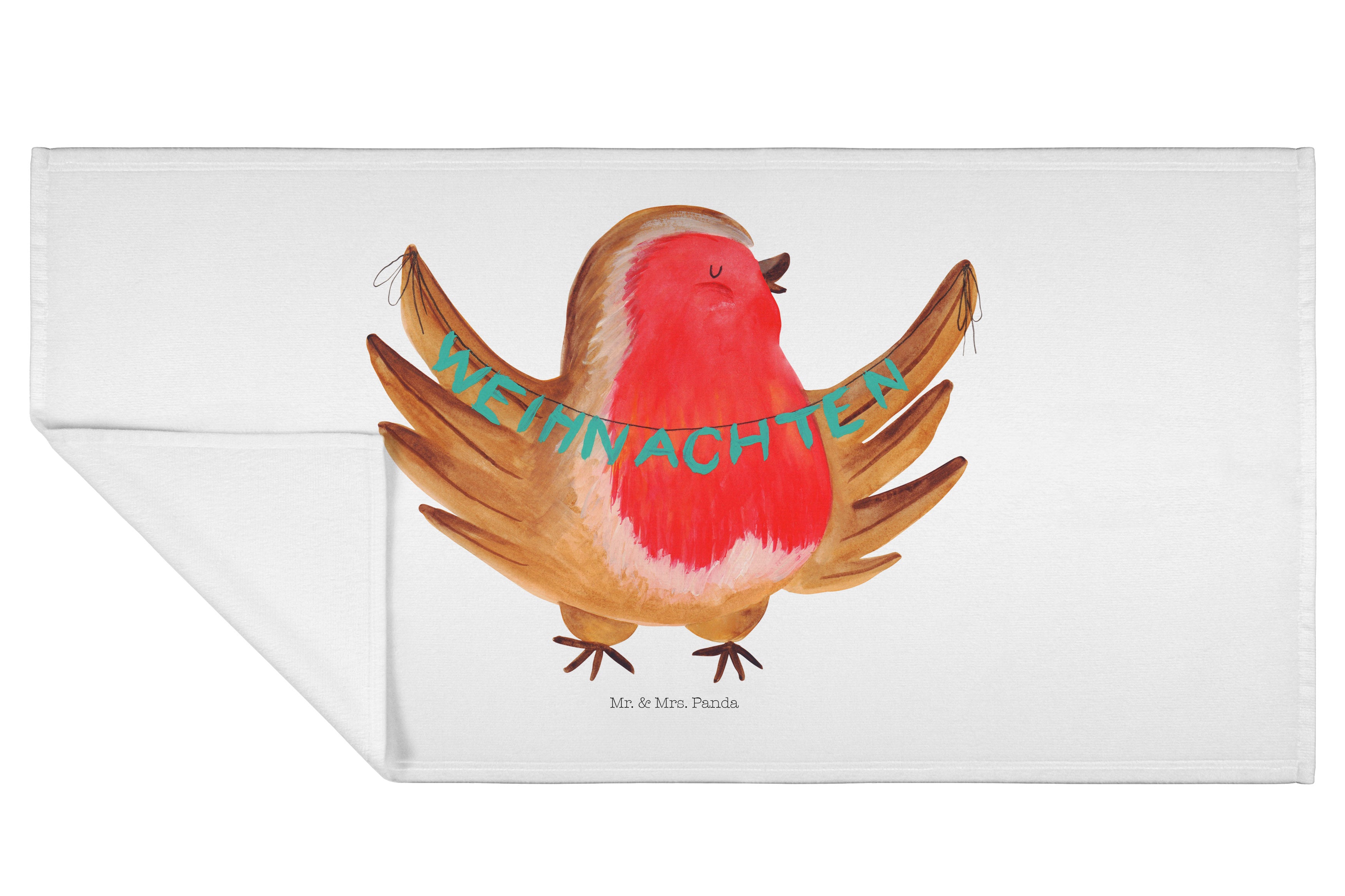 50 x 100 Handtuch Rotkehlchen Weihnachten - ohne Spruch - Eisblau