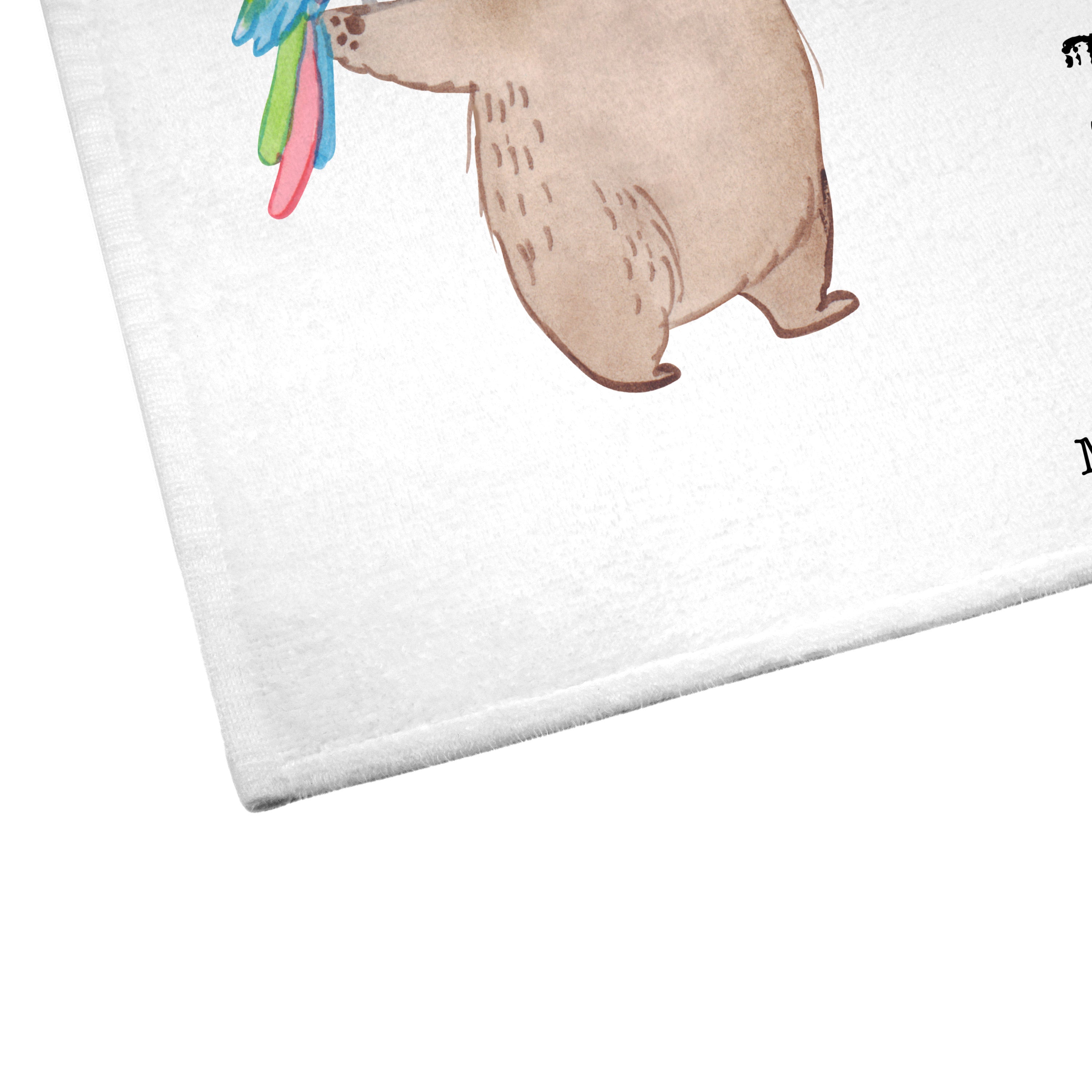 Ein kleines schönes Gästehandtuch von Mr. & Mrs. Panda. Es eignet sich perfekt als kleines Handtuch für Gäste, als Handtuch für die Hände oder auch als Handtuch für Kinder. Das Handtuch besteht überwiegend aus Baumwolle und ist wunderbar weich und saugstark. Es ist definitiv ein Blickfang im Bad oder im Gäste WC.
