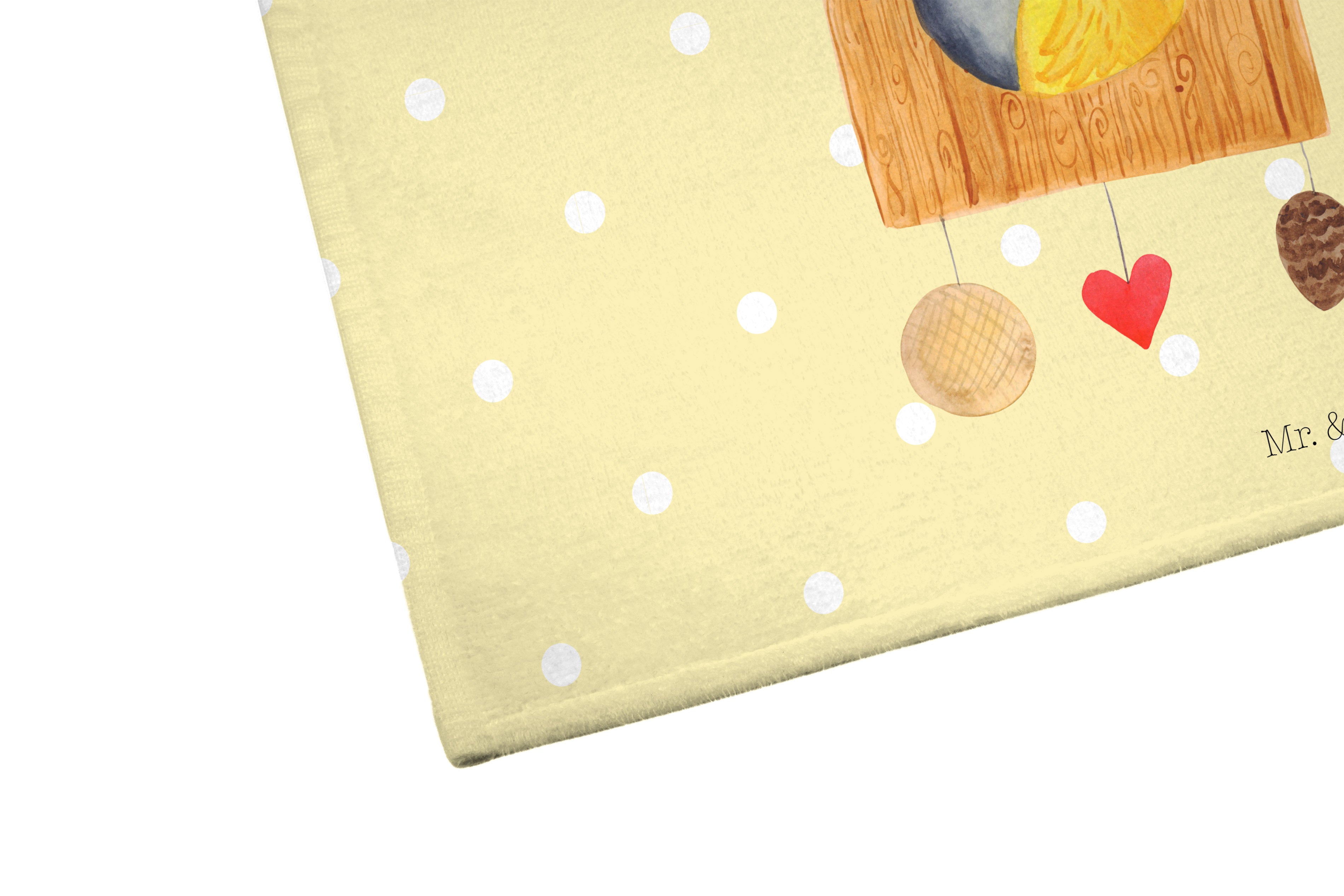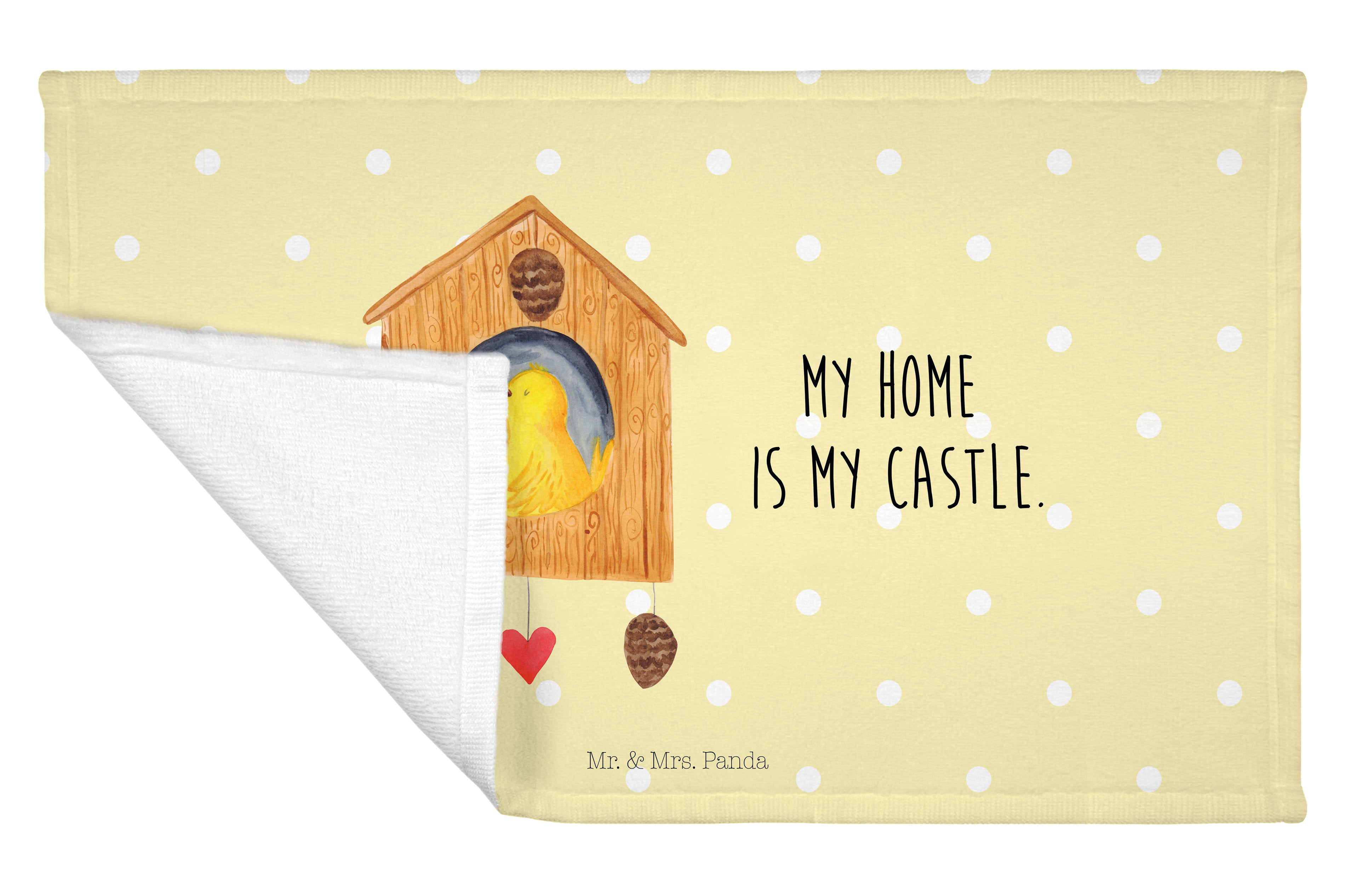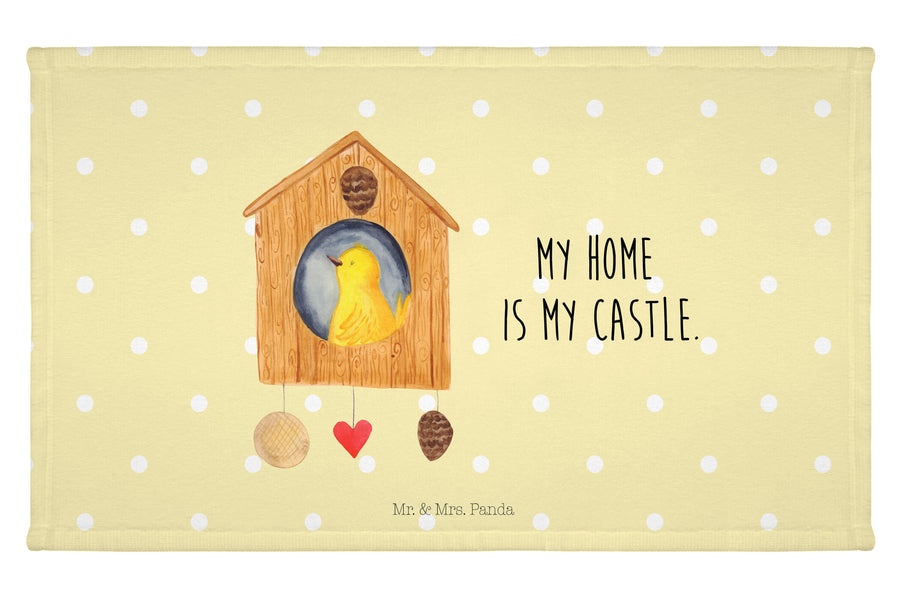 Gäste Handtuch Vogelhaus - mit Spruch - Gelb Pastell