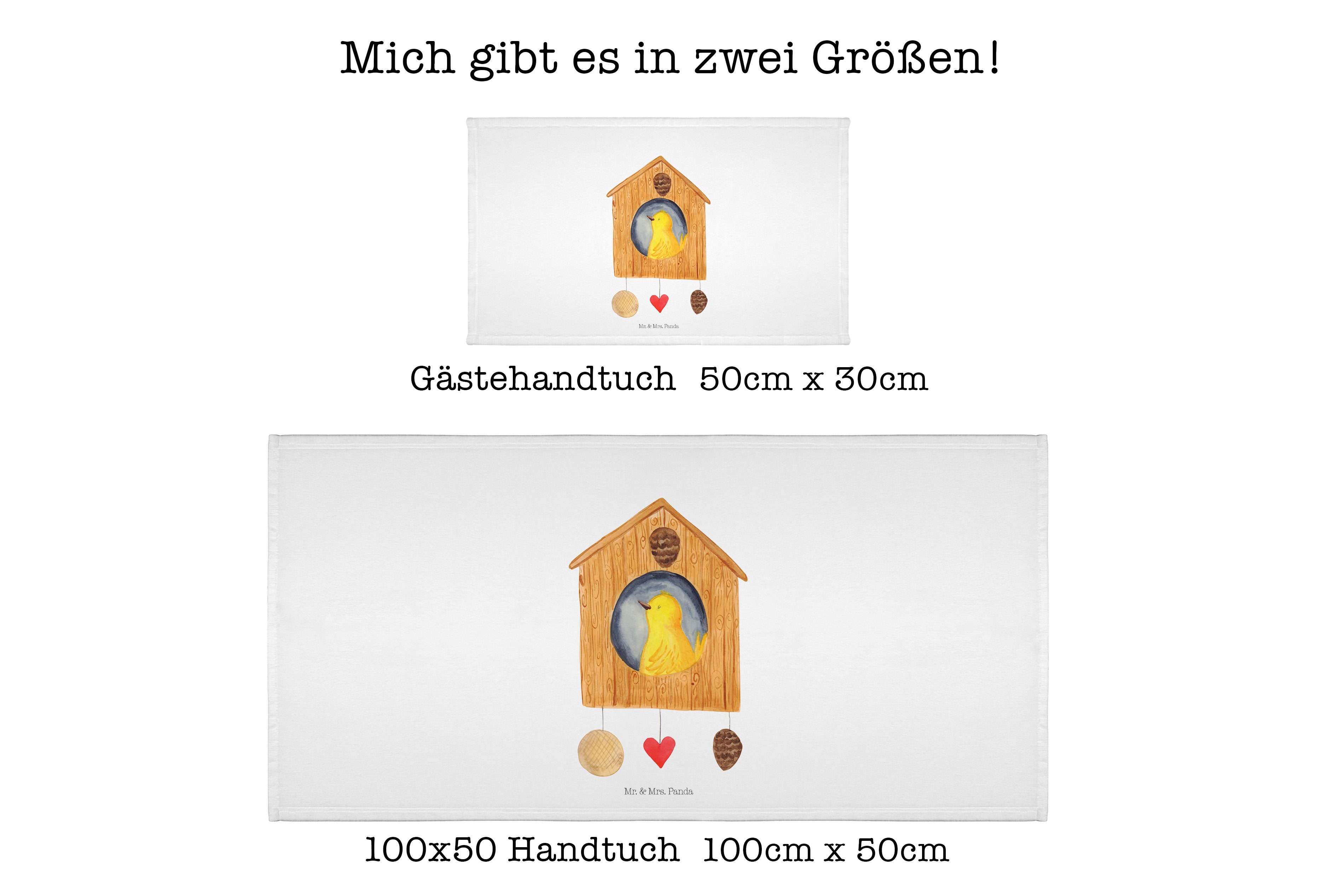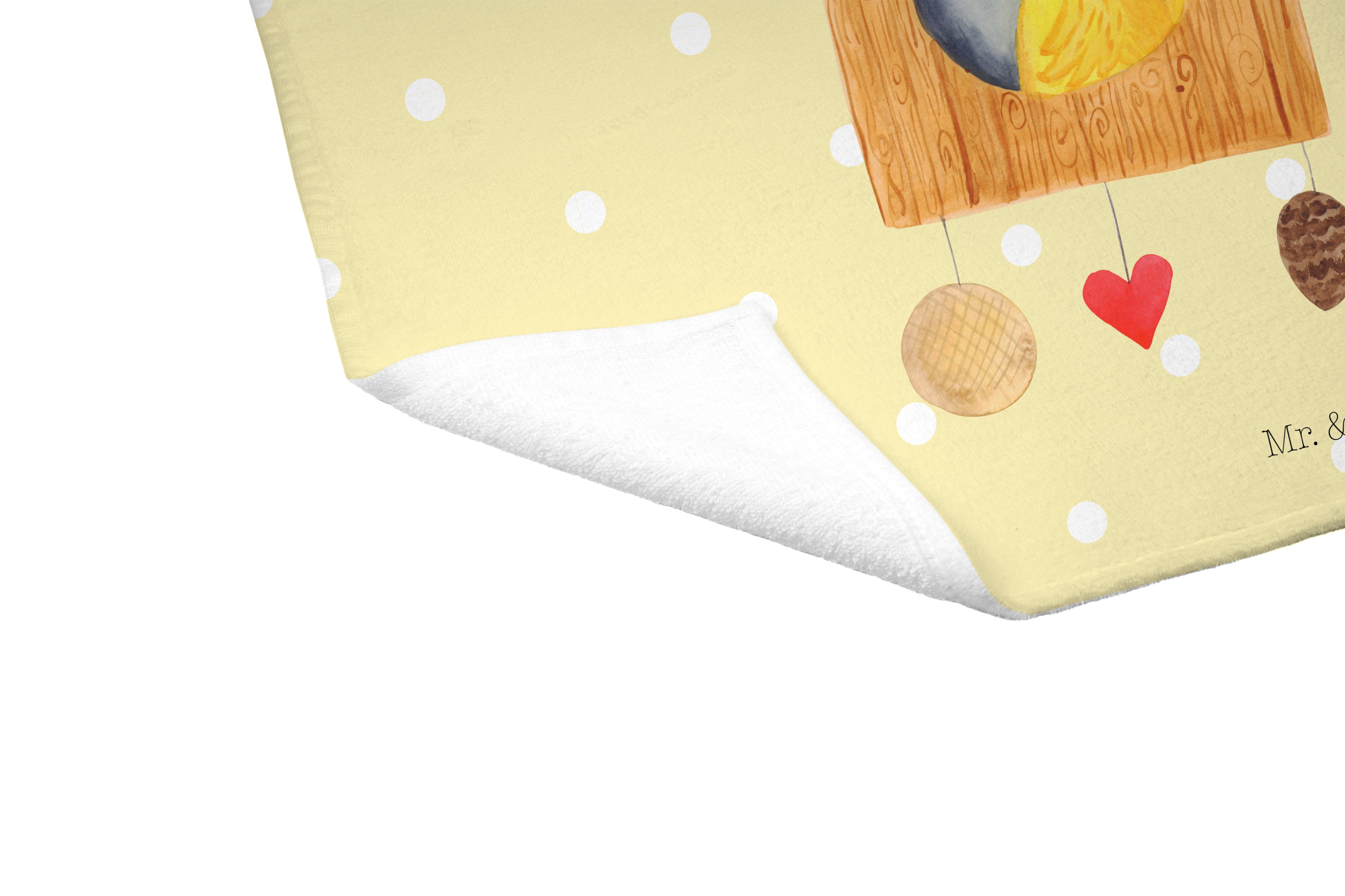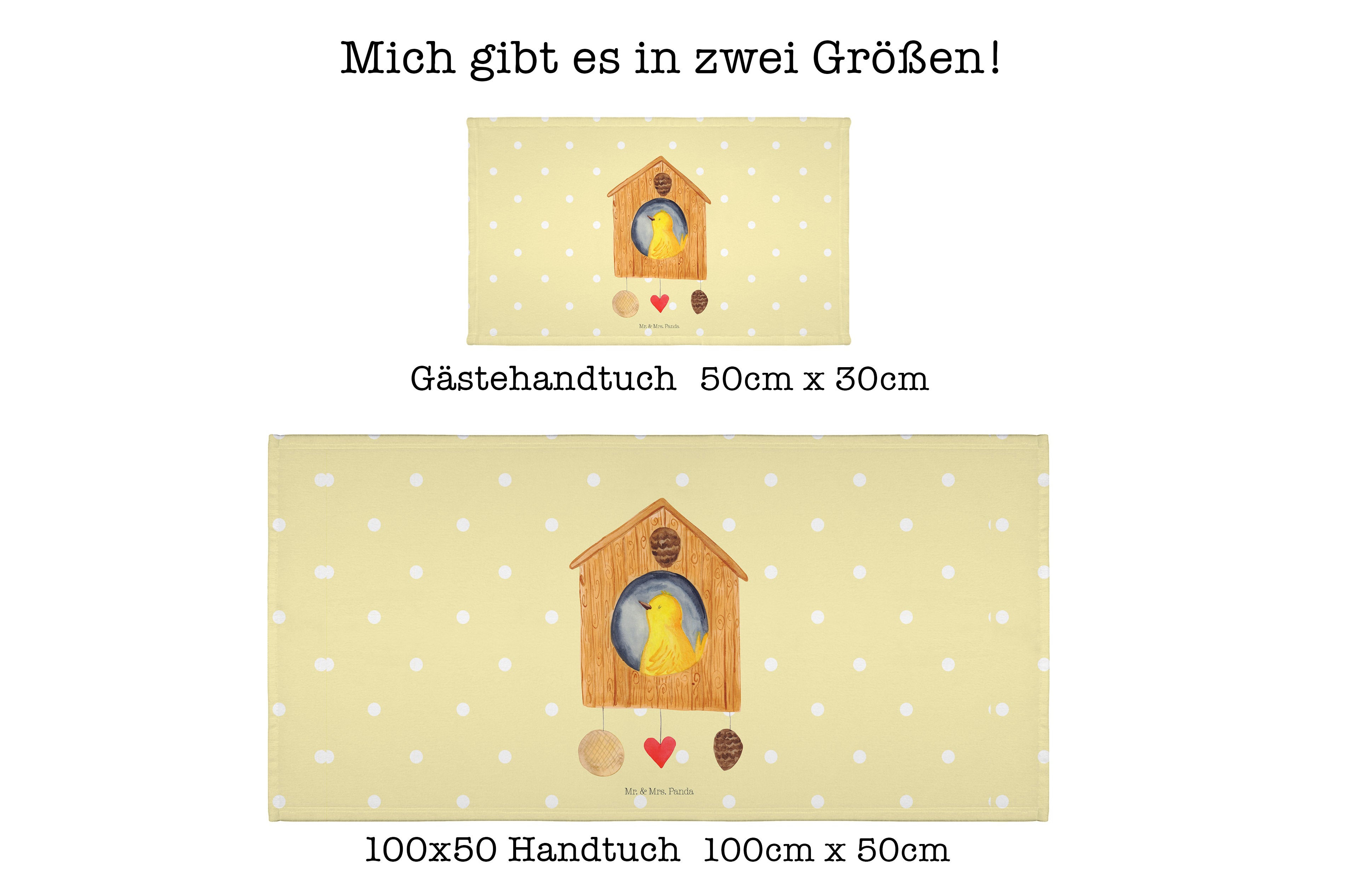 Gäste Handtuch Vogelhaus - mit Spruch - Gelb Pastell