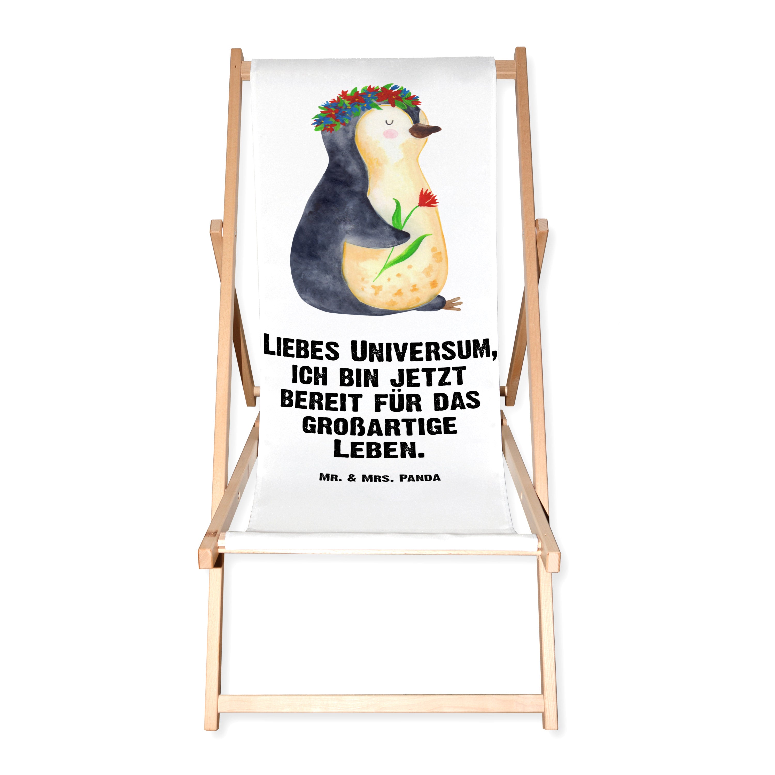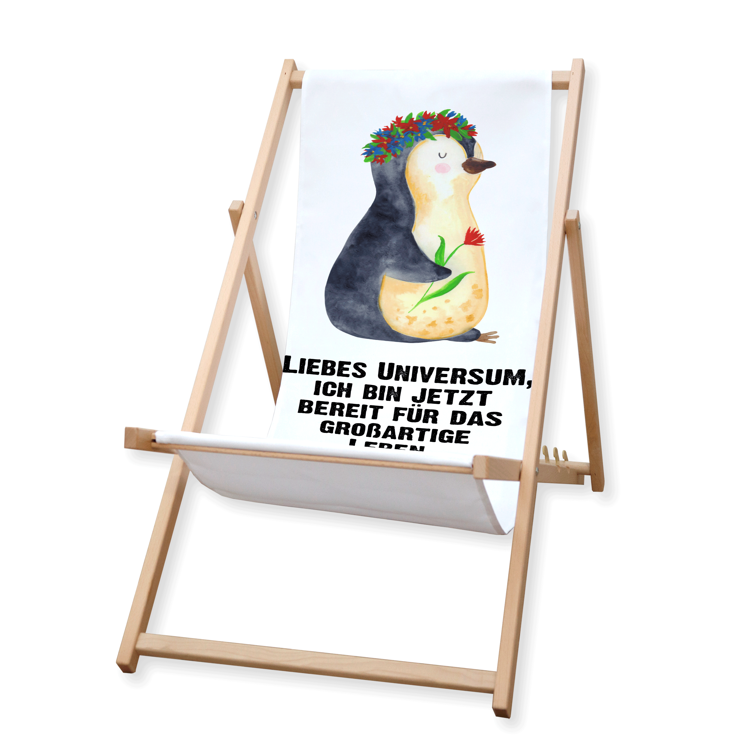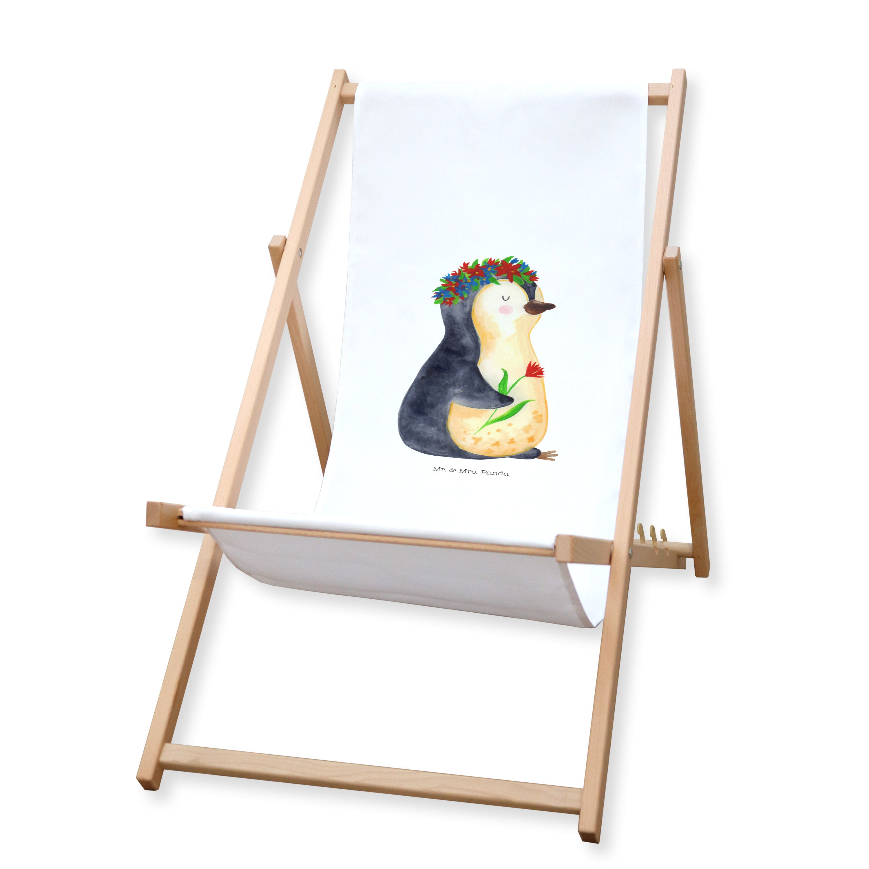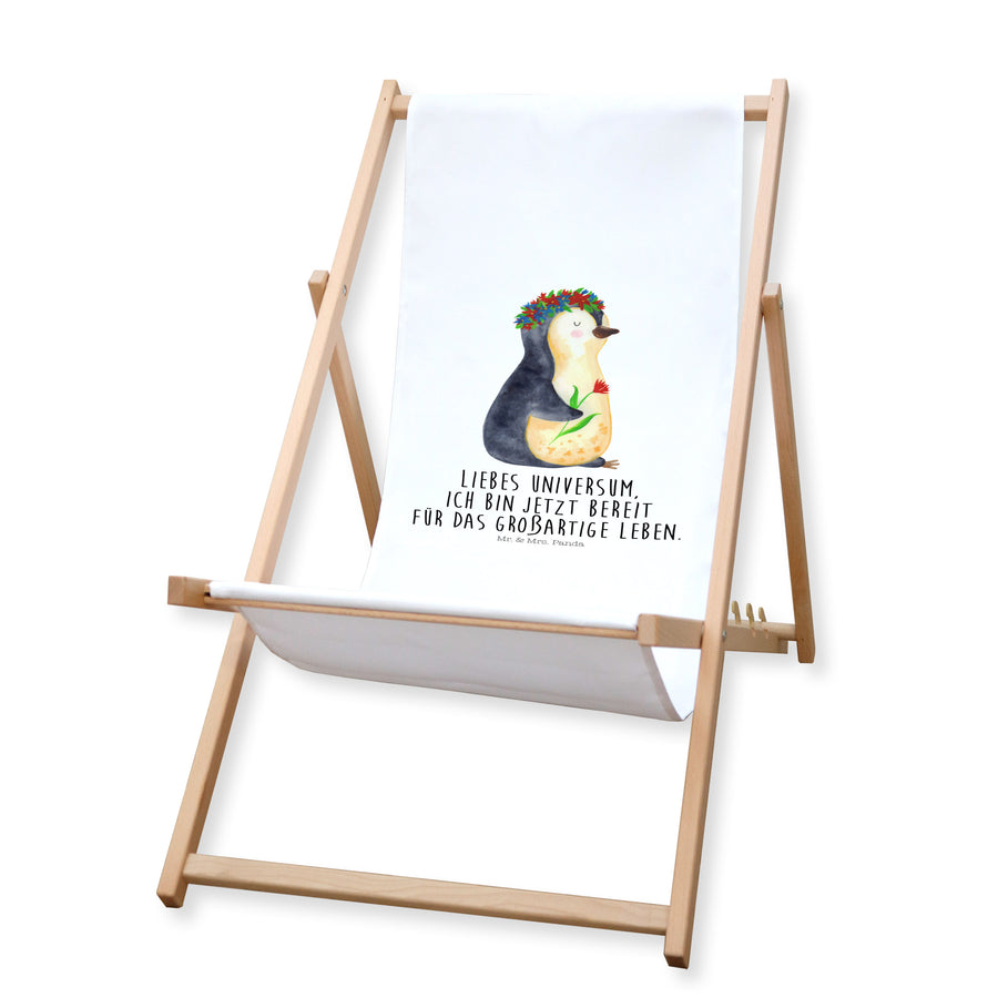 Gartenliege Pinguin Blumenkranz - mit Spruch