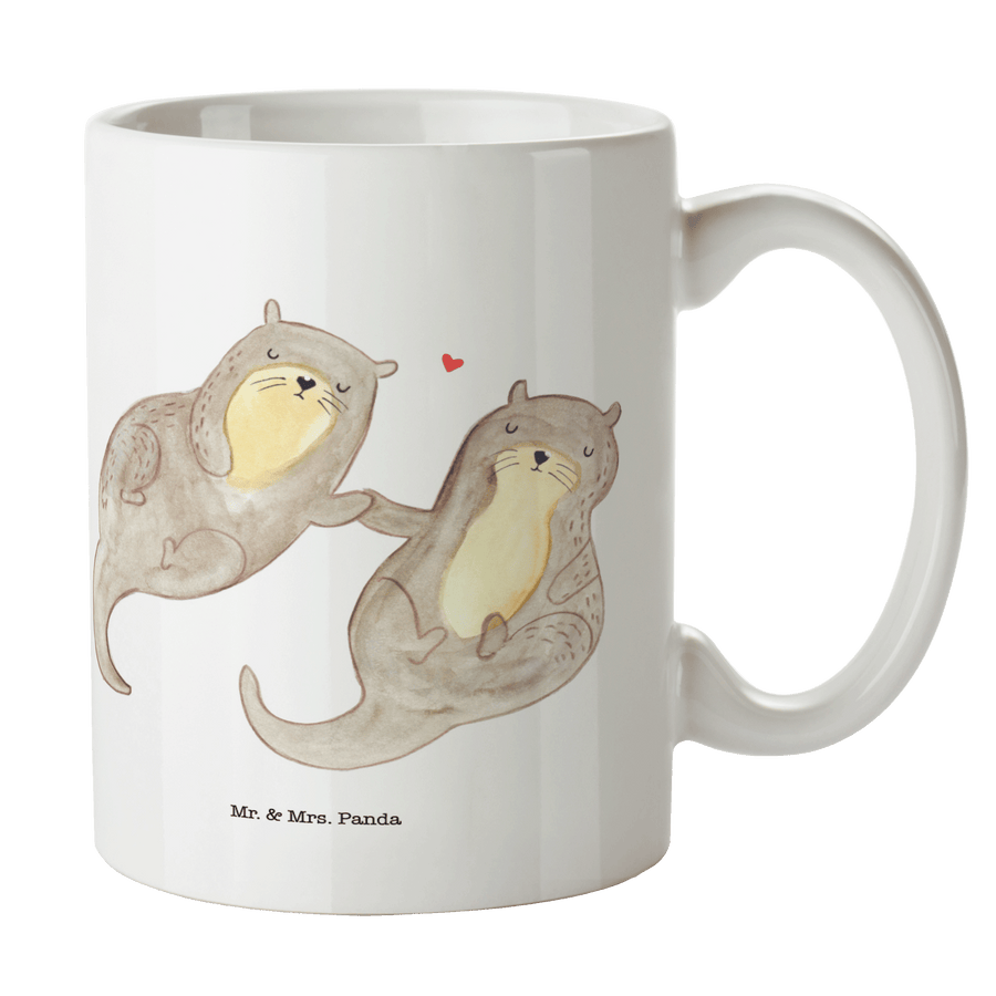 Tasse Otter händchenhaltend - ohne Spruch - Weiß