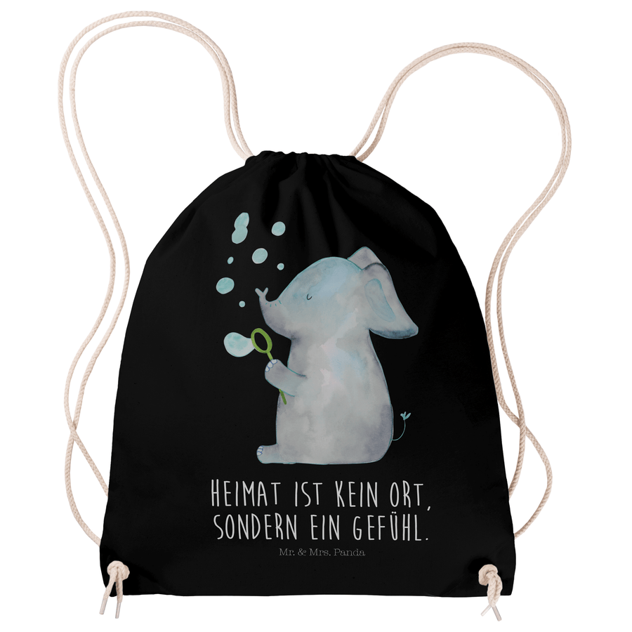 Sportbeutel Elefant Seifenblasen - mit Spruch - Schwarz