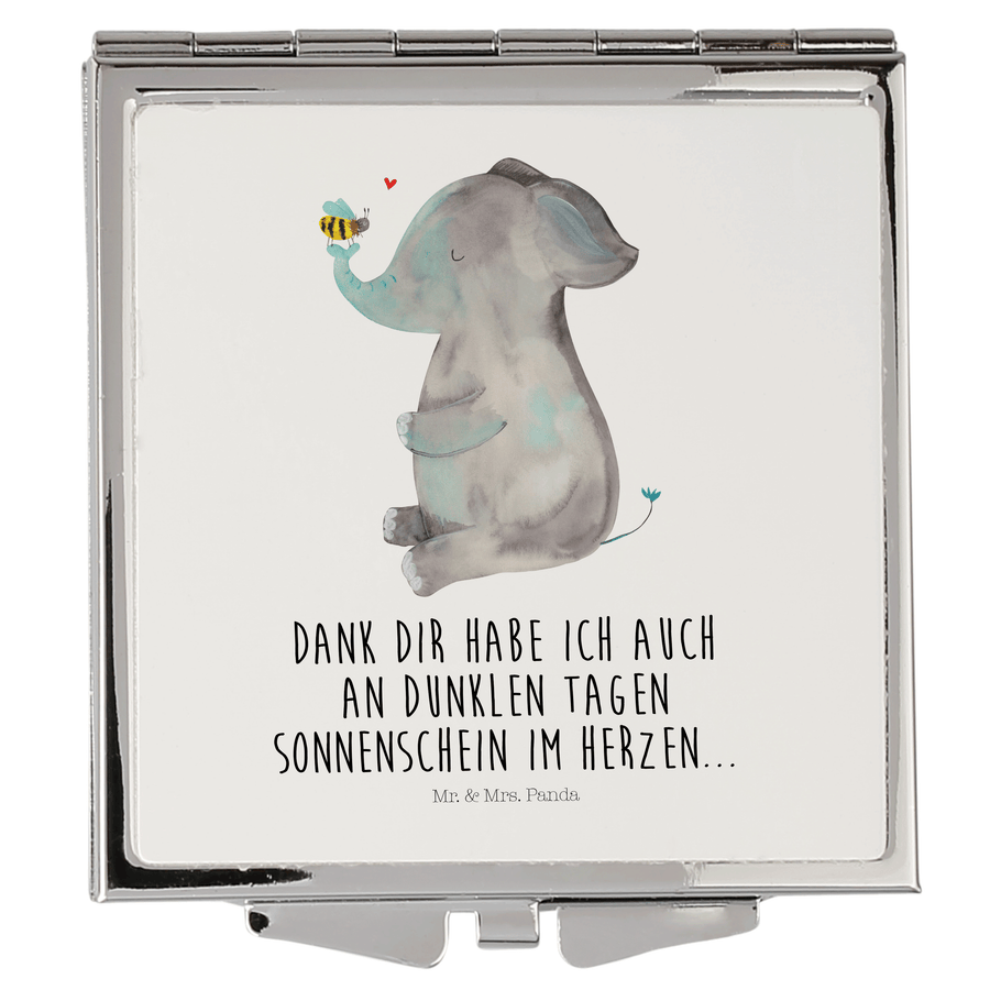 Handtaschenspiegel quadratisch Elefant & Biene - mit Spruch - Weiß