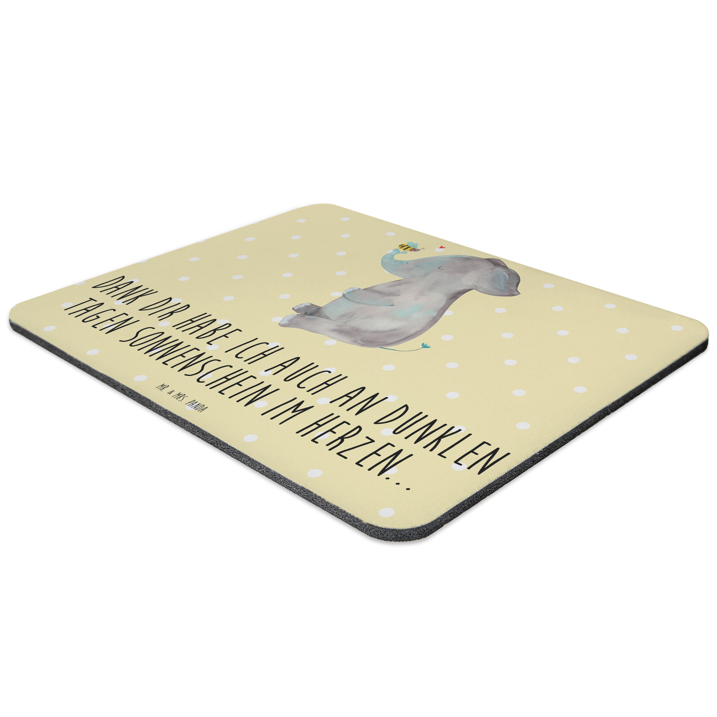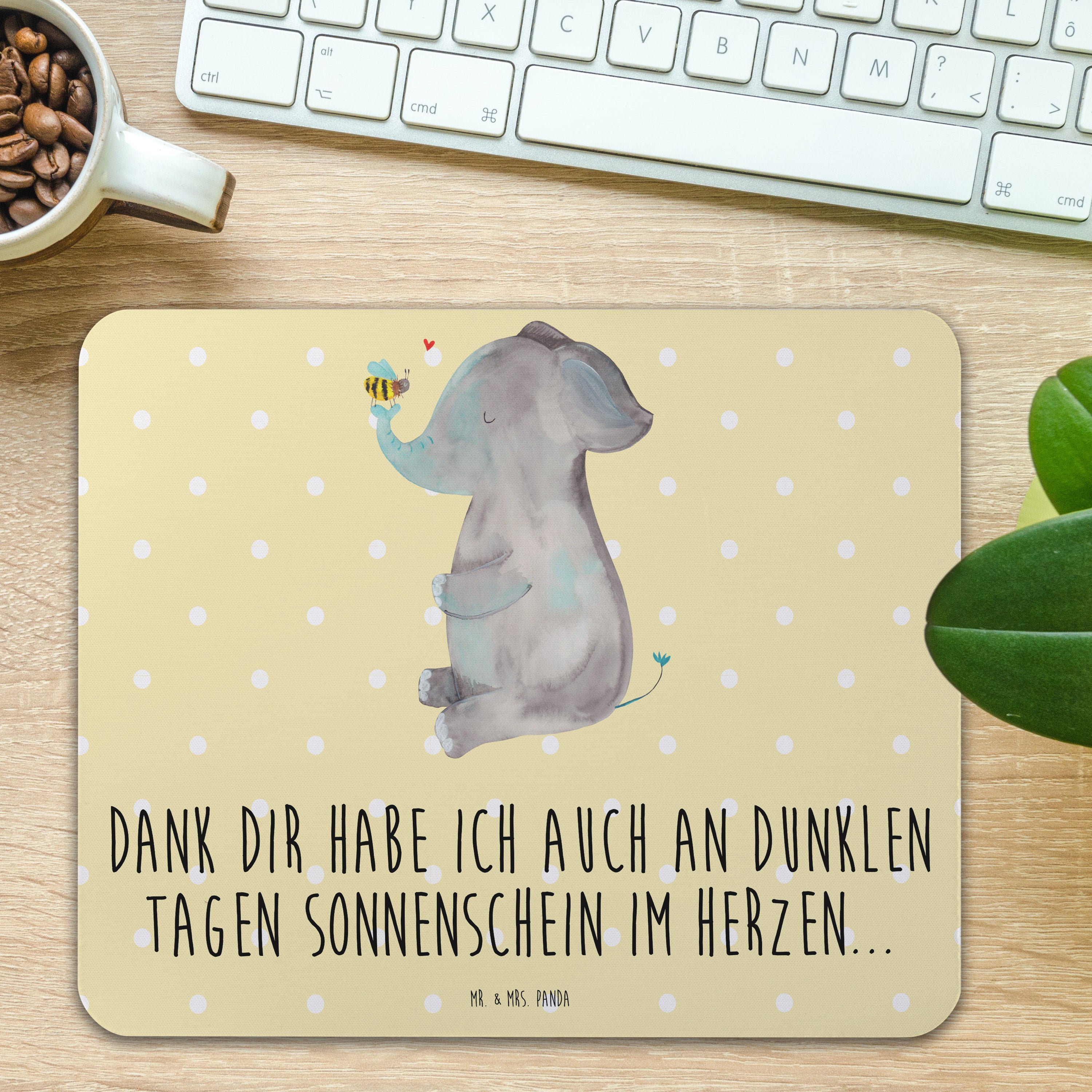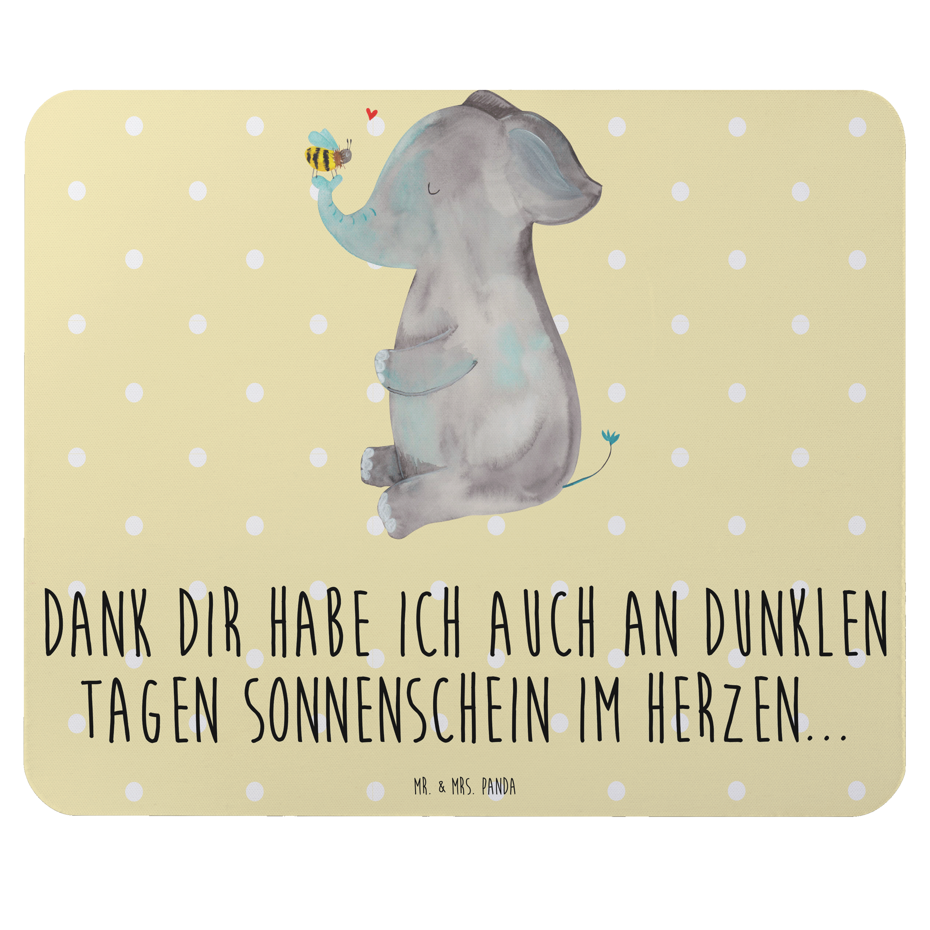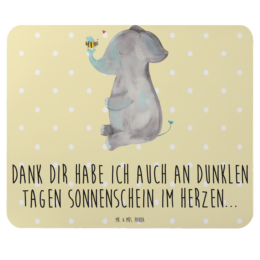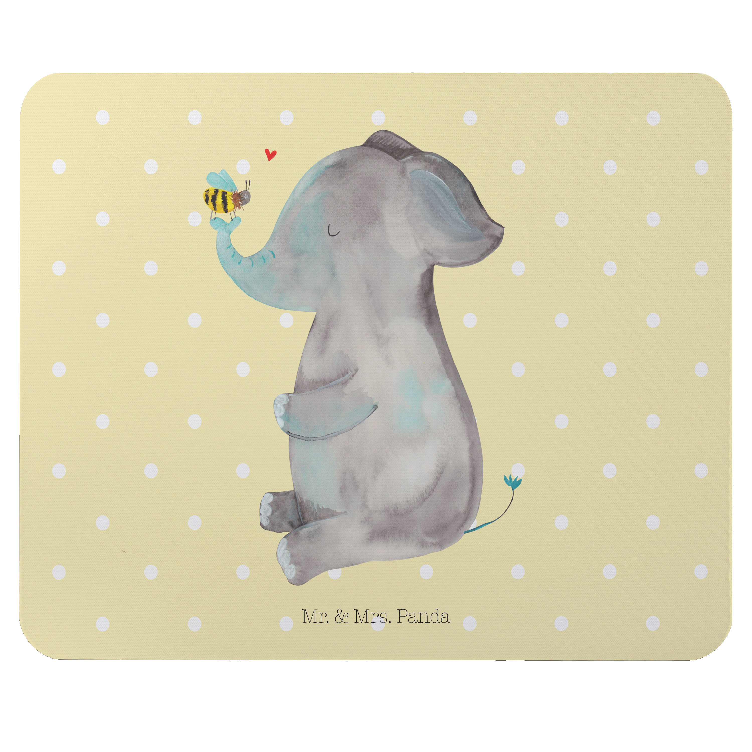 Mauspad Elefant & Biene - mit Spruch - Gelb Pastell