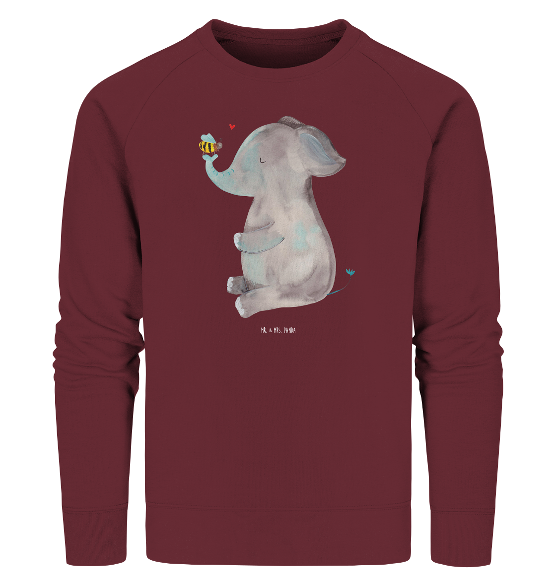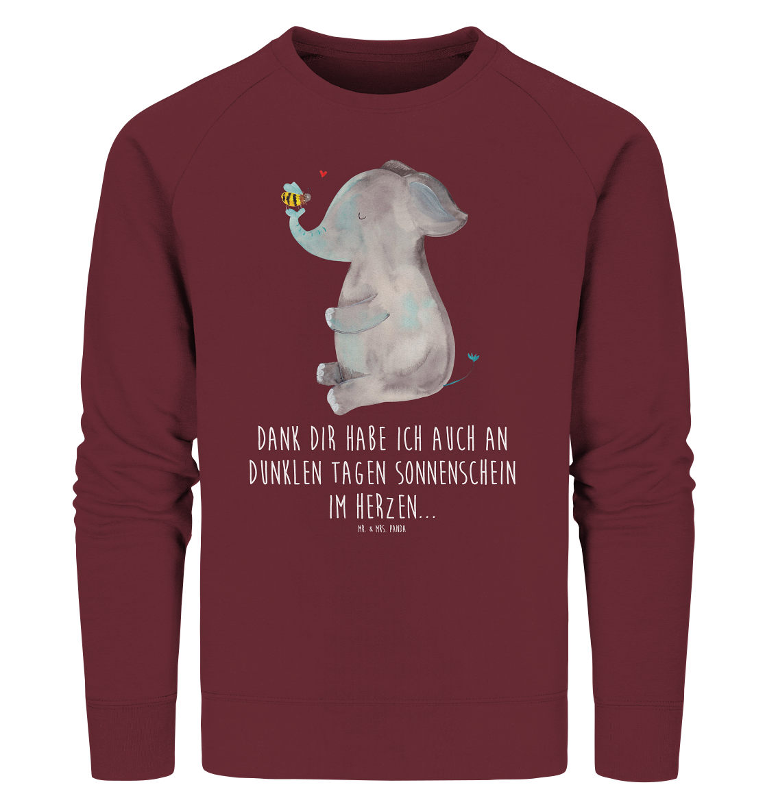 Organic Pullover Elefant & Biene - Größe M - mit Spruch - Burgundy
