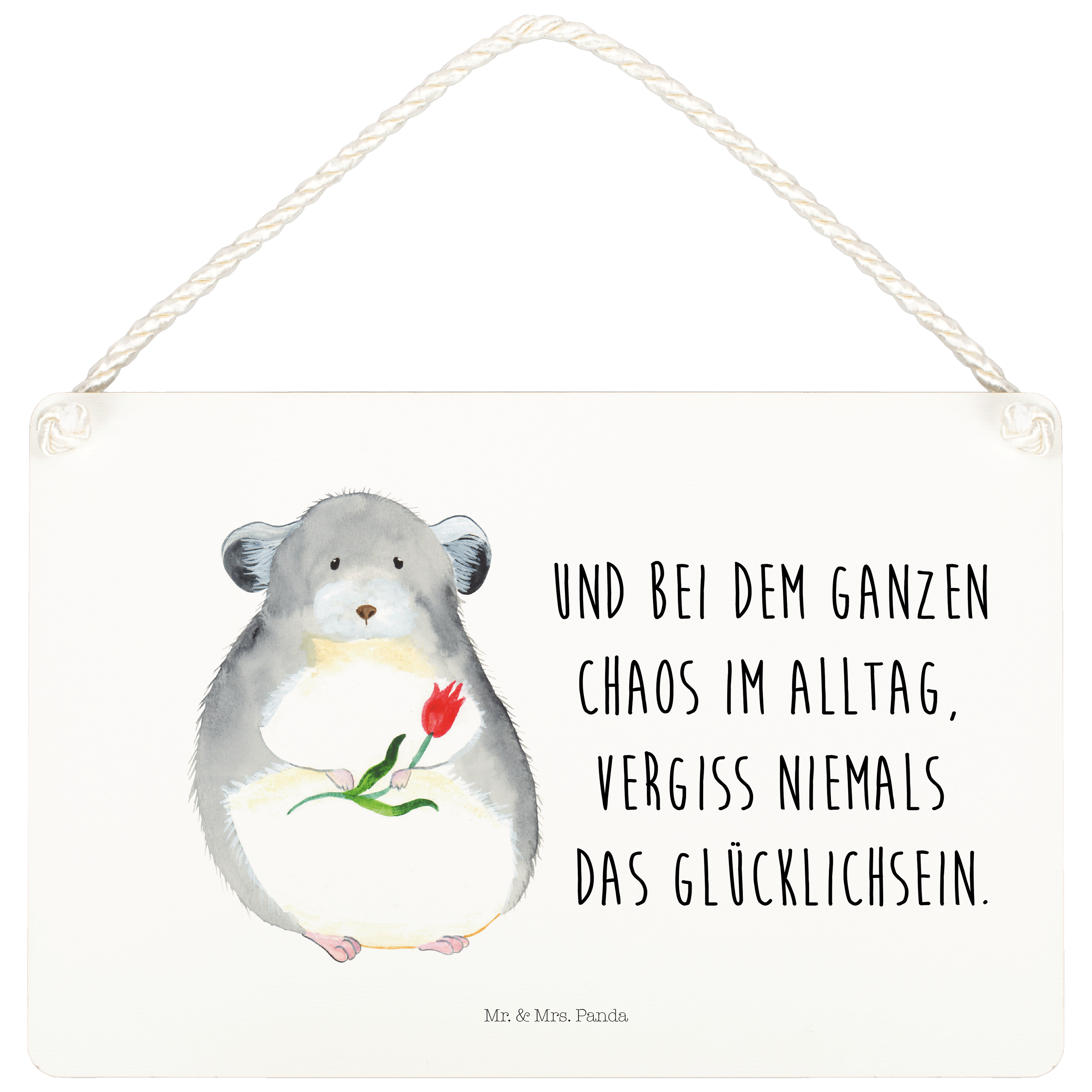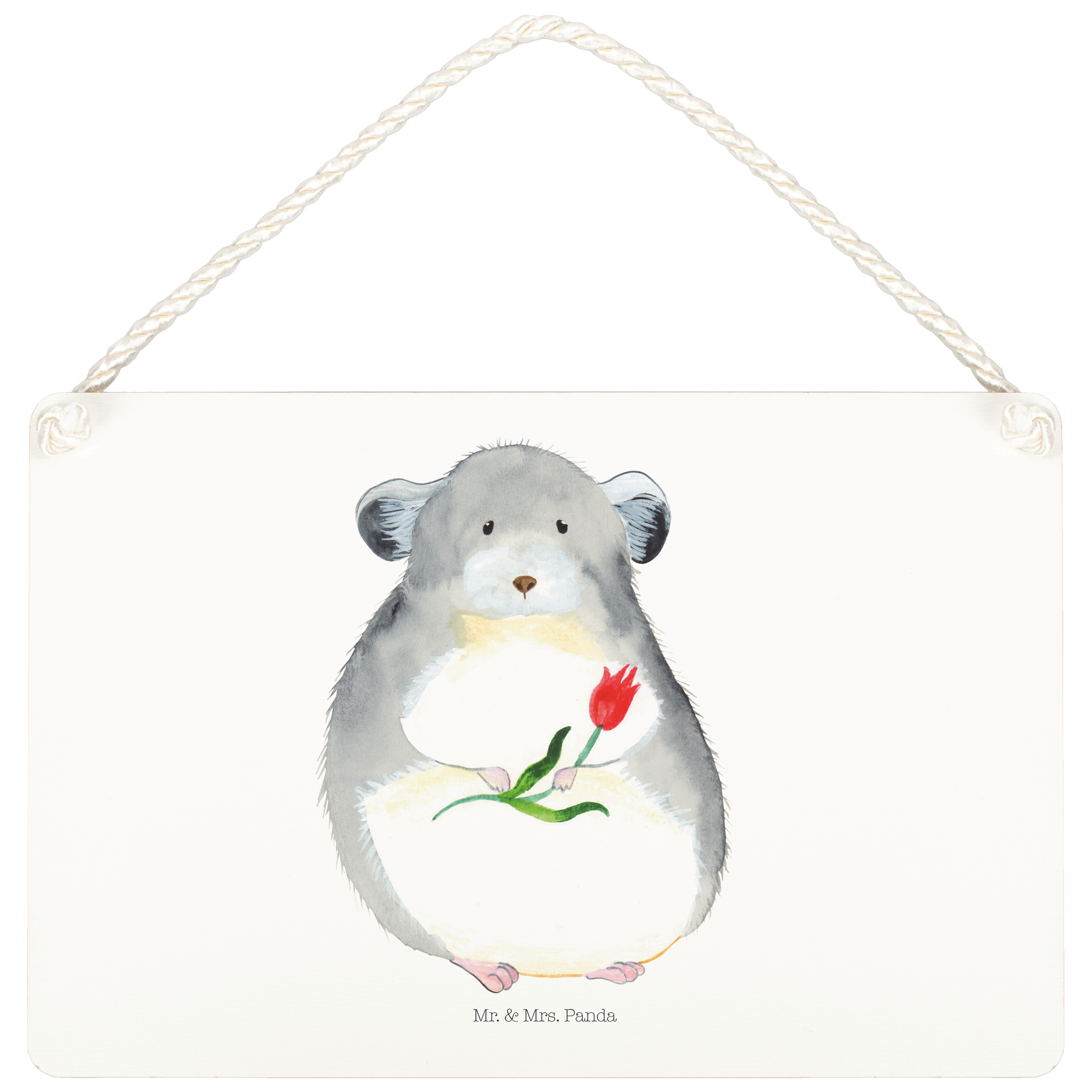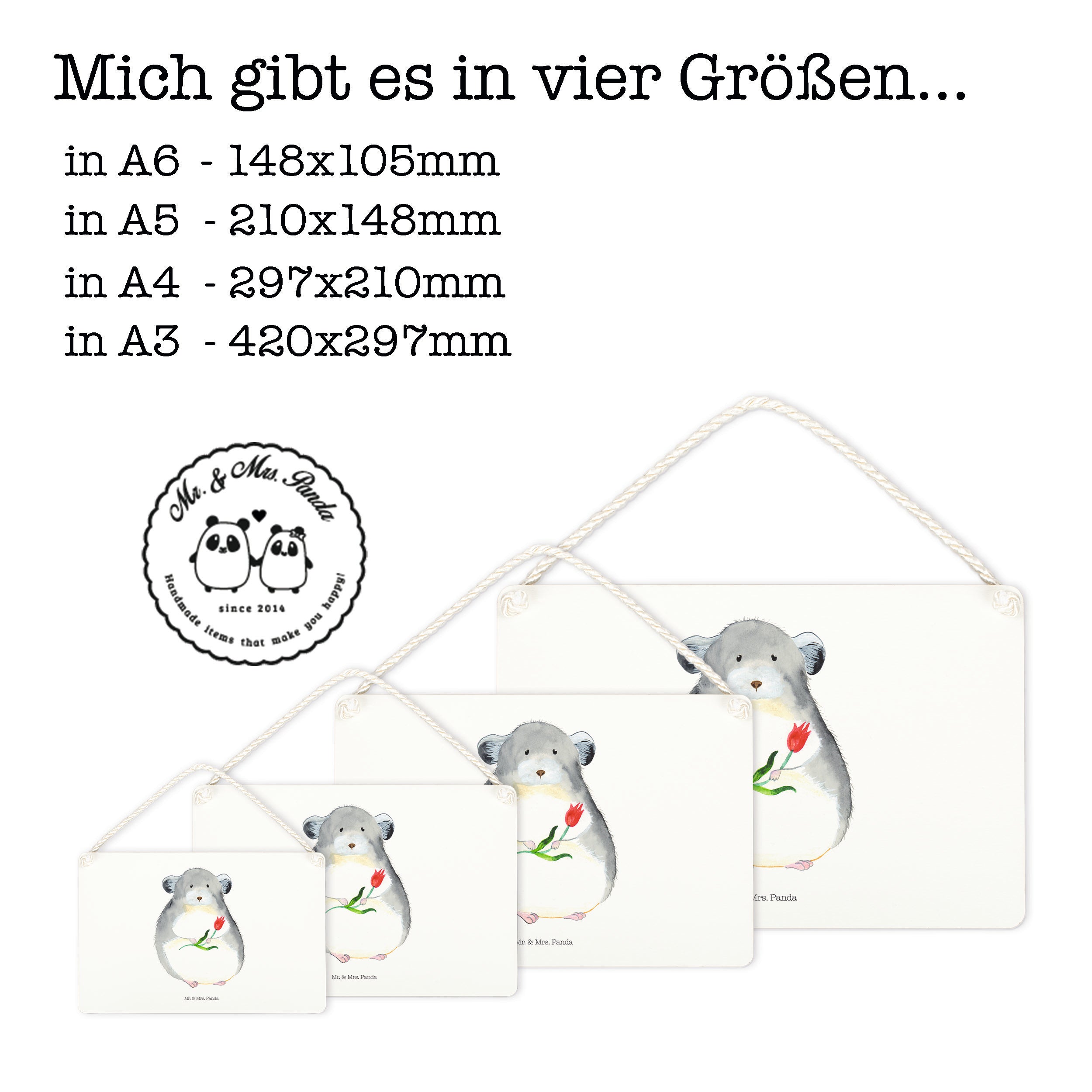 Deko Schild Chinchilla mit Blume - DIN A5 - mit Spruch - Weiß