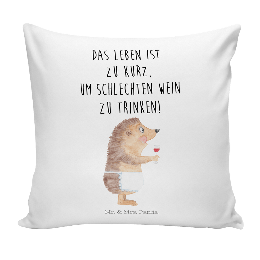 40x40 Kissen Igel mit Wein - mit Spruch - Weiß